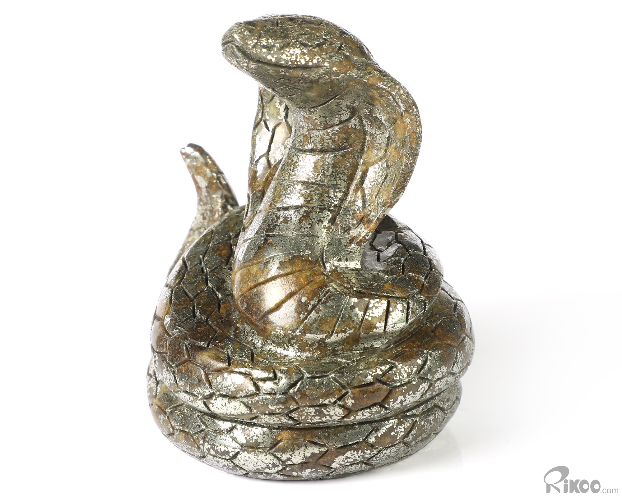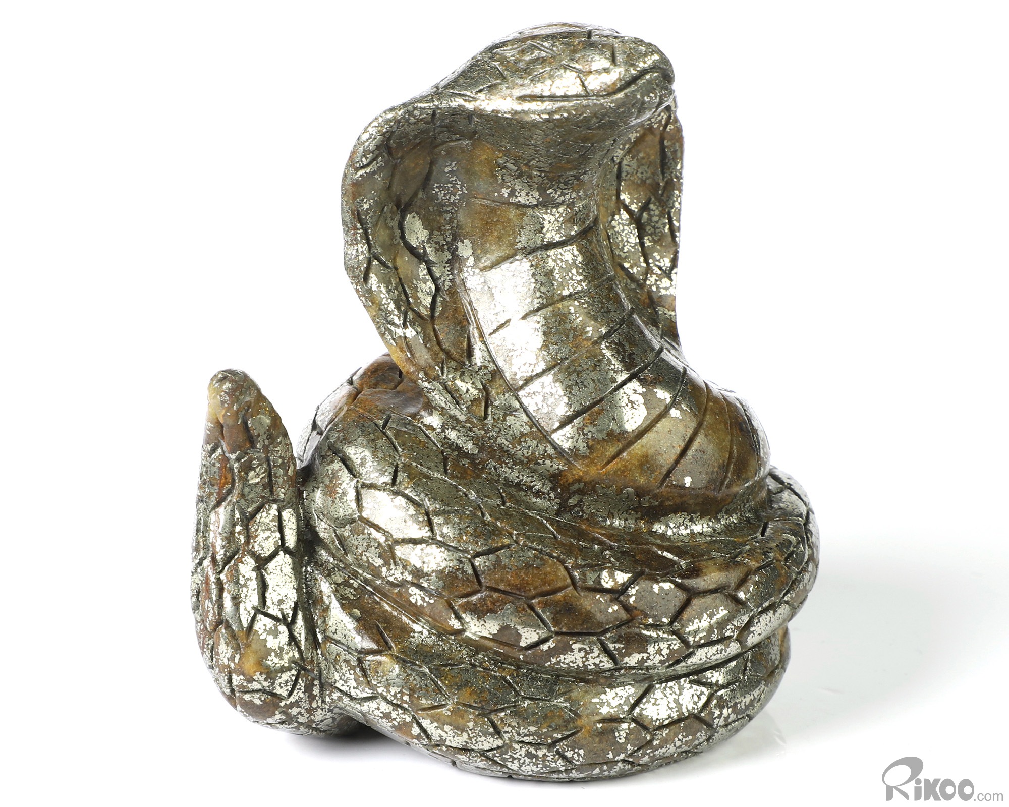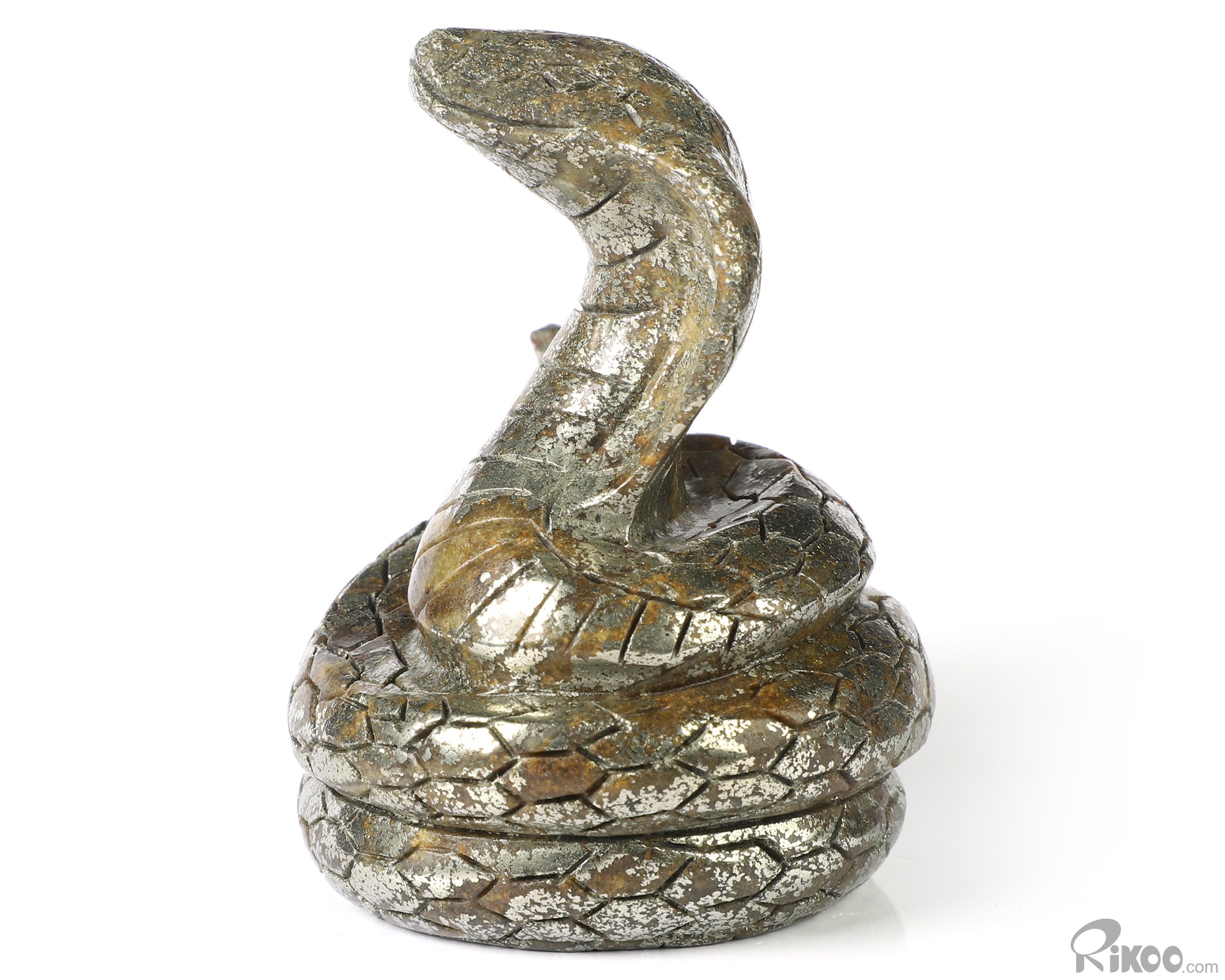 3.5" Pyrite Hand Carved Crystal Snake Sculpture, Crystal Healing