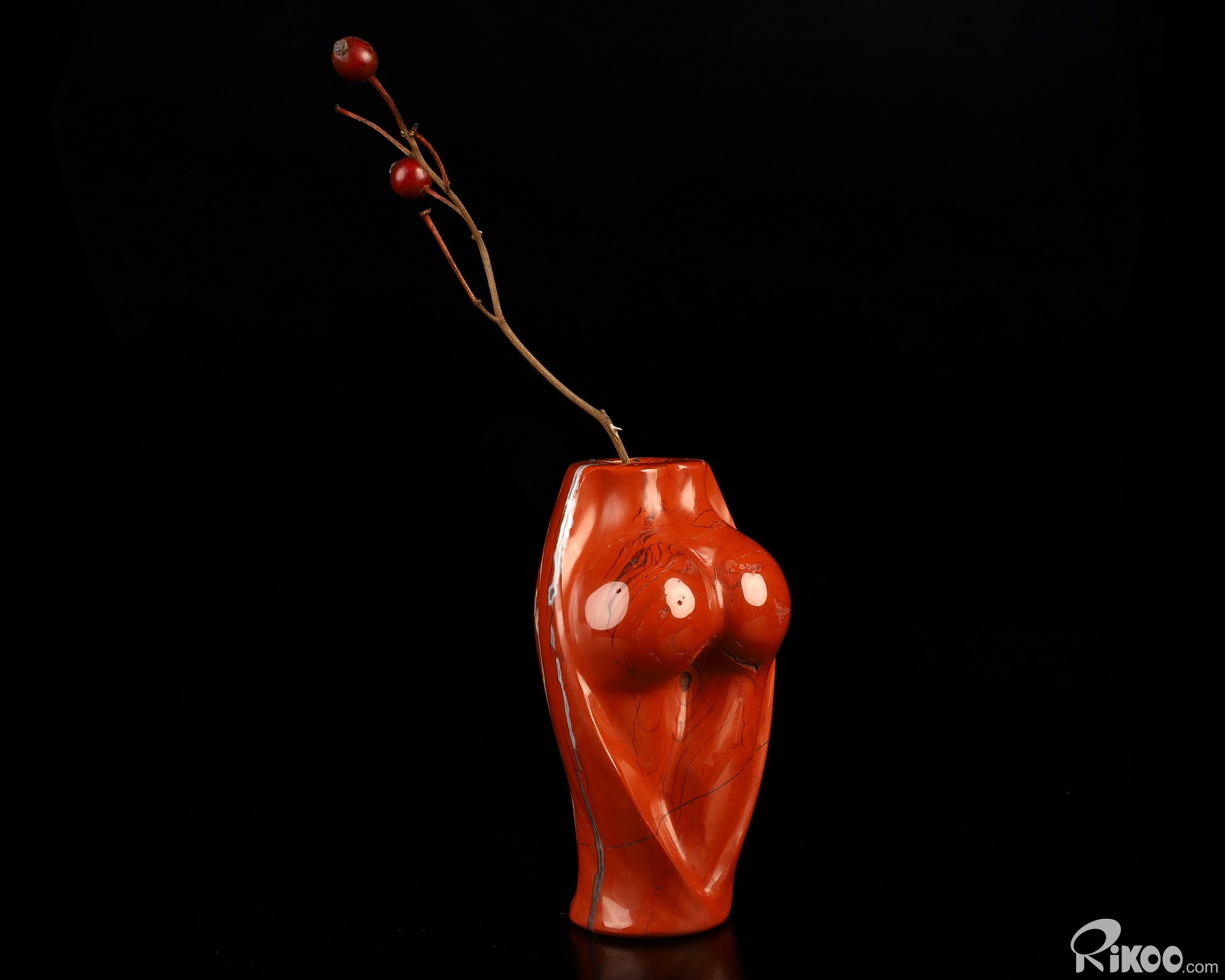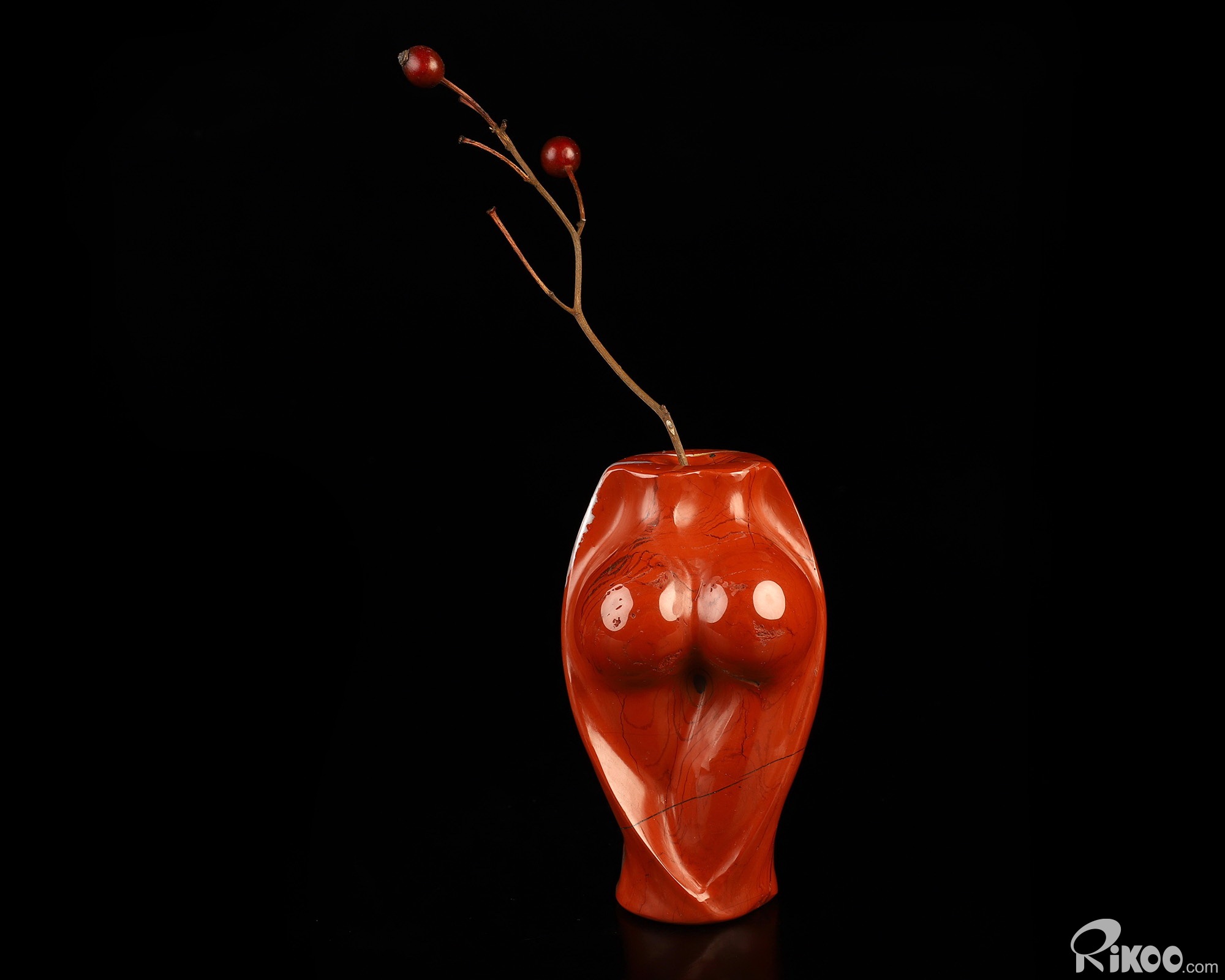 3.5" Red Jasper Hand Carved Crystal Body Vase Sculpture, Crystal Healing