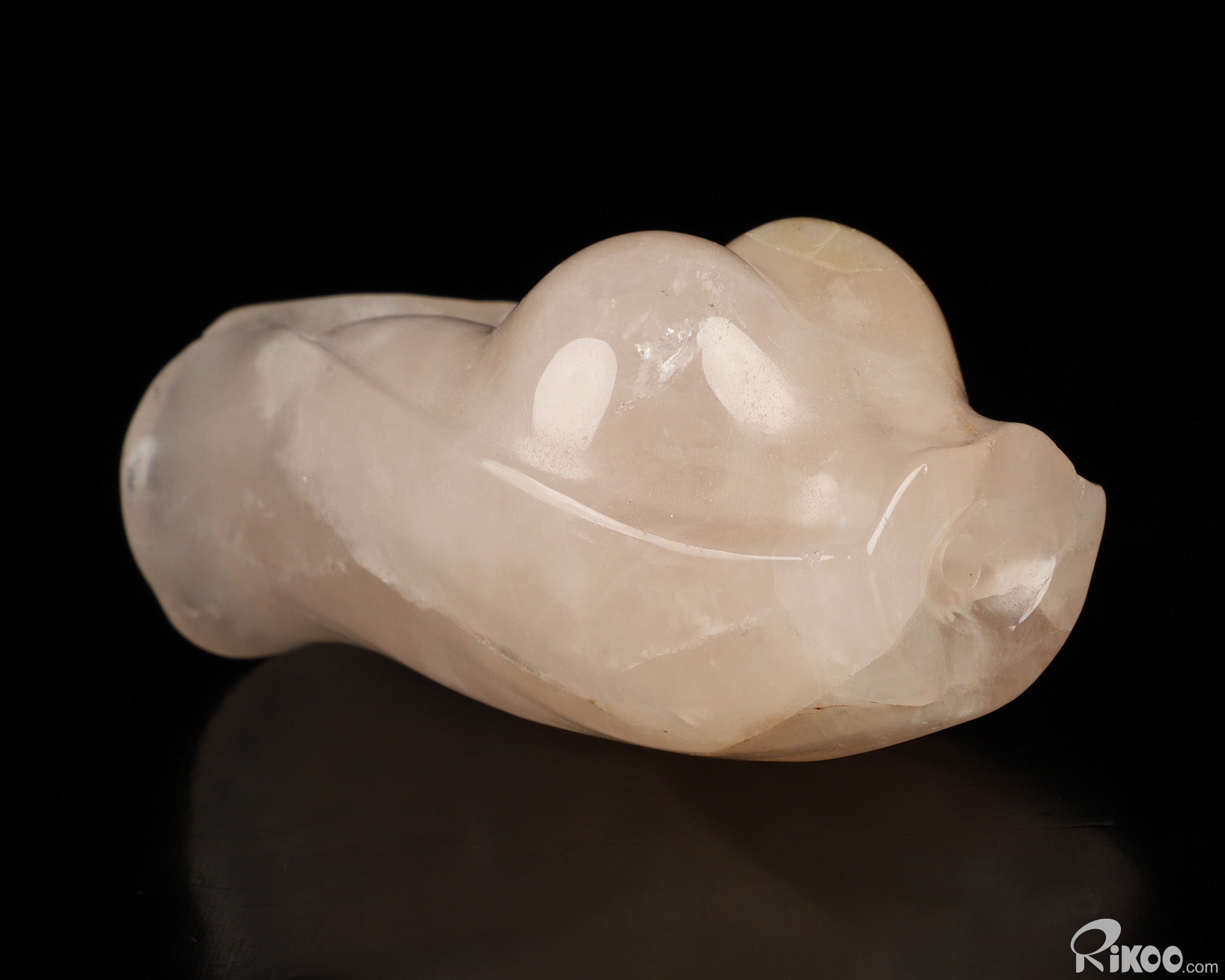 You are looking at a Rose Quartz sculpture. The sculpture is 3.5 inches long.