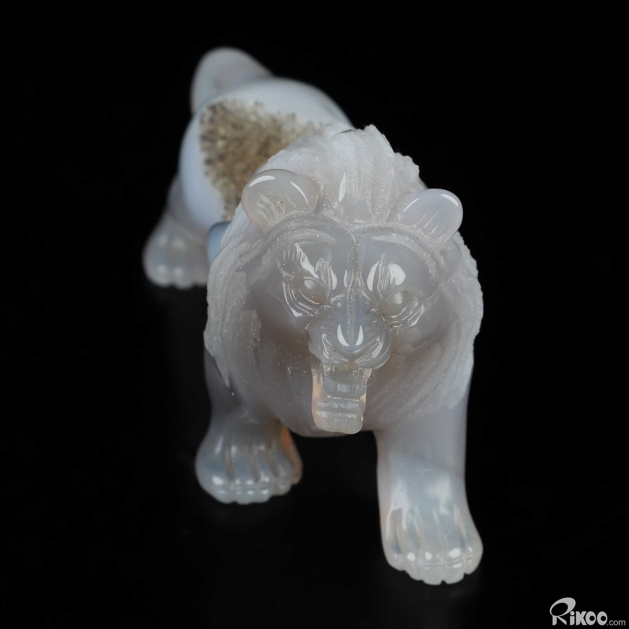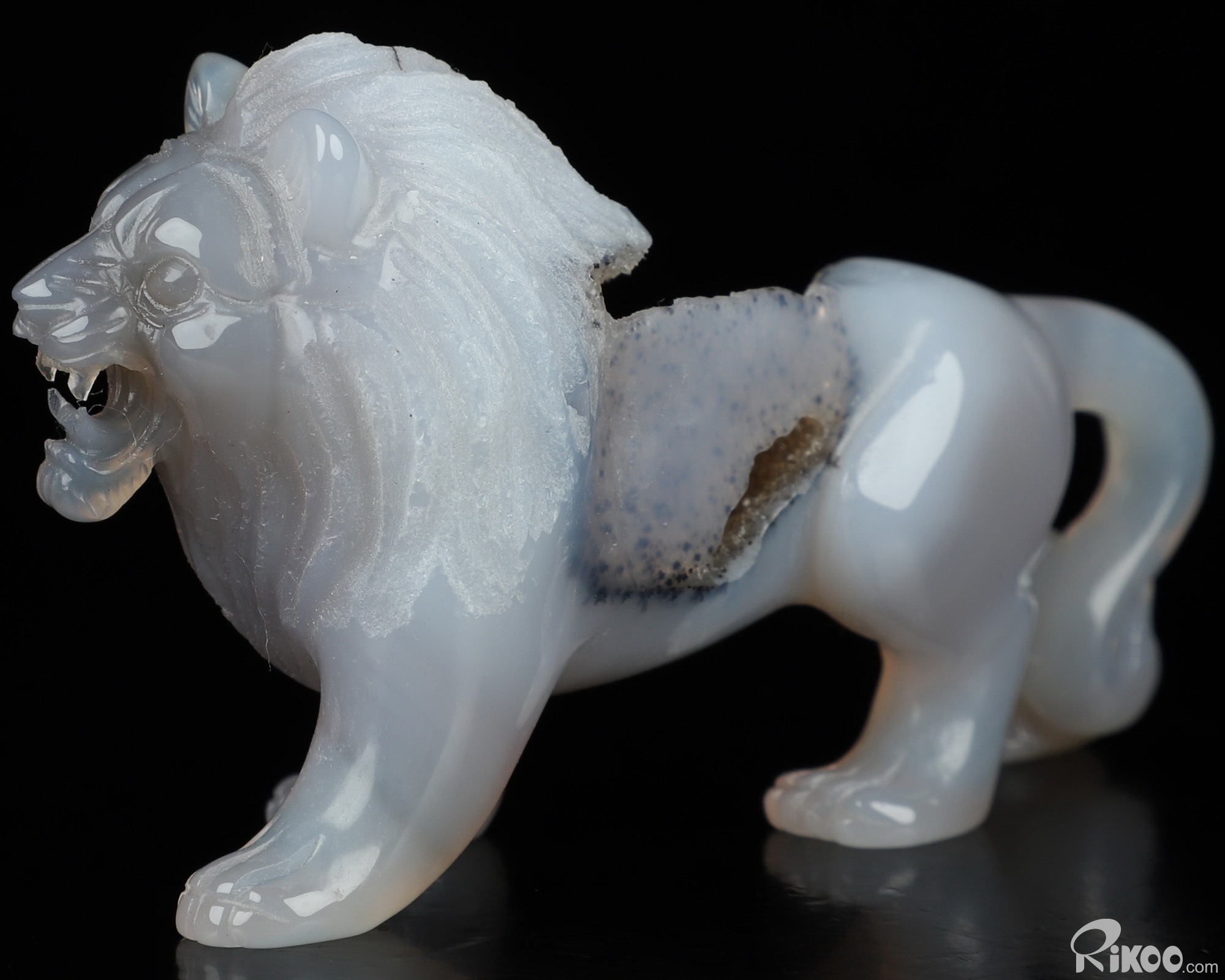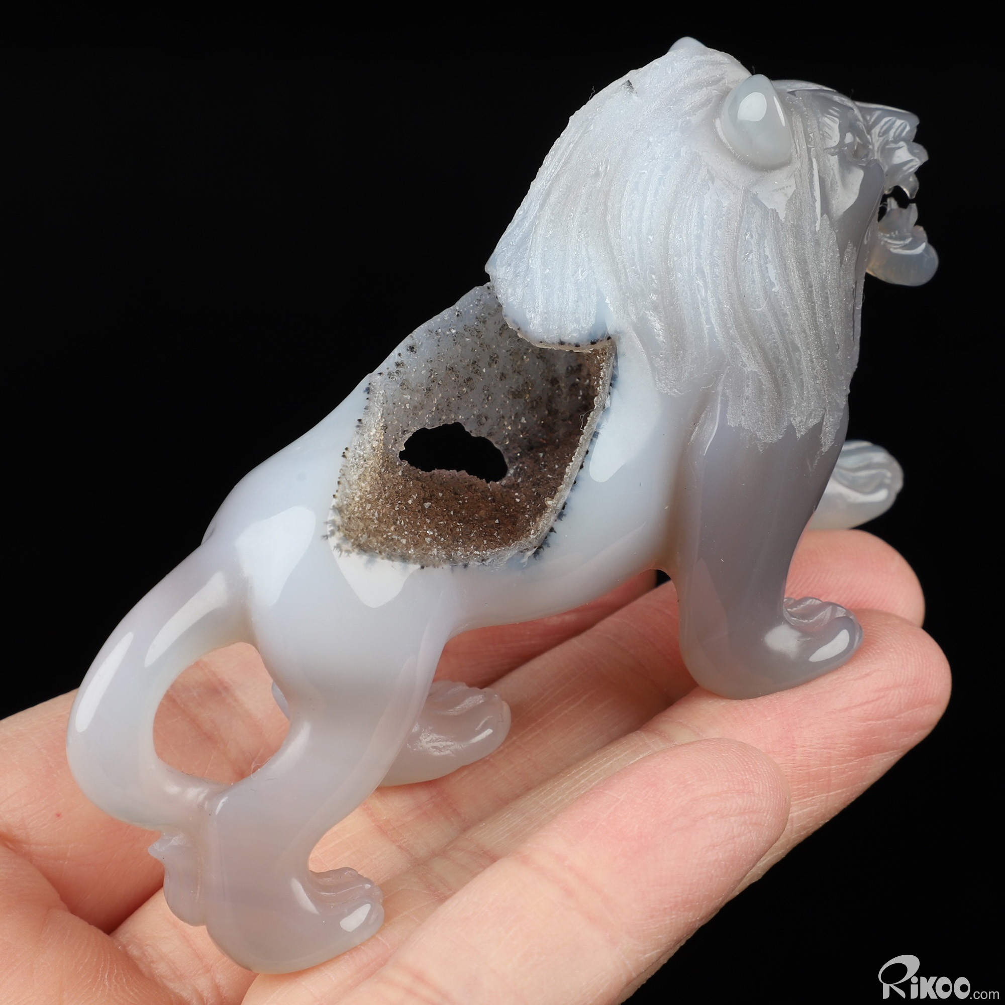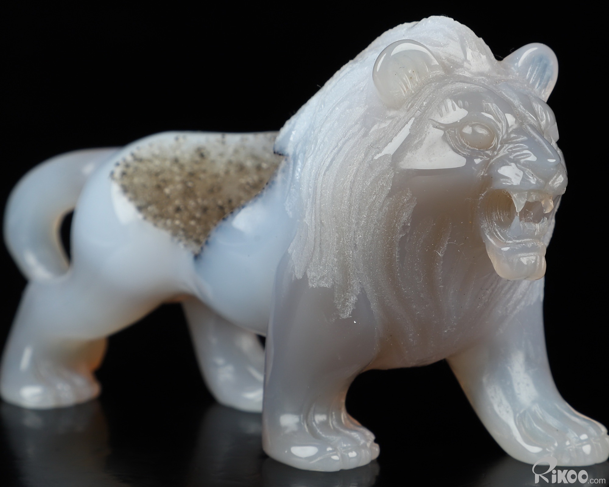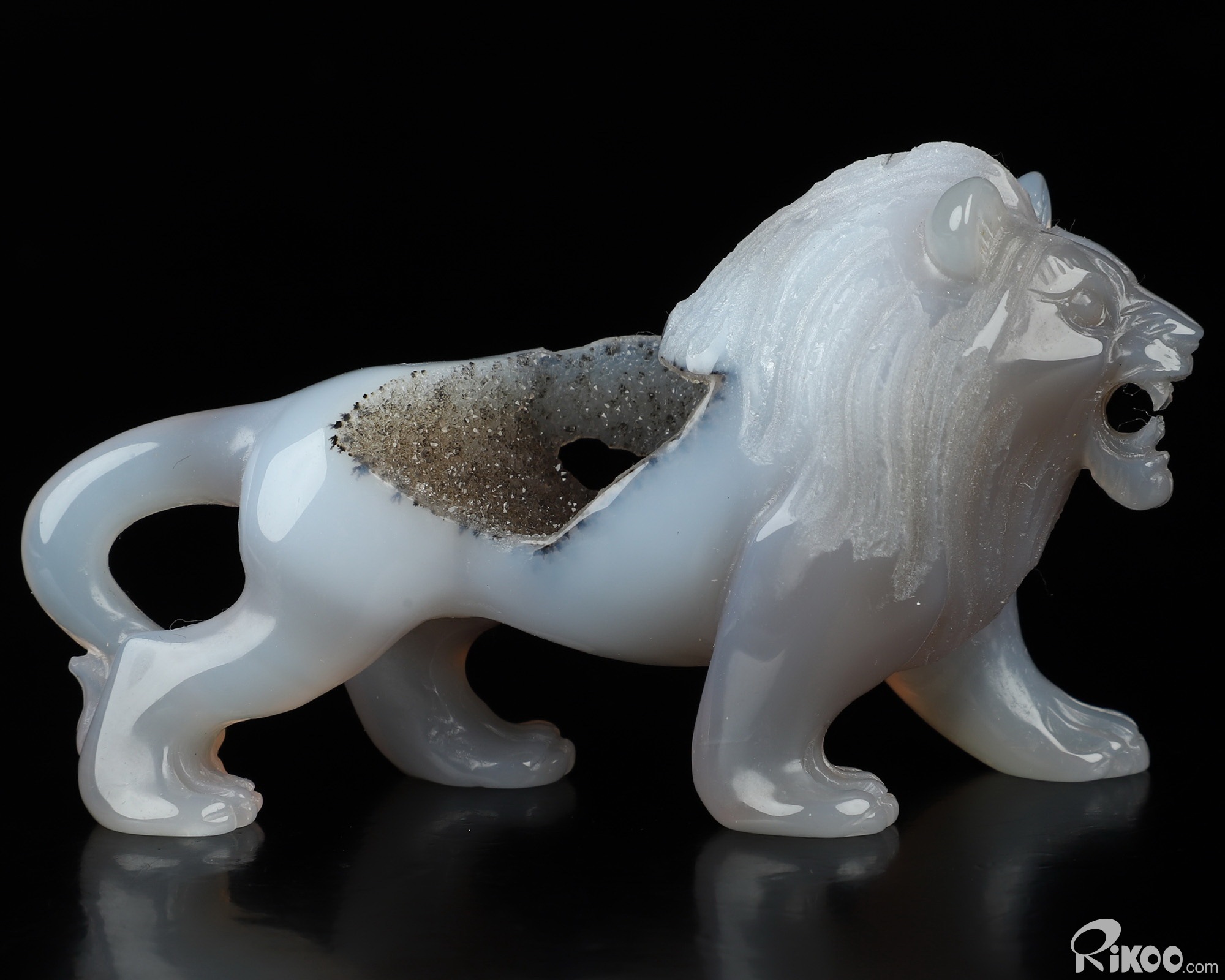 3.6" Agate Geode Hand Carved Crystal Lion Sculpture, Crystal Healing