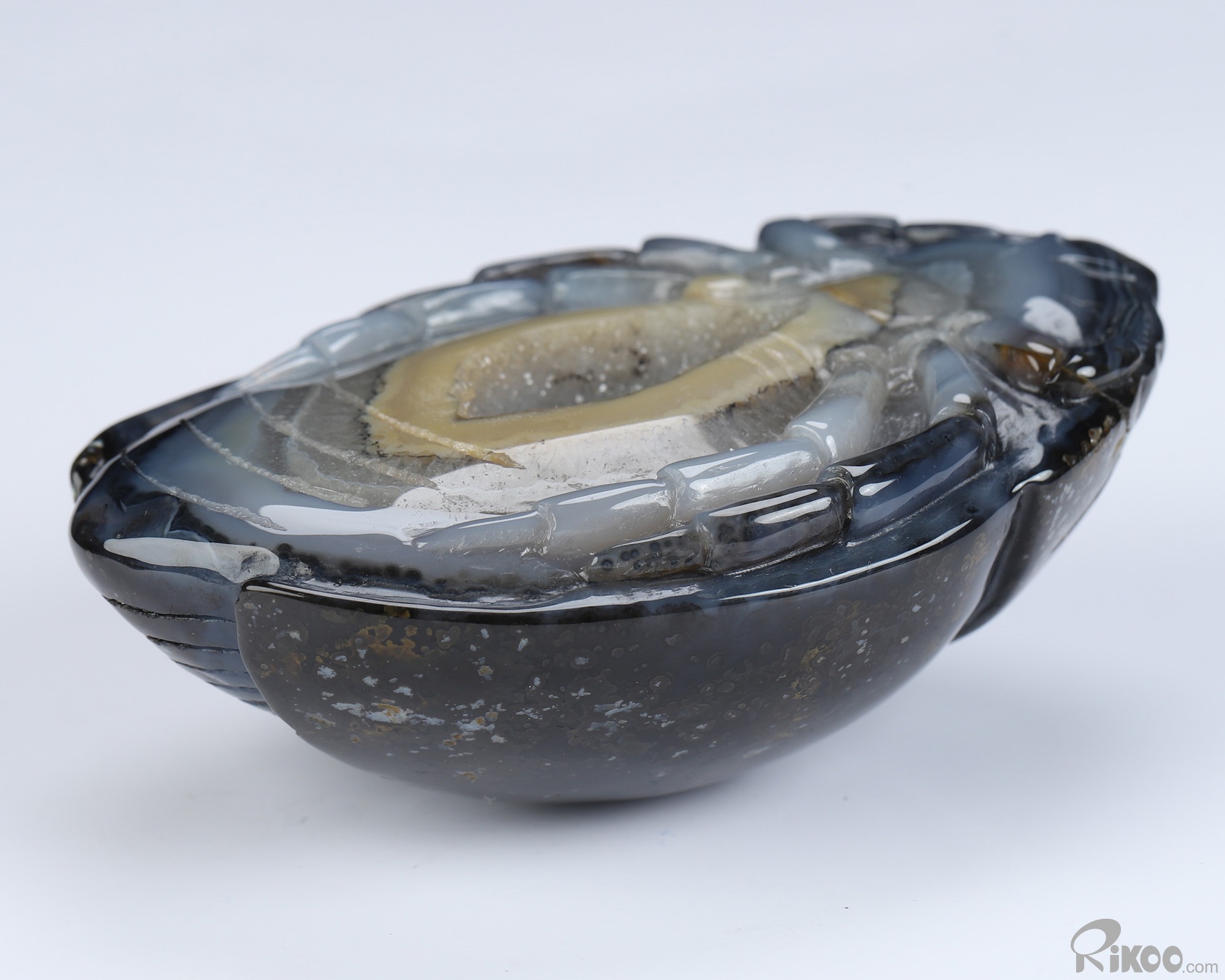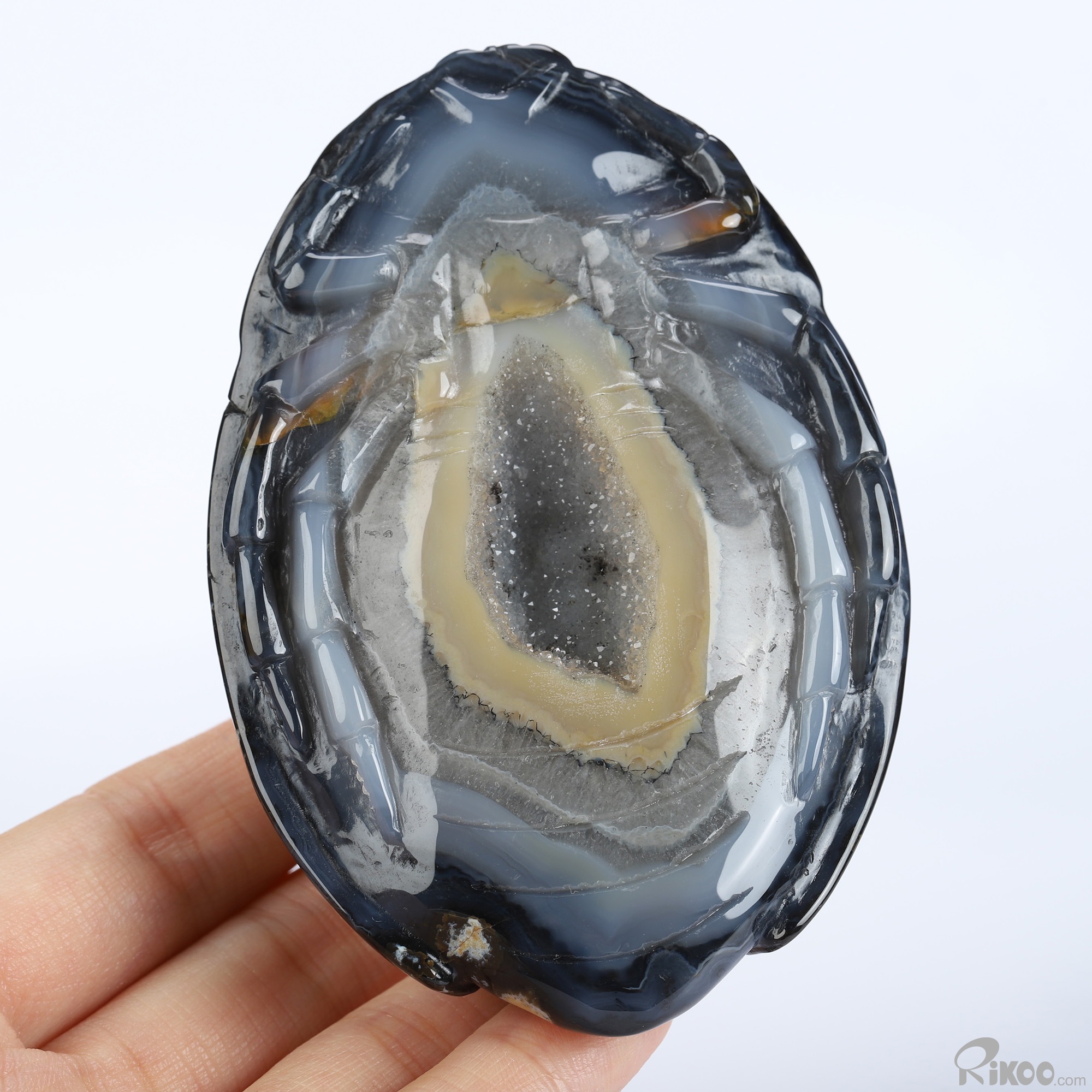 You are looking at an Agate Geode sculpture. The sculpture is 3.6 inches long.