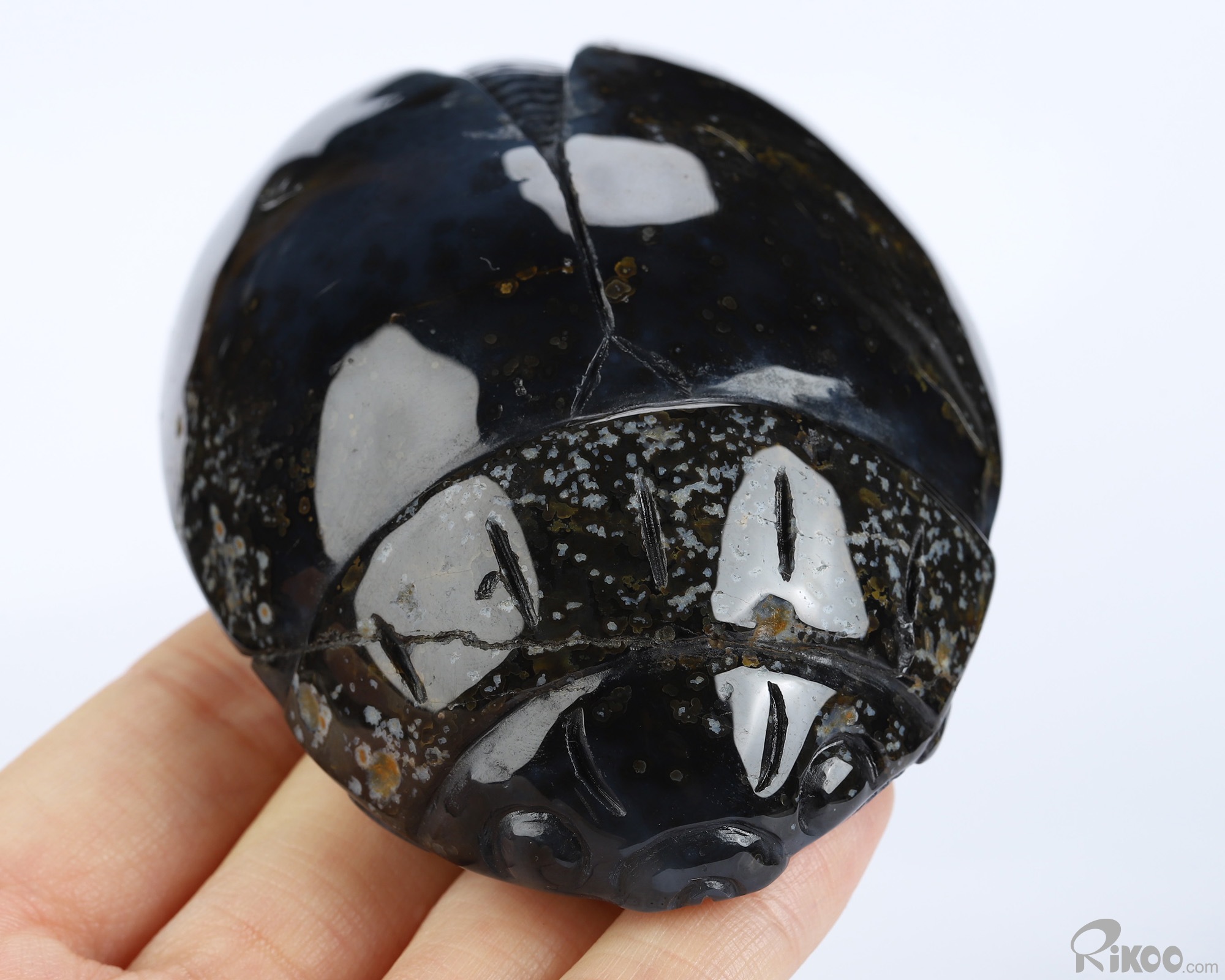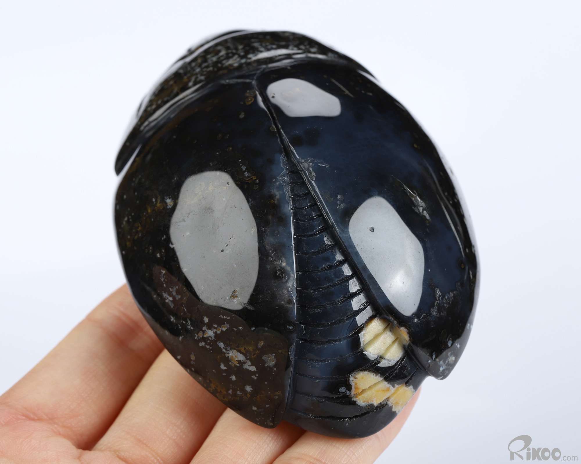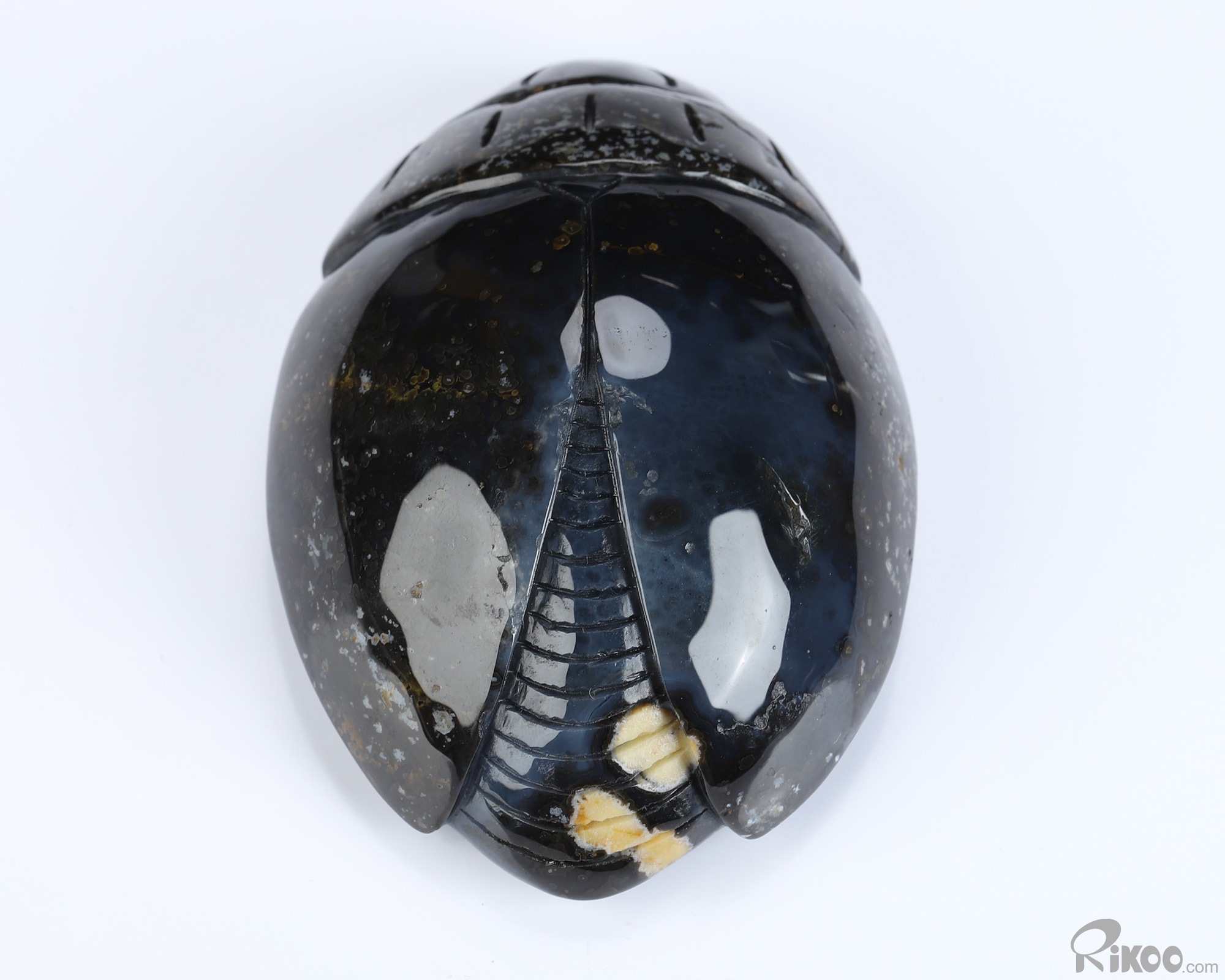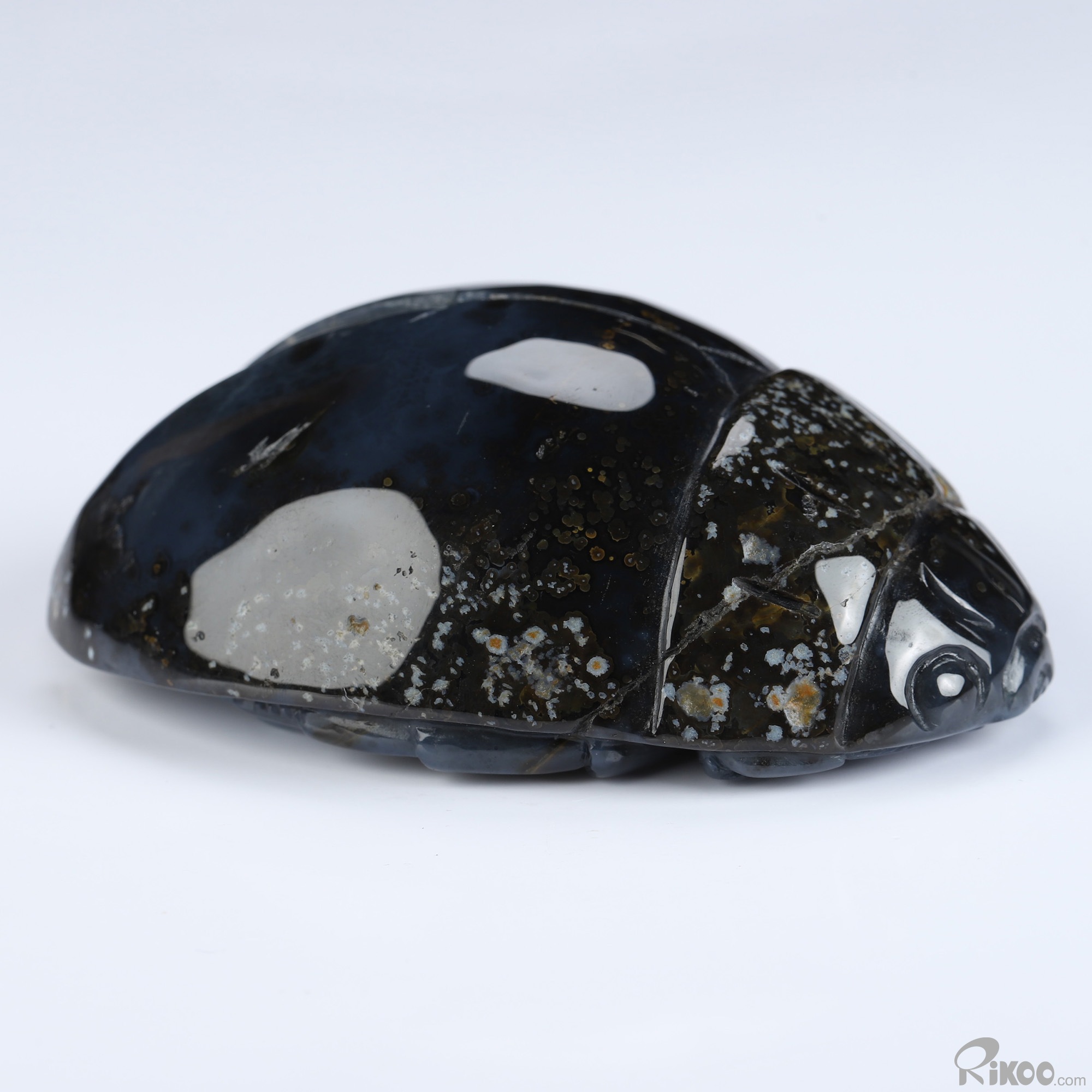 3.6" Agate Geode Hand Carved Crystal Scarab Sculpture, Crystal Healing