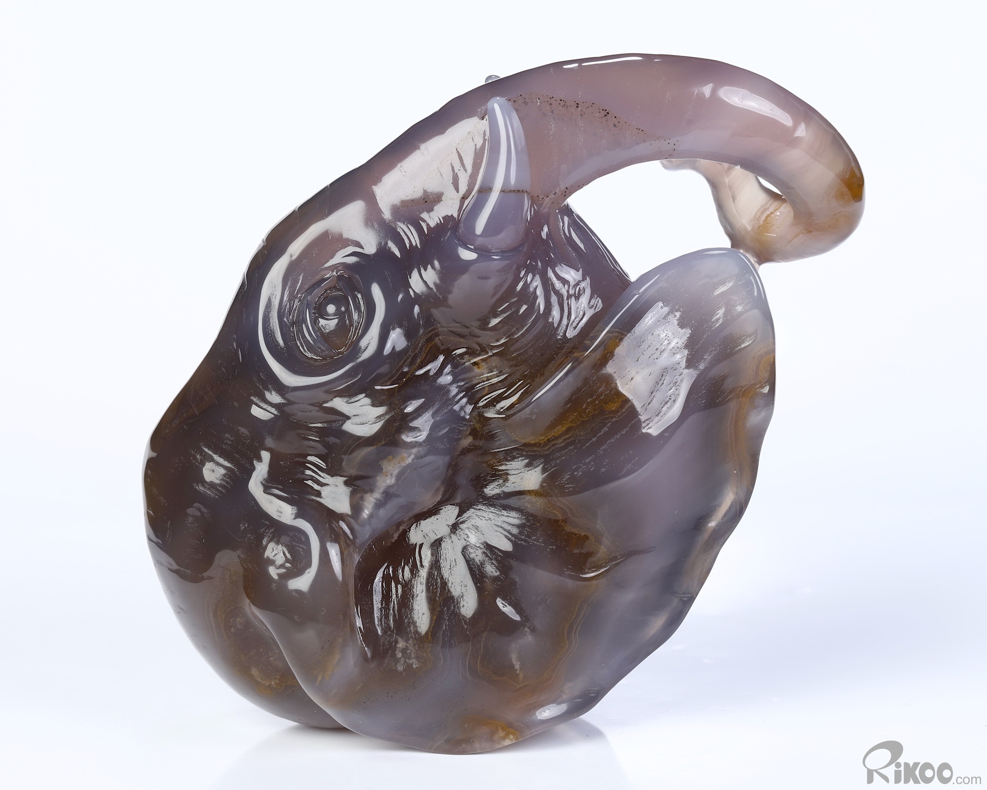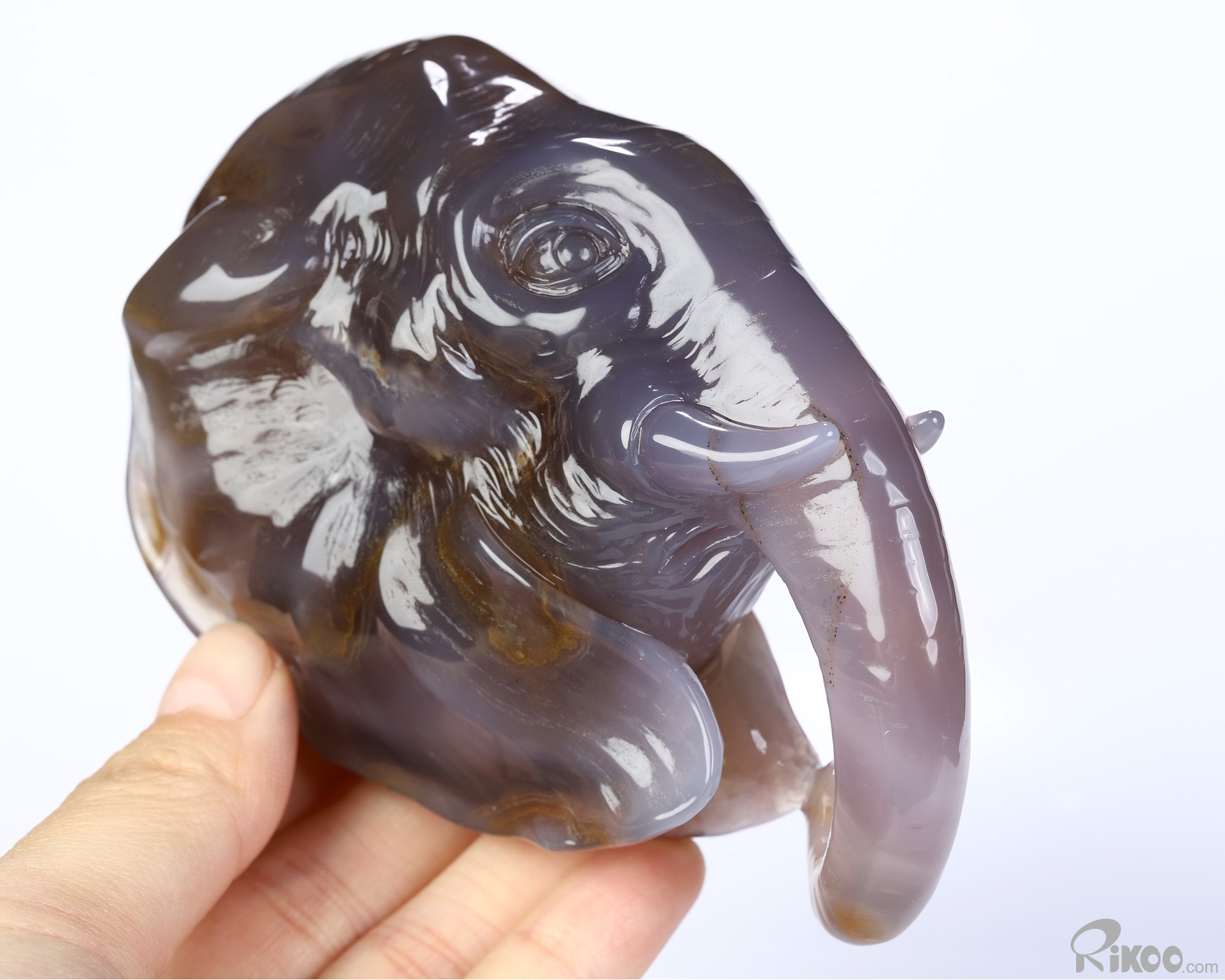 3.6" Agate Hand Carved Crystal Elephant Sculpture, Crystal Healing