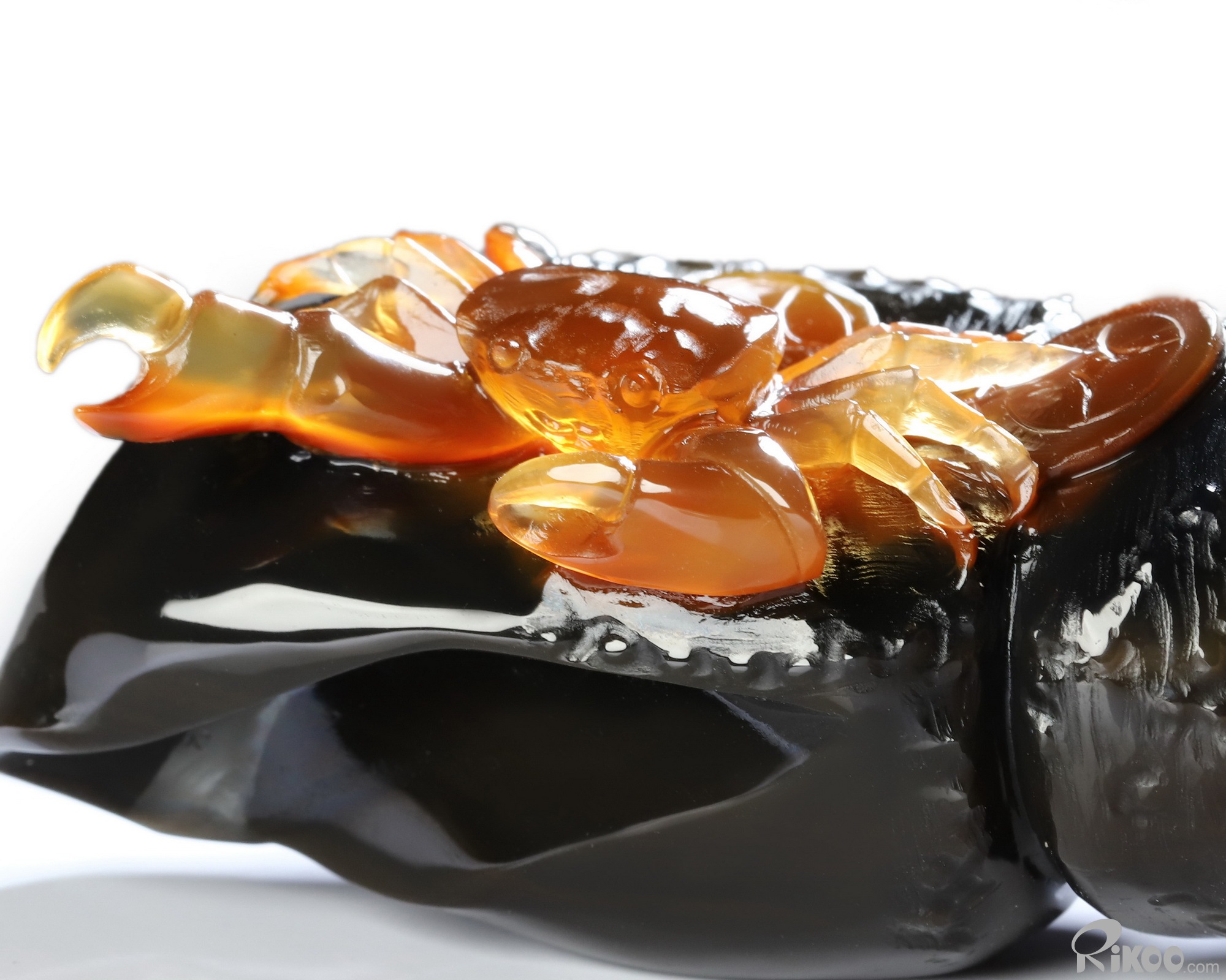 You are looking at a Carnelian crab sculpture. The sculpture is 3.6 inches long.