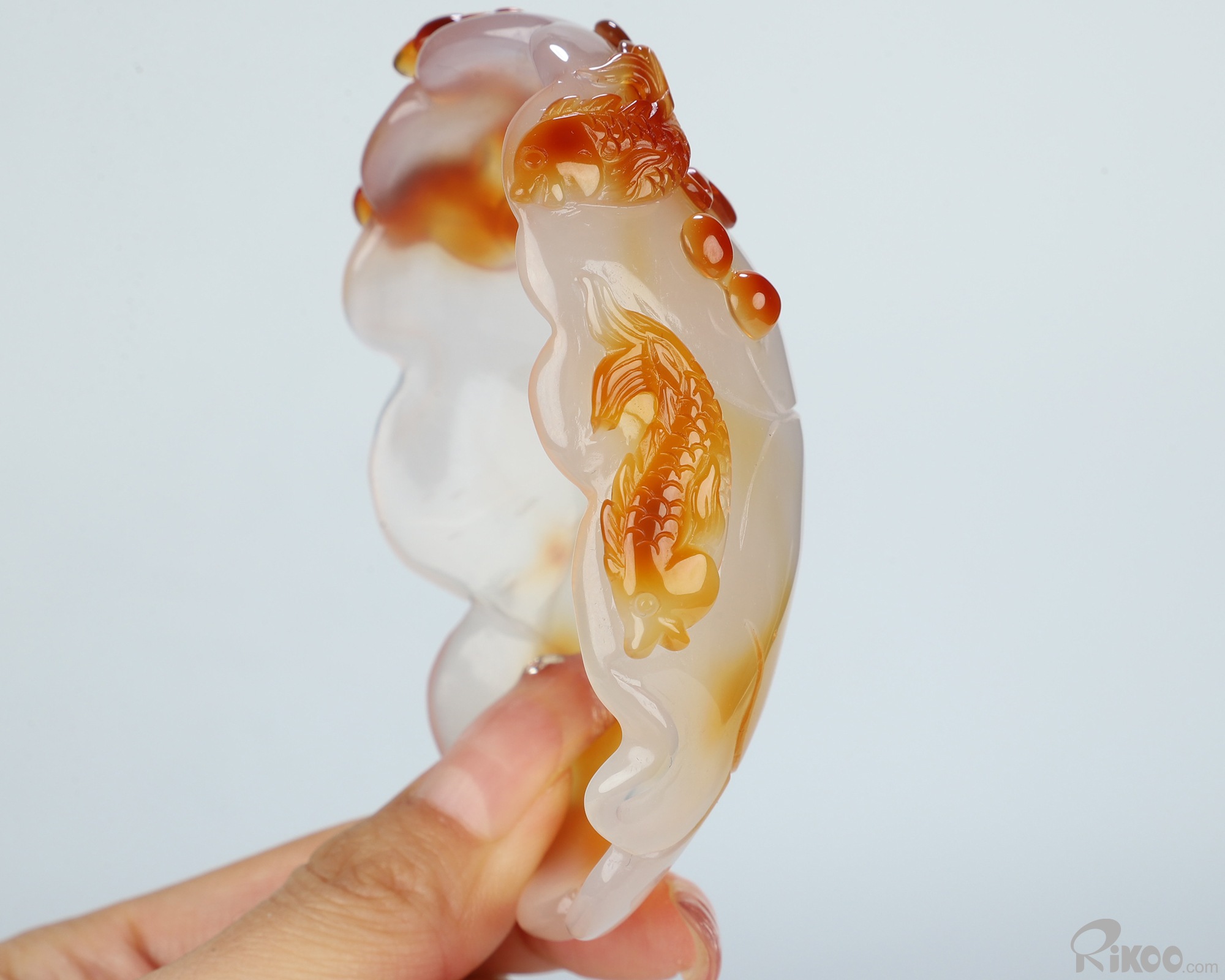 3.6" Carnelian Hand Carved Crystal Goldfish Storage Box, Crystal Healing