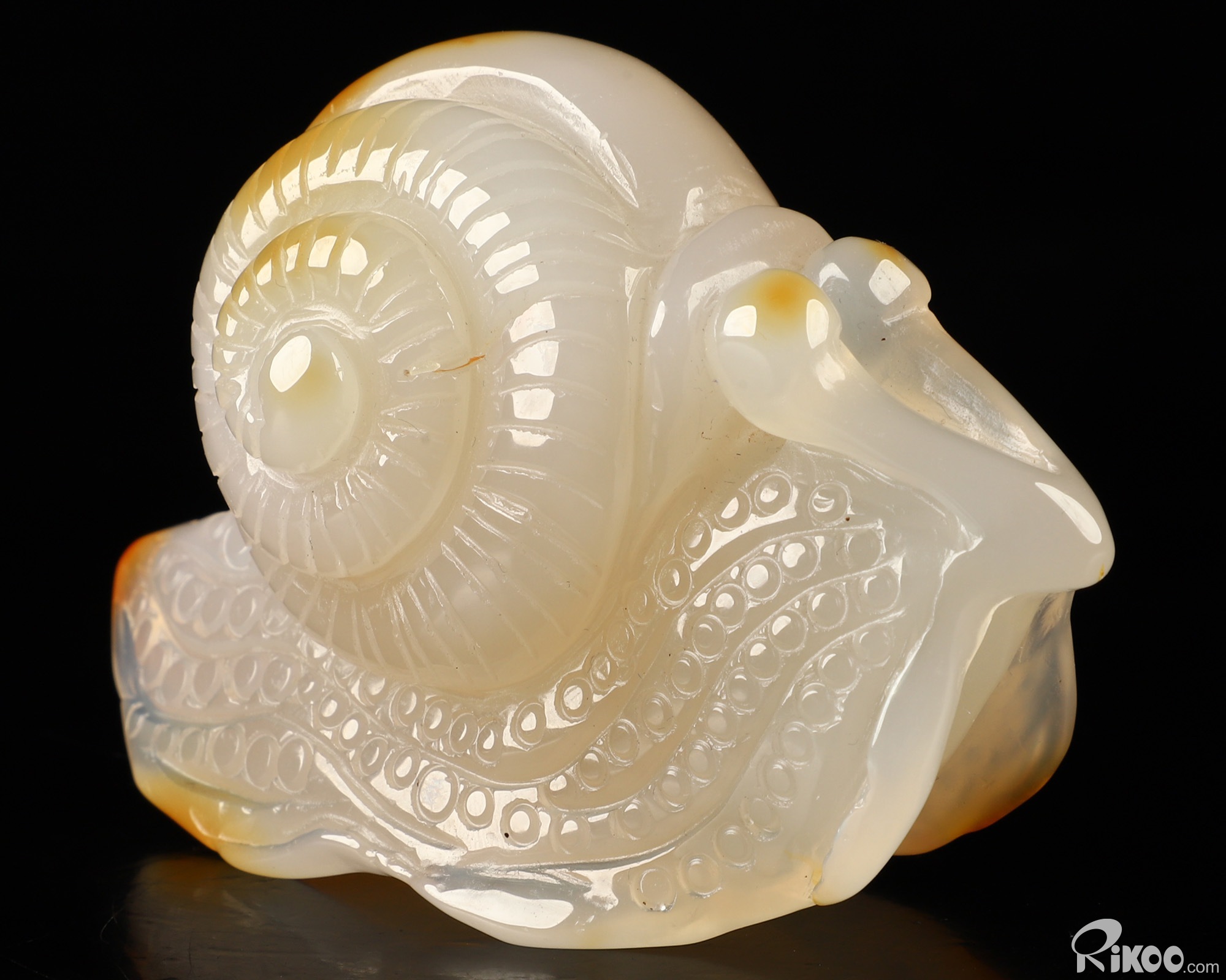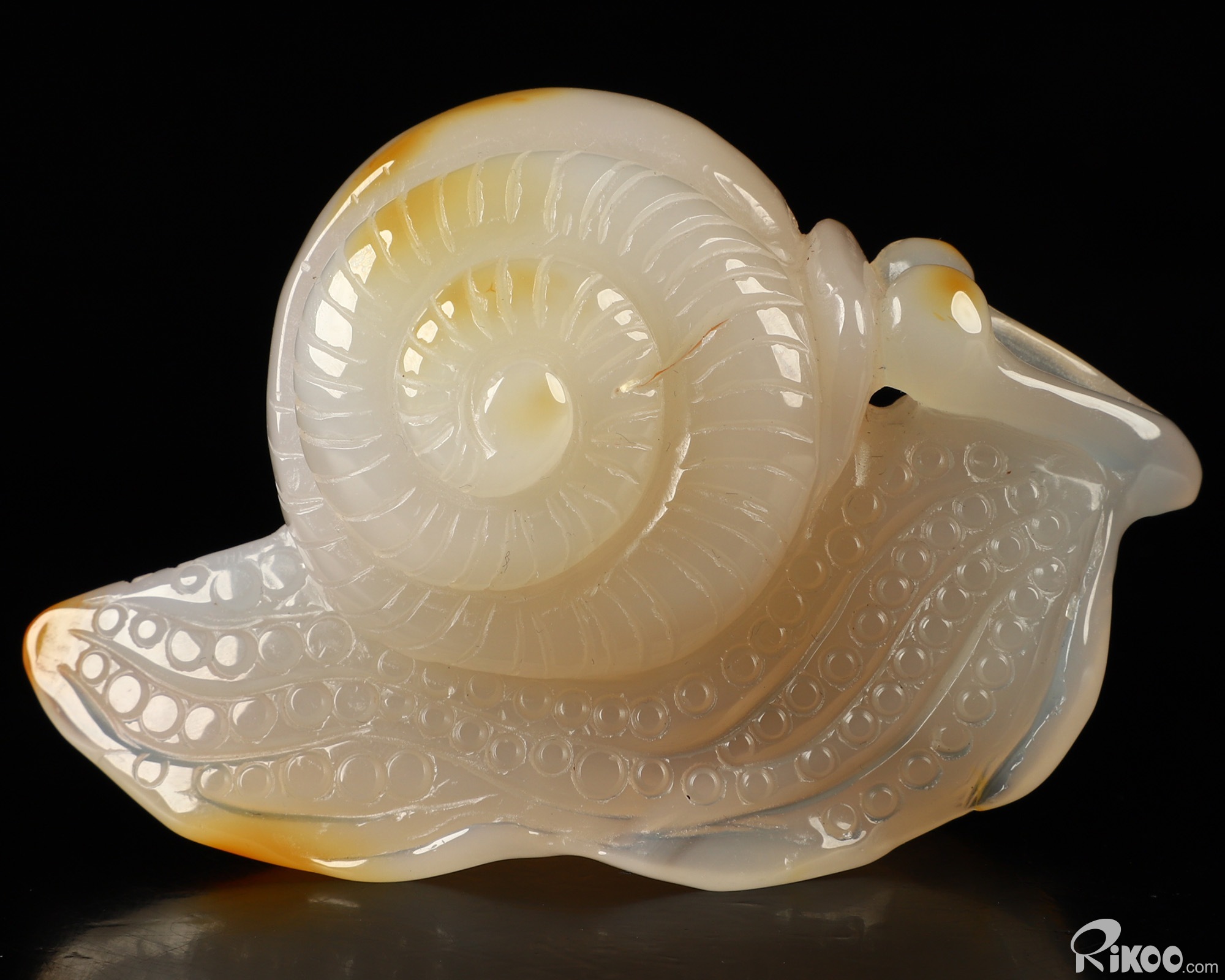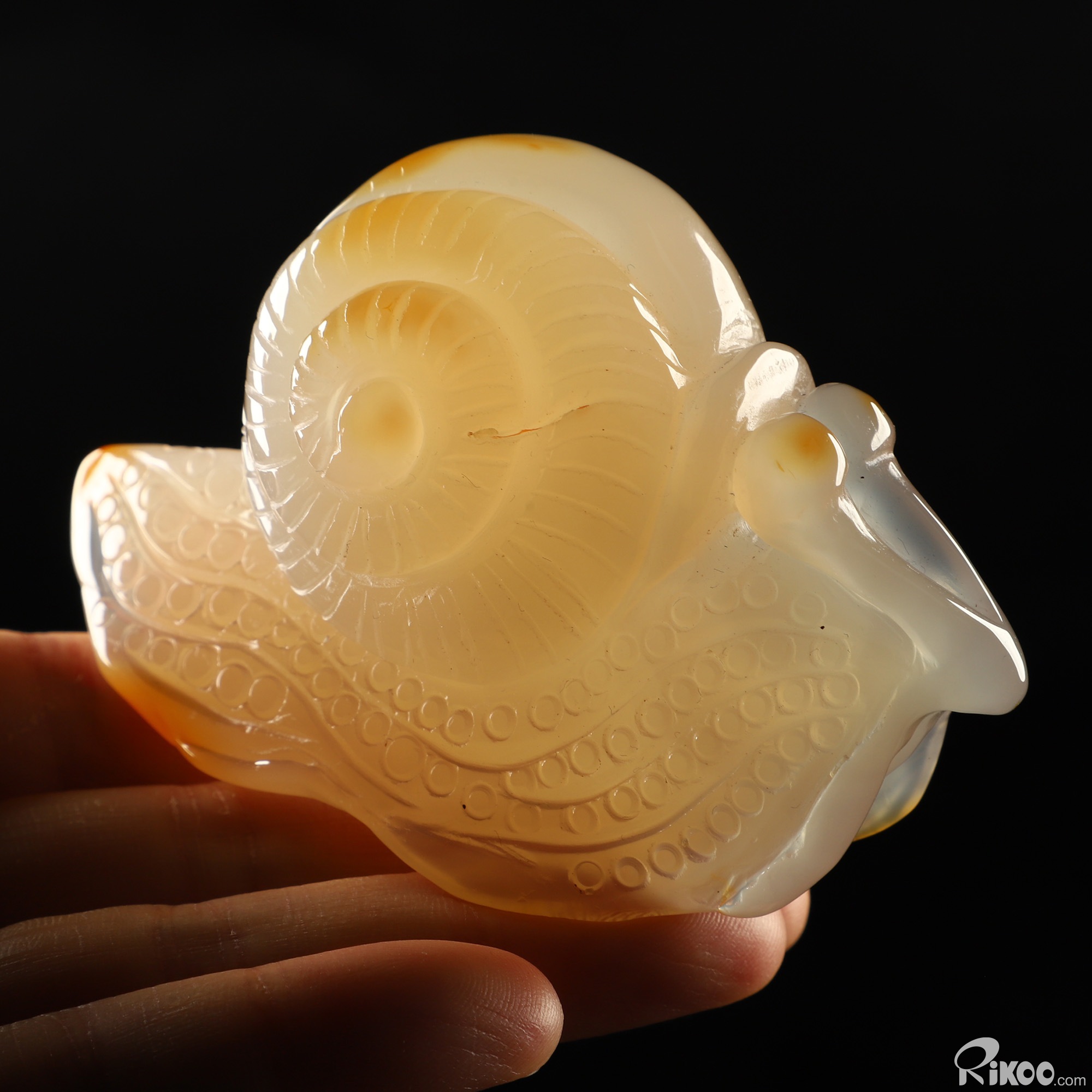 3.6" Carnelian Hand Carved Crystal Snail Sculpture, Crystal Healing