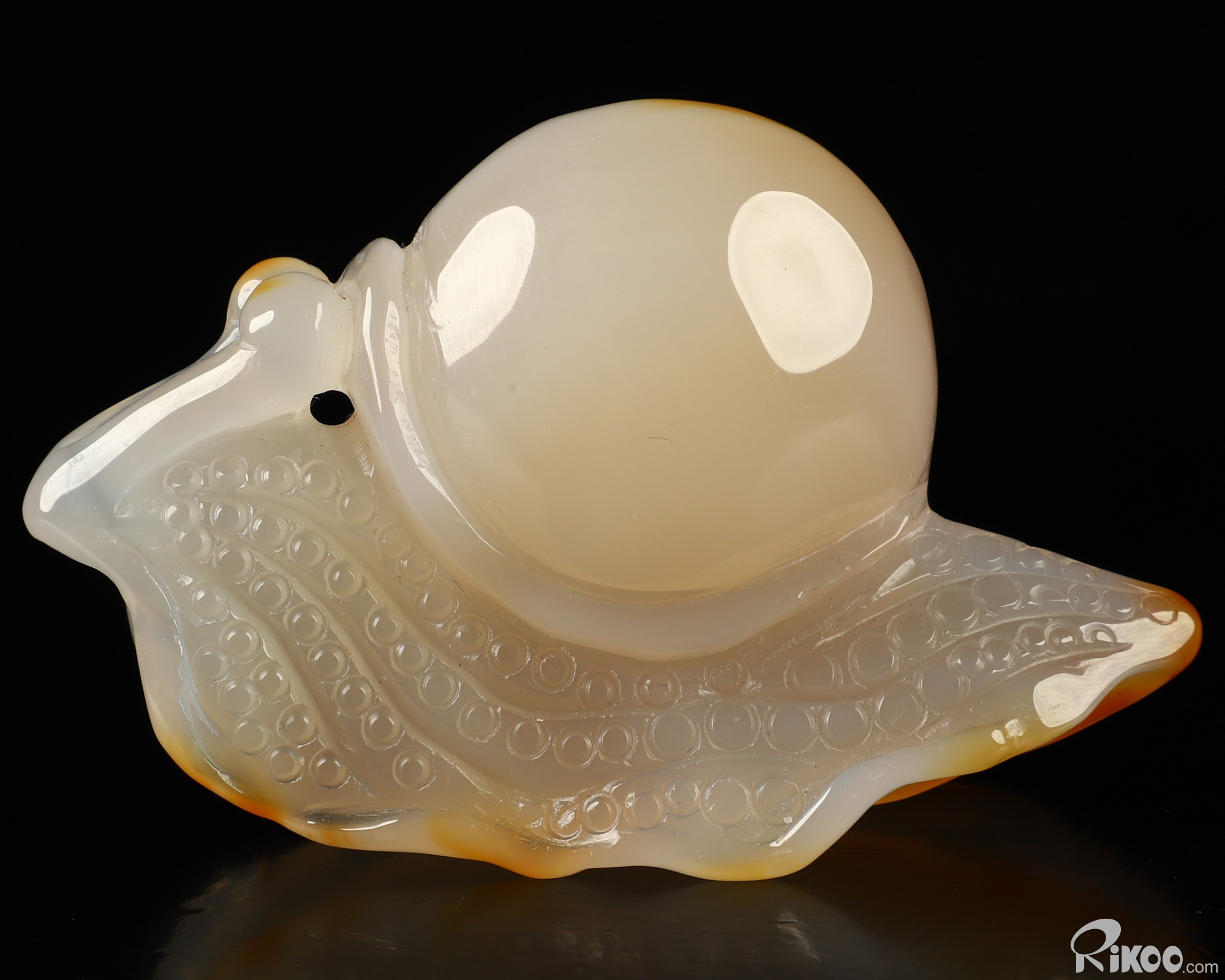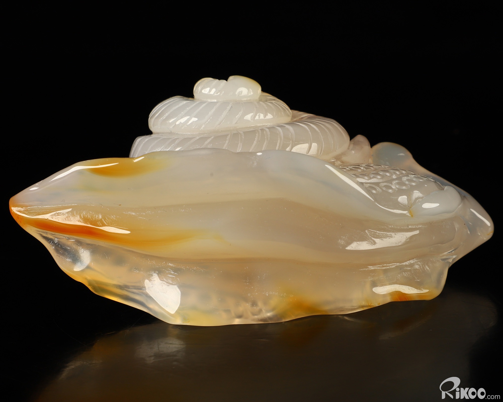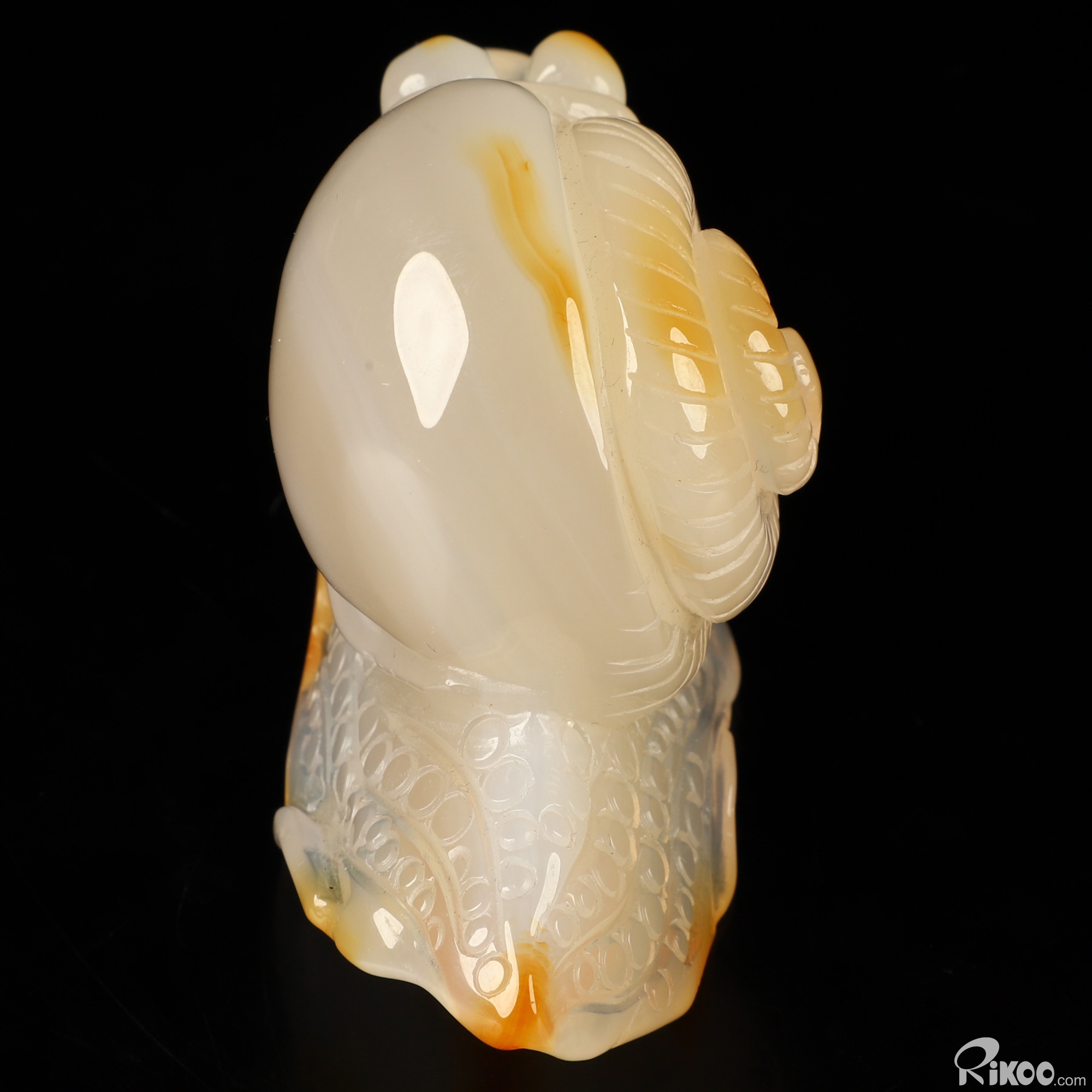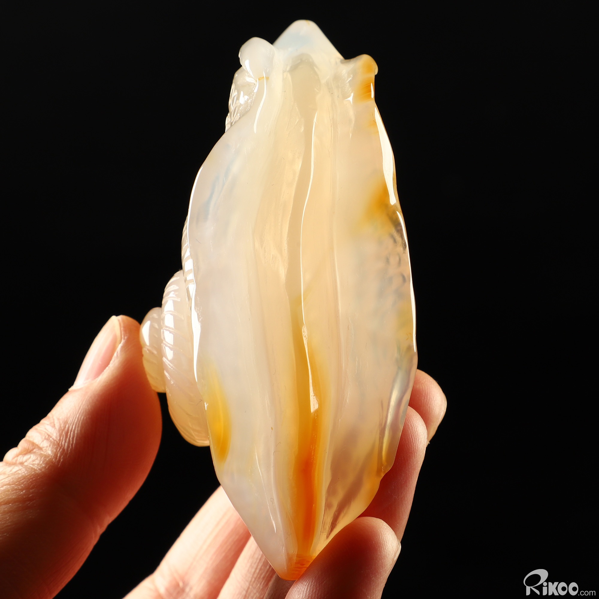 You are looking at a Carnelian sculpture. The sculpture is 3.6 inches long.