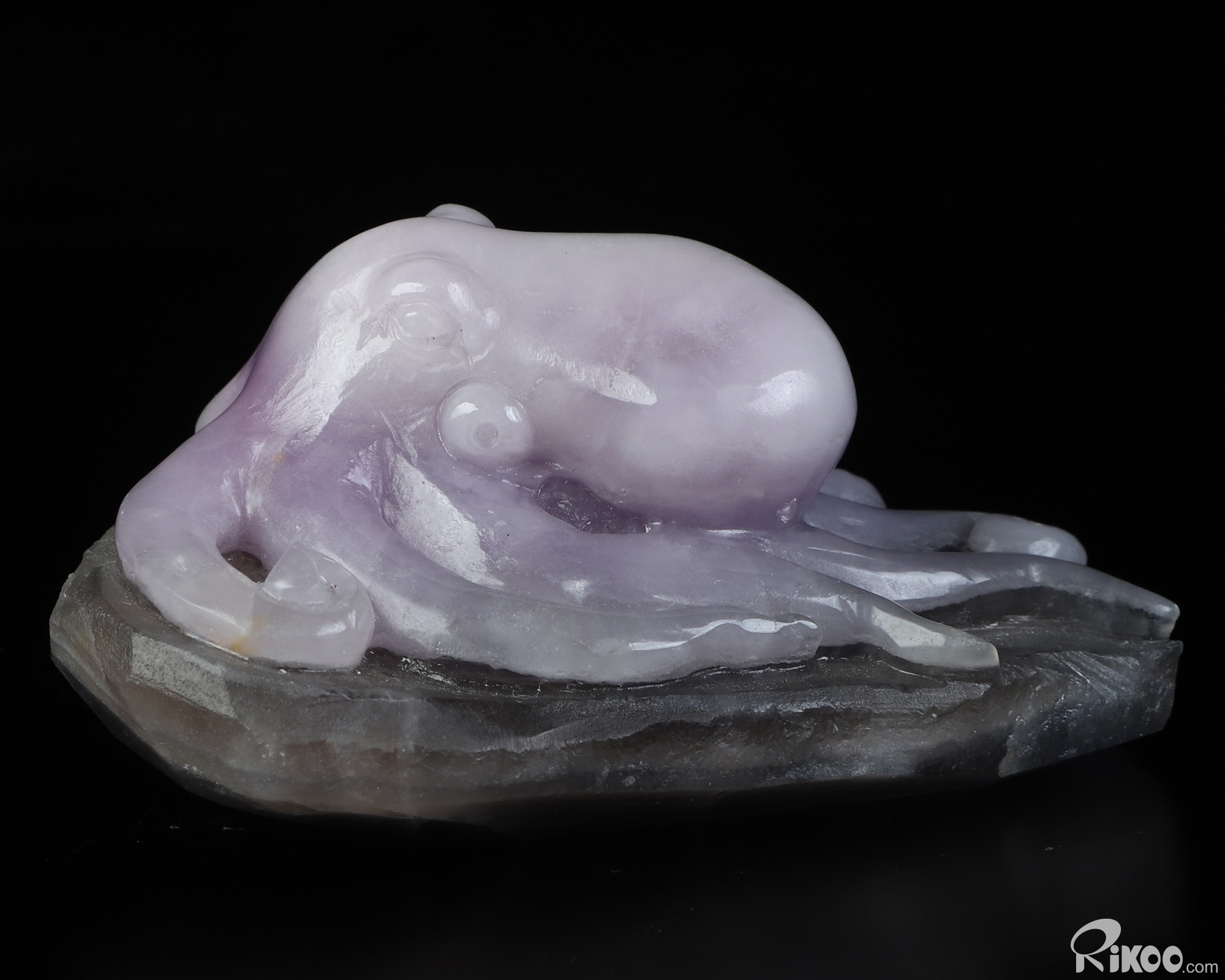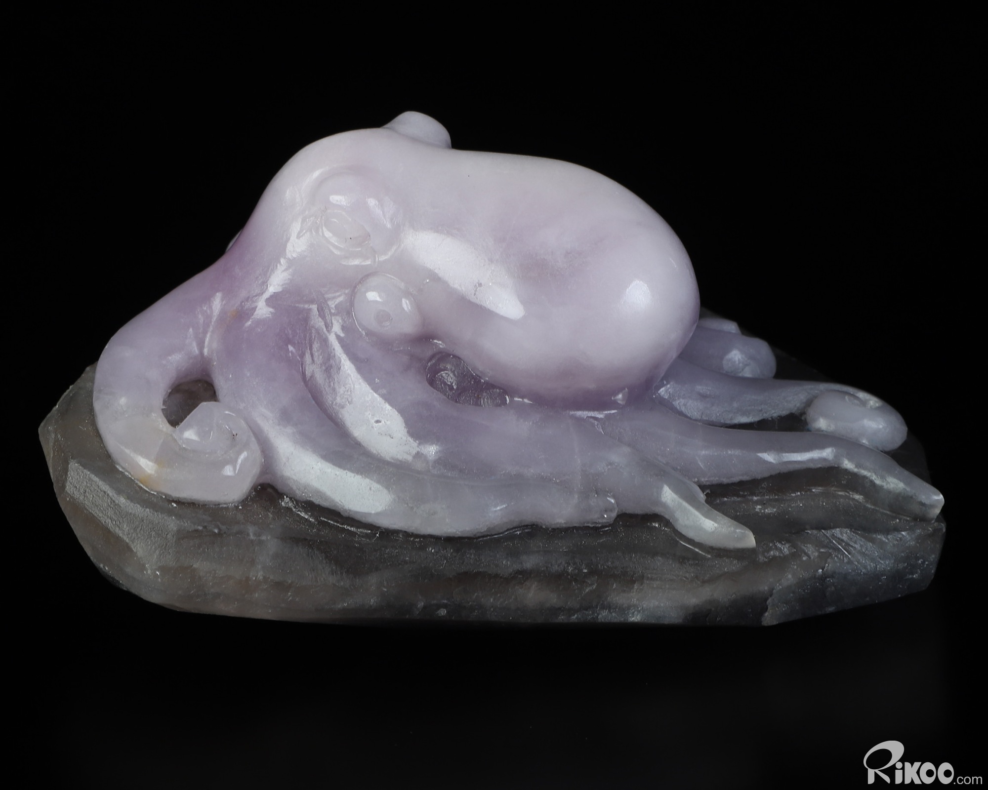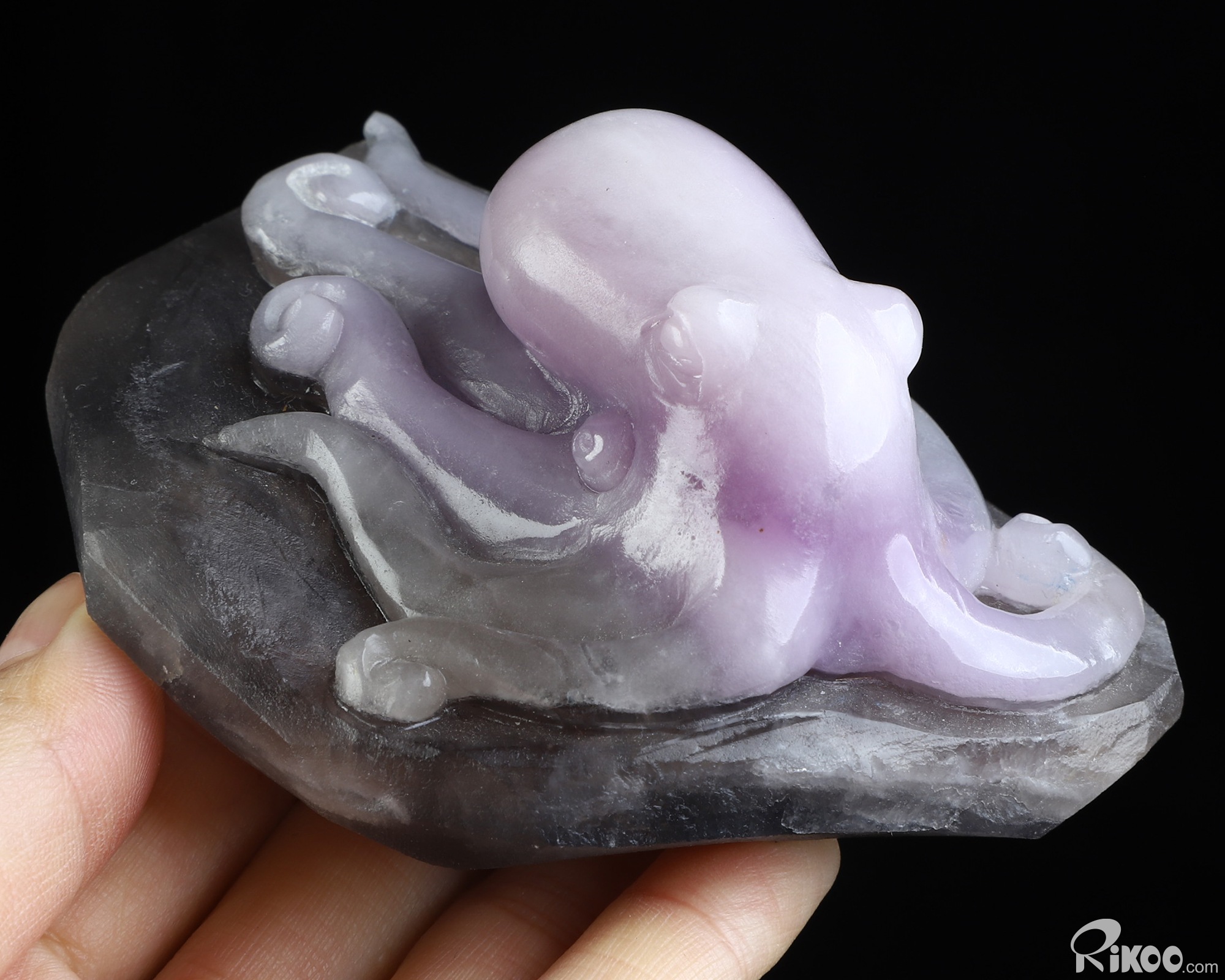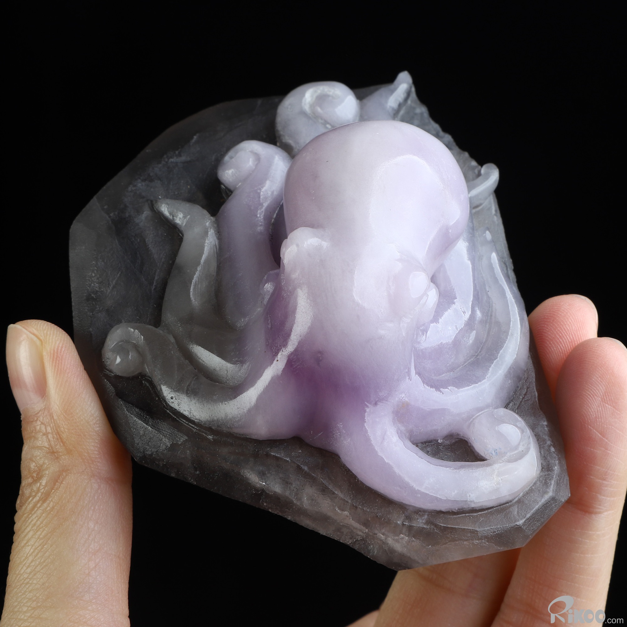 3.6" Fluorite Hand Carved Crystal Octopus Sculpture, Crystal Healing