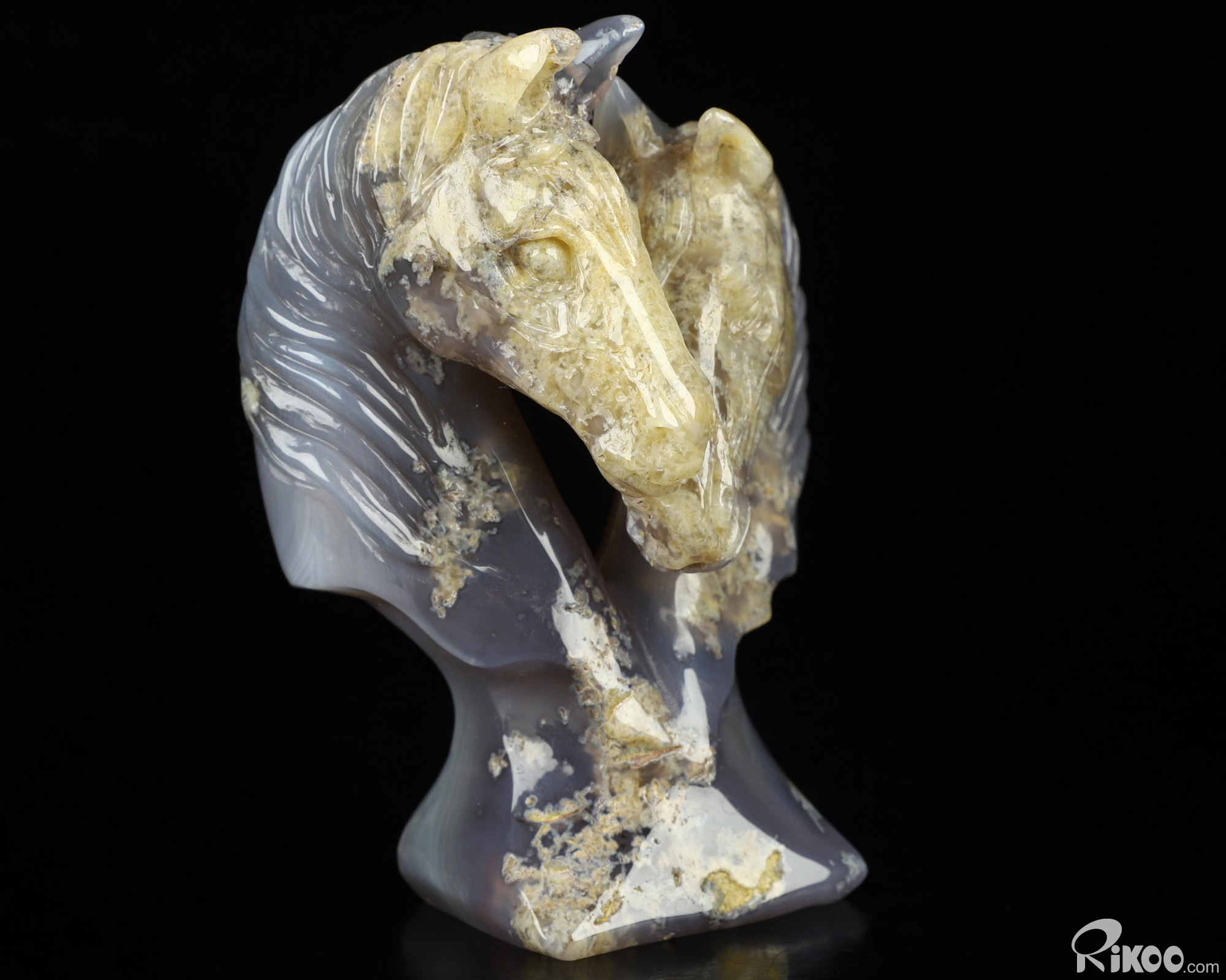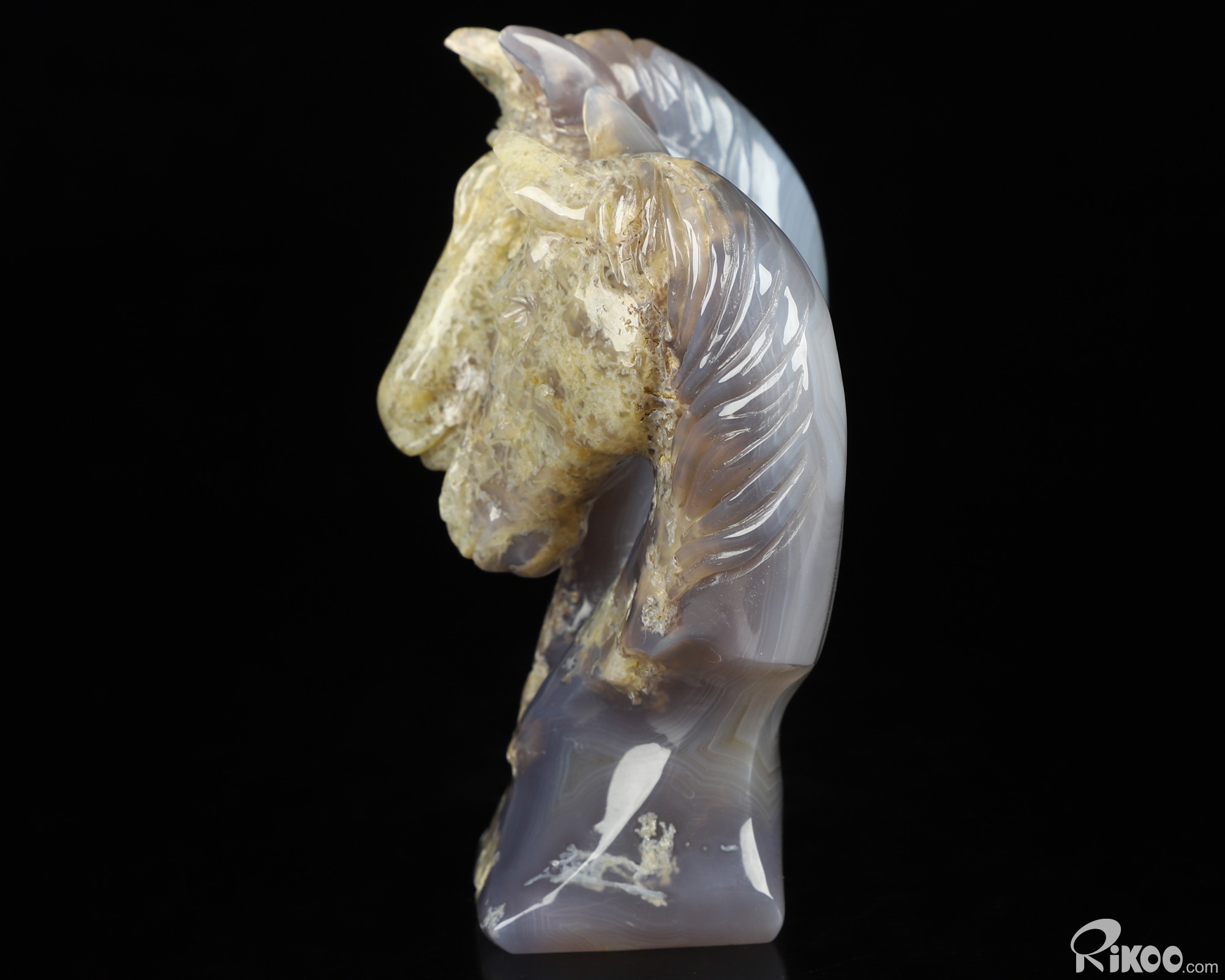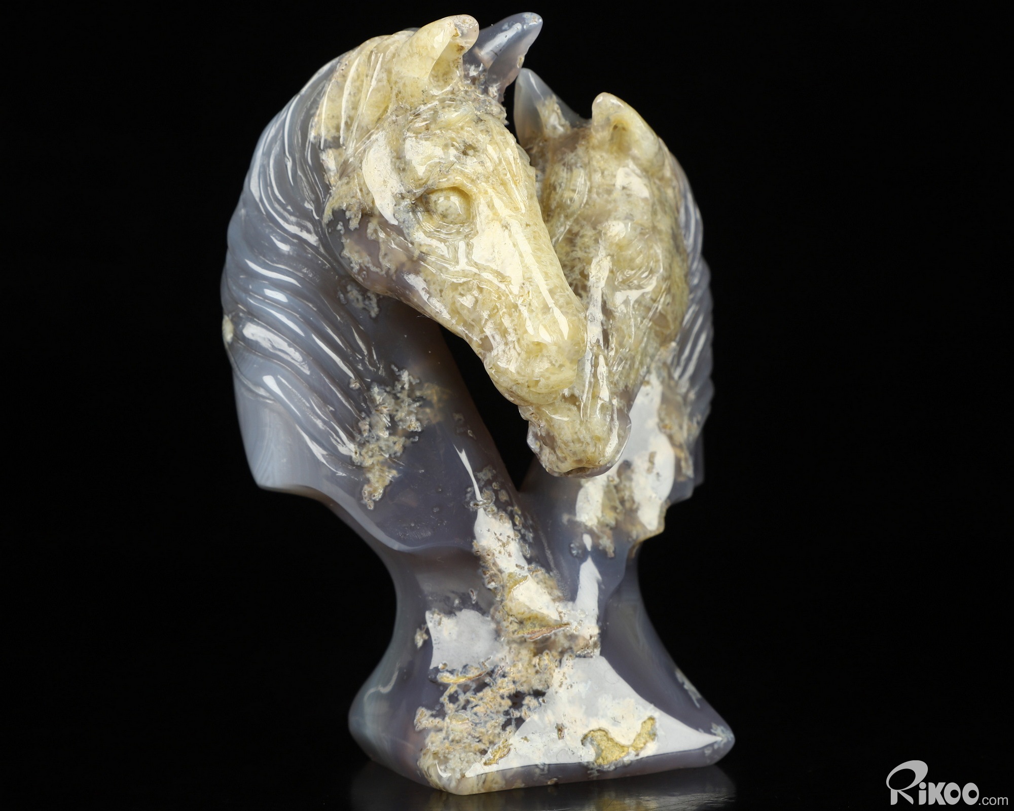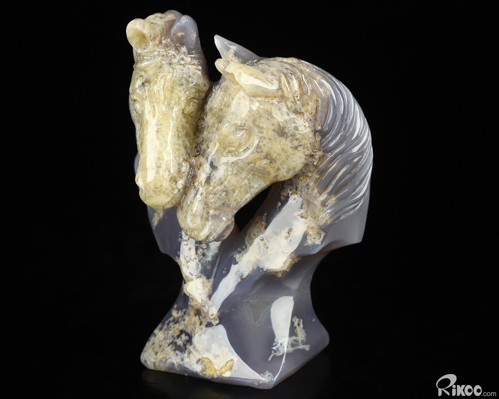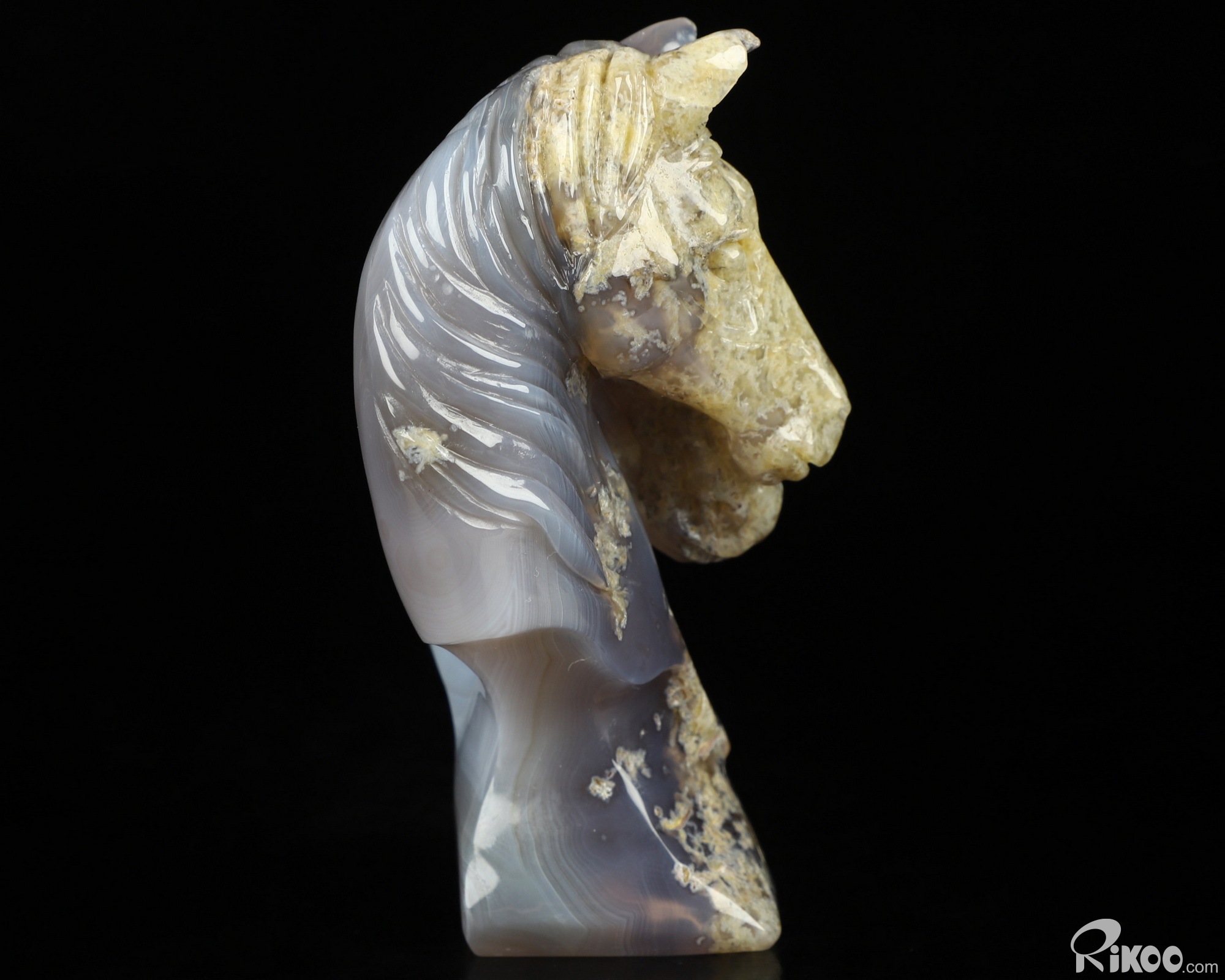 3.6" Gray & White Agate Hand Carved Crystal Horse Sculpture, Crystal Healing