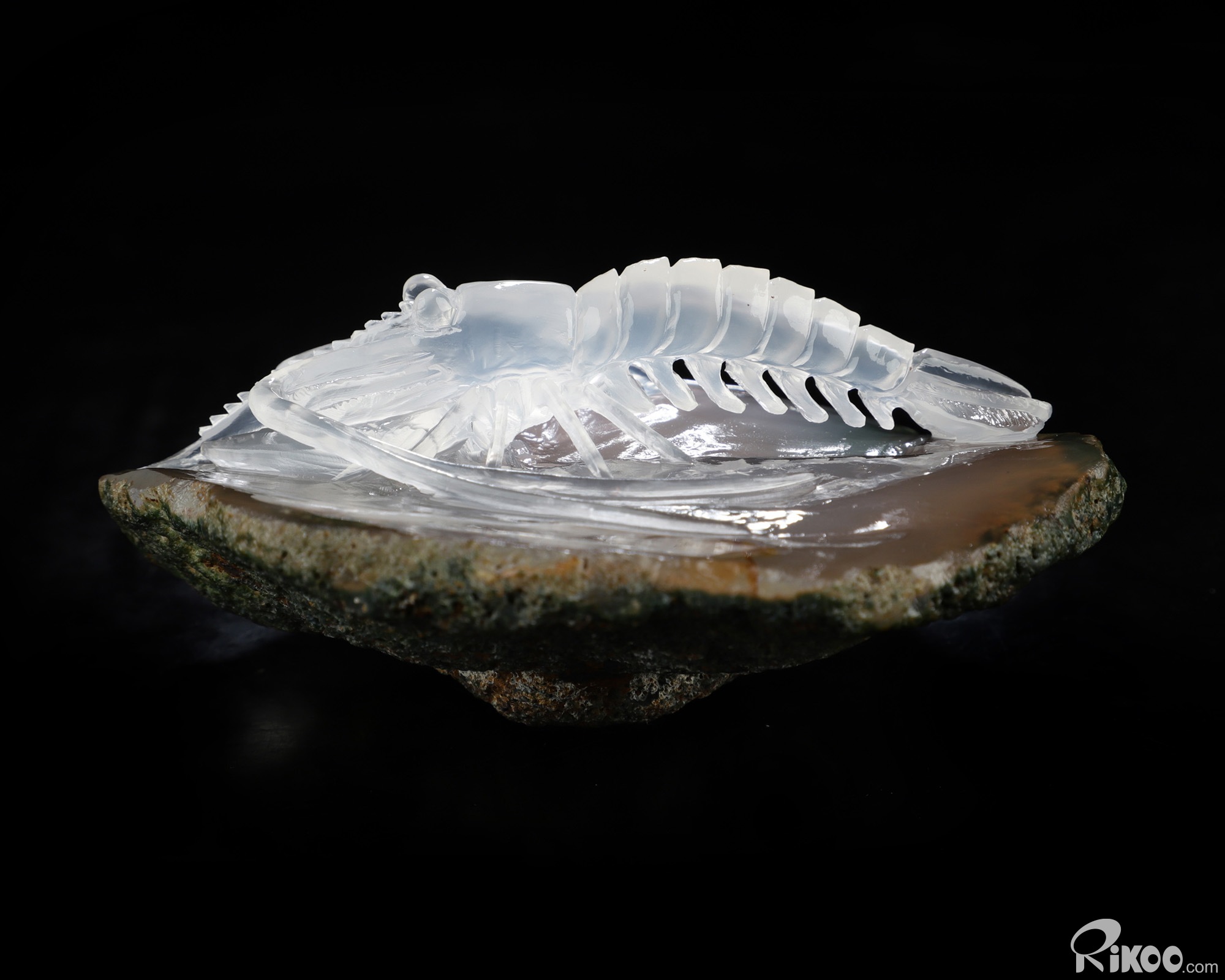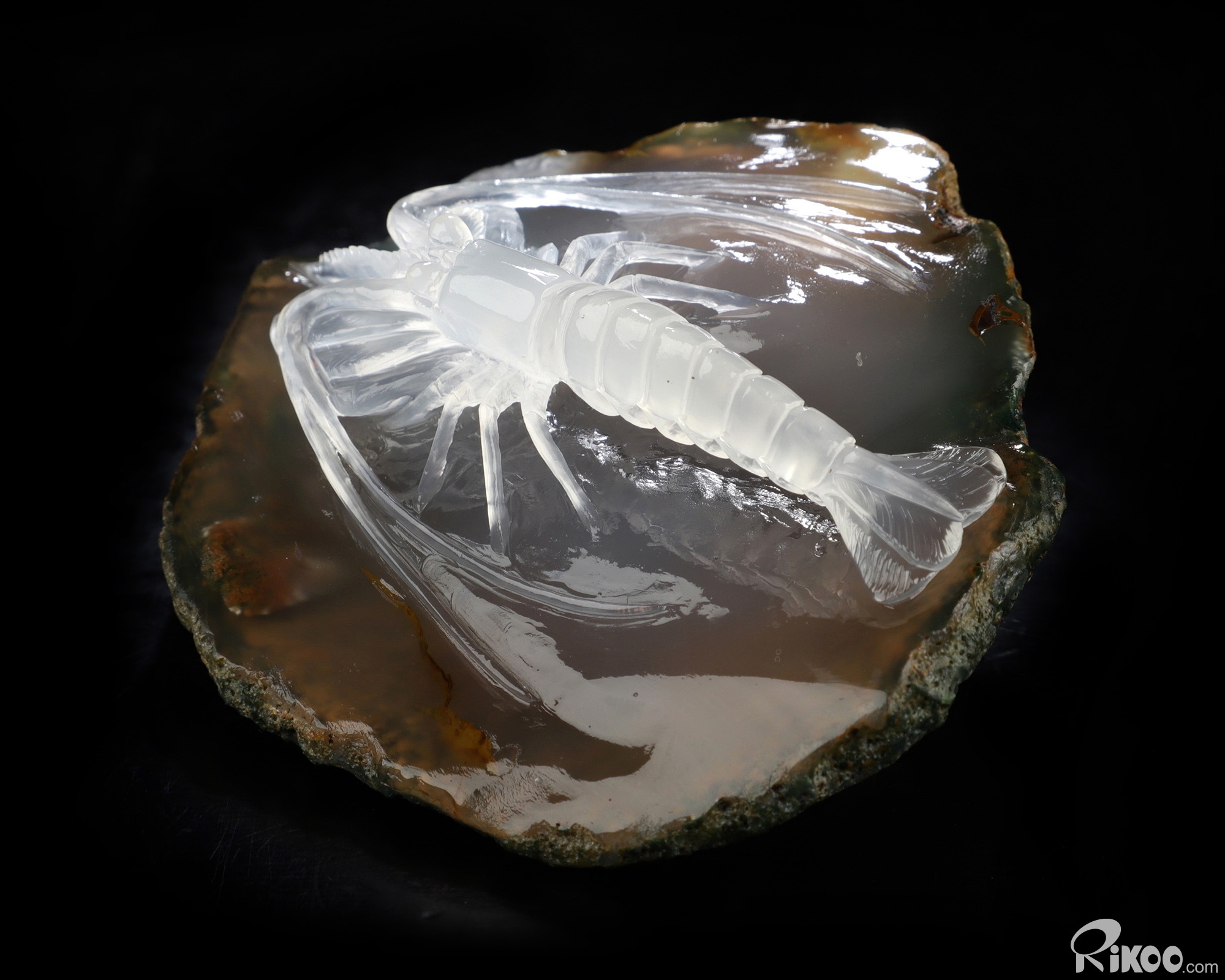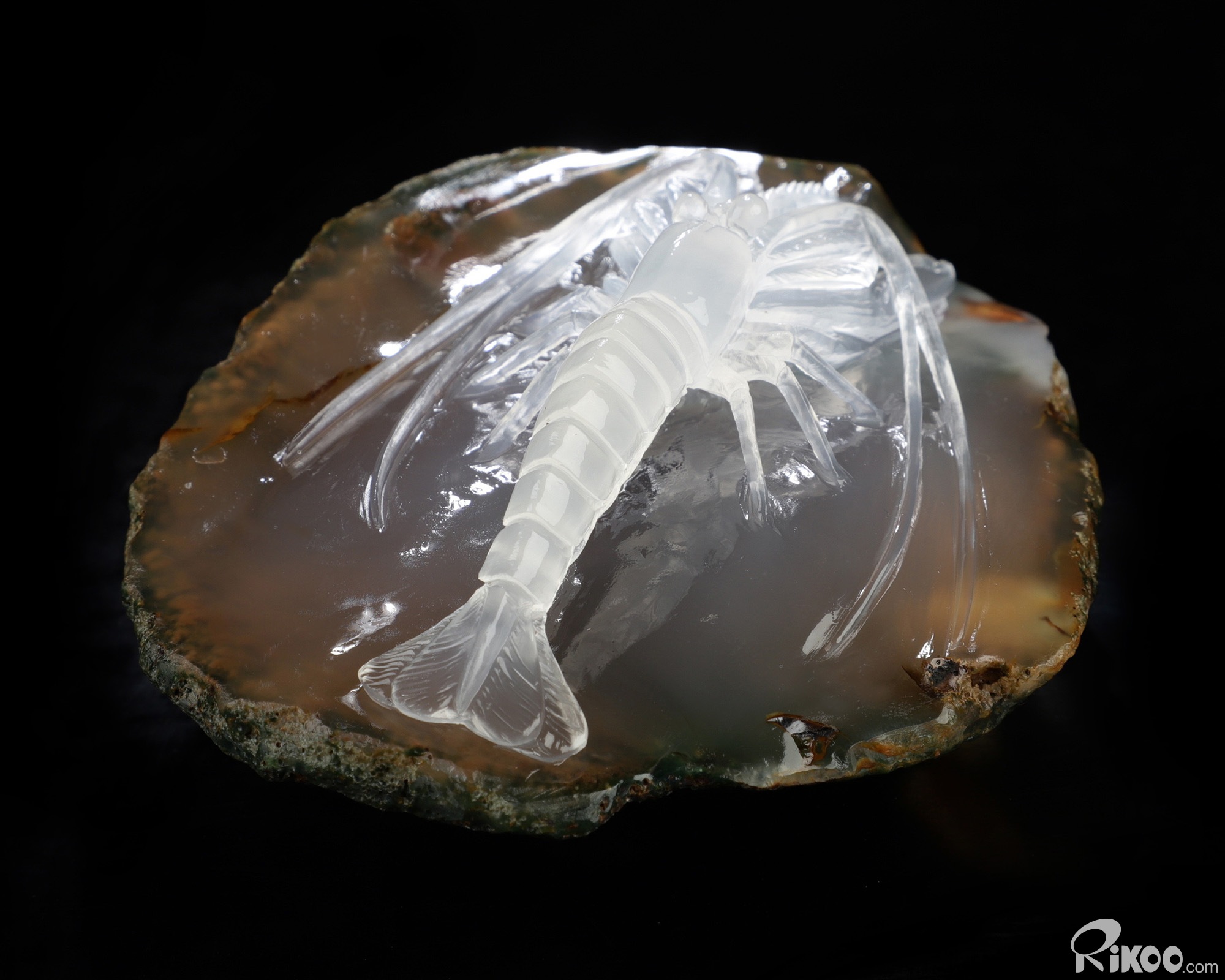 3.6" Indian Agate Hand Carved Crystal Shrimp Sculpture, Crystal Healing