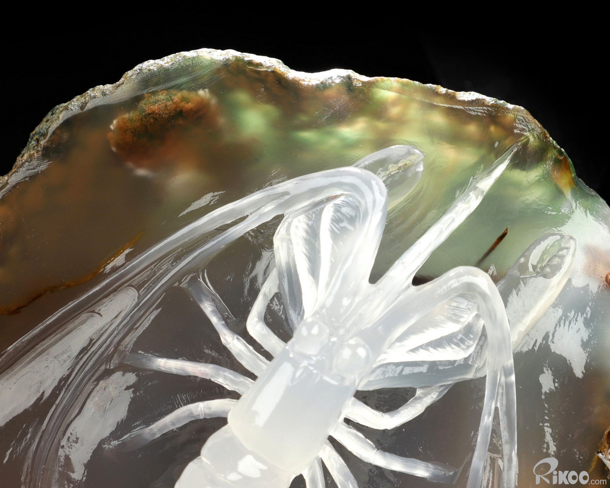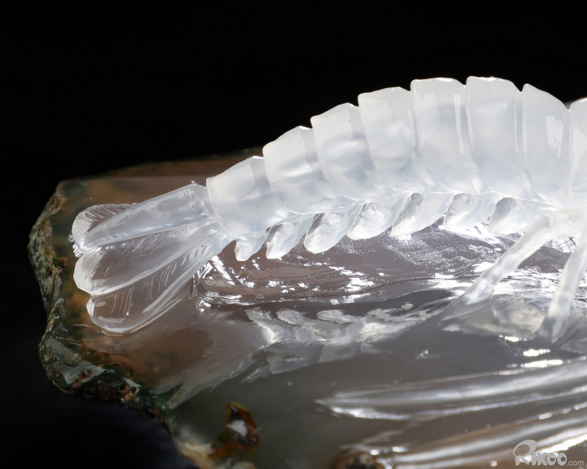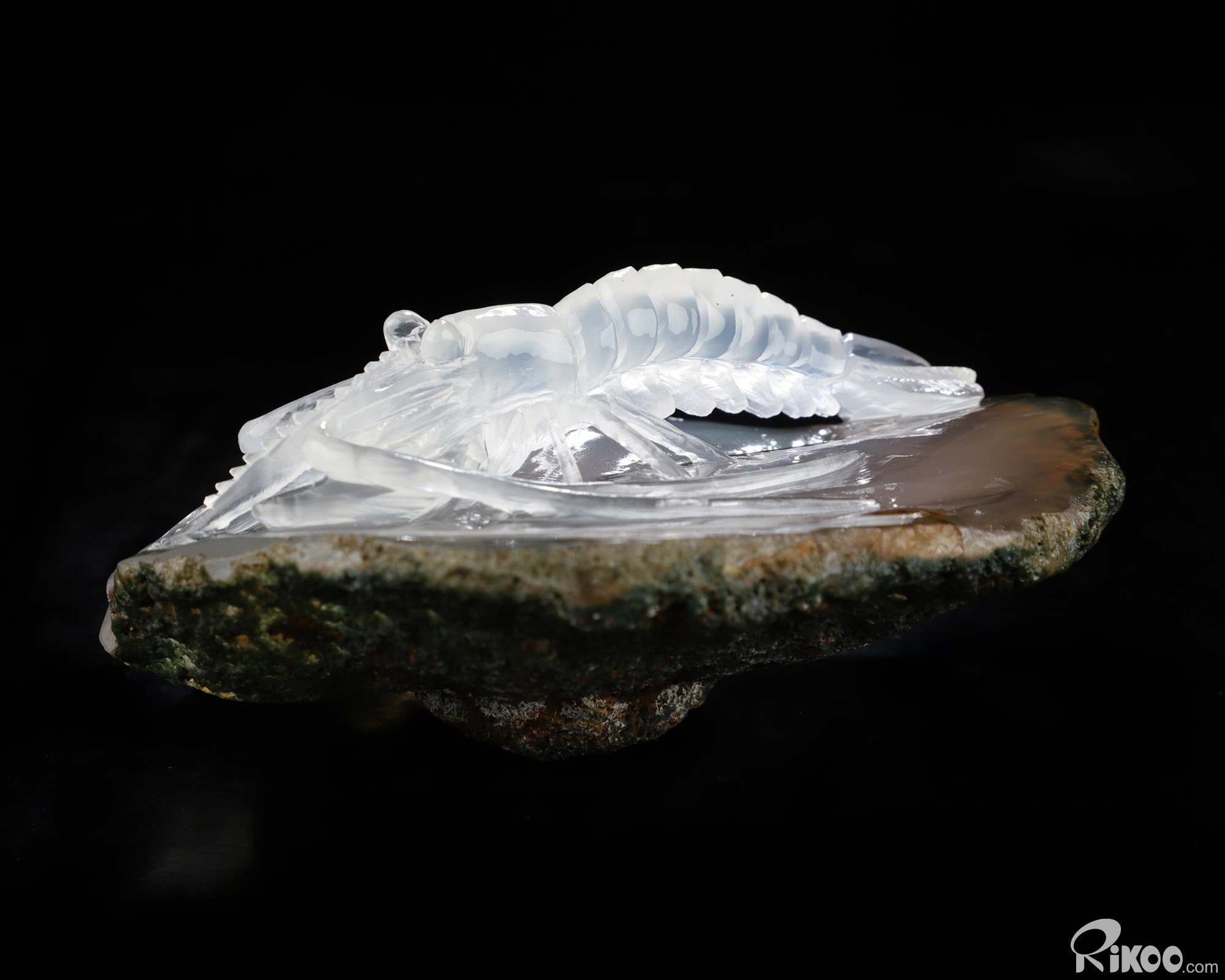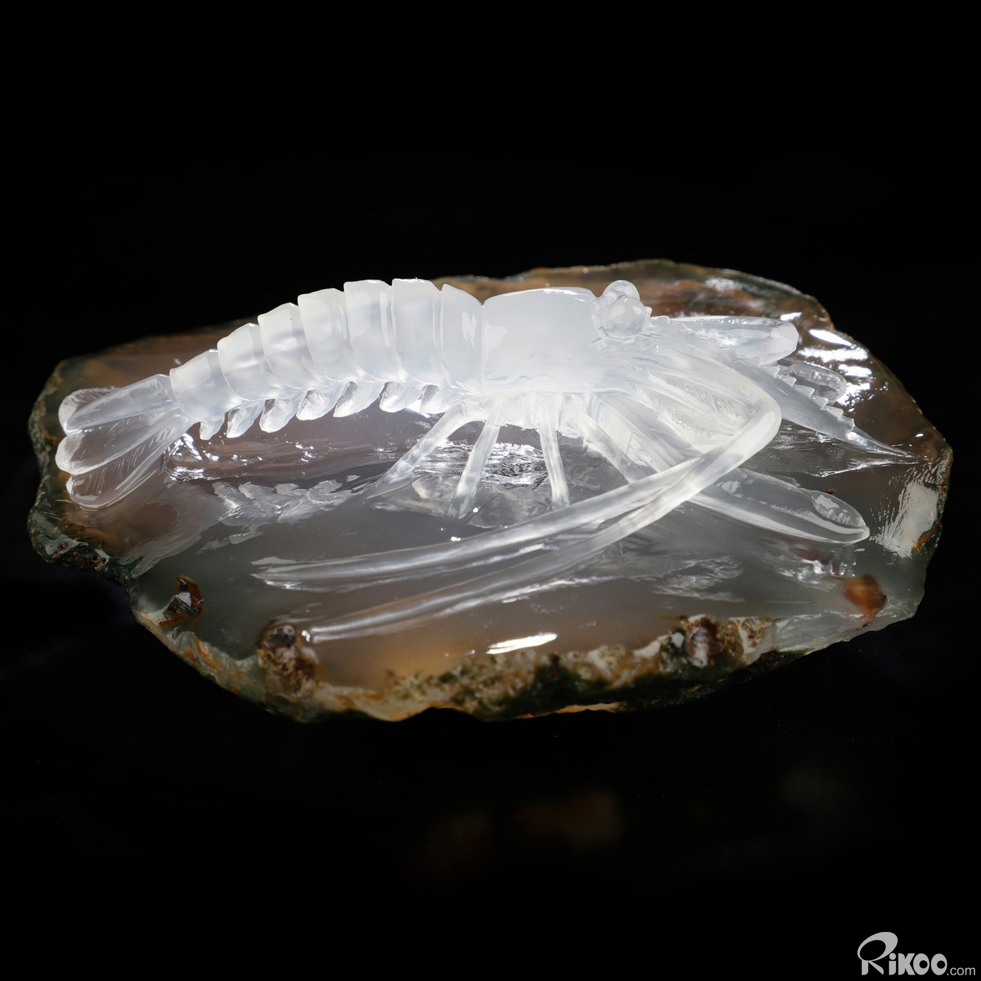 3.6" Indian Agate Hand Carved Crystal Shrimp Sculpture, Crystal Healing