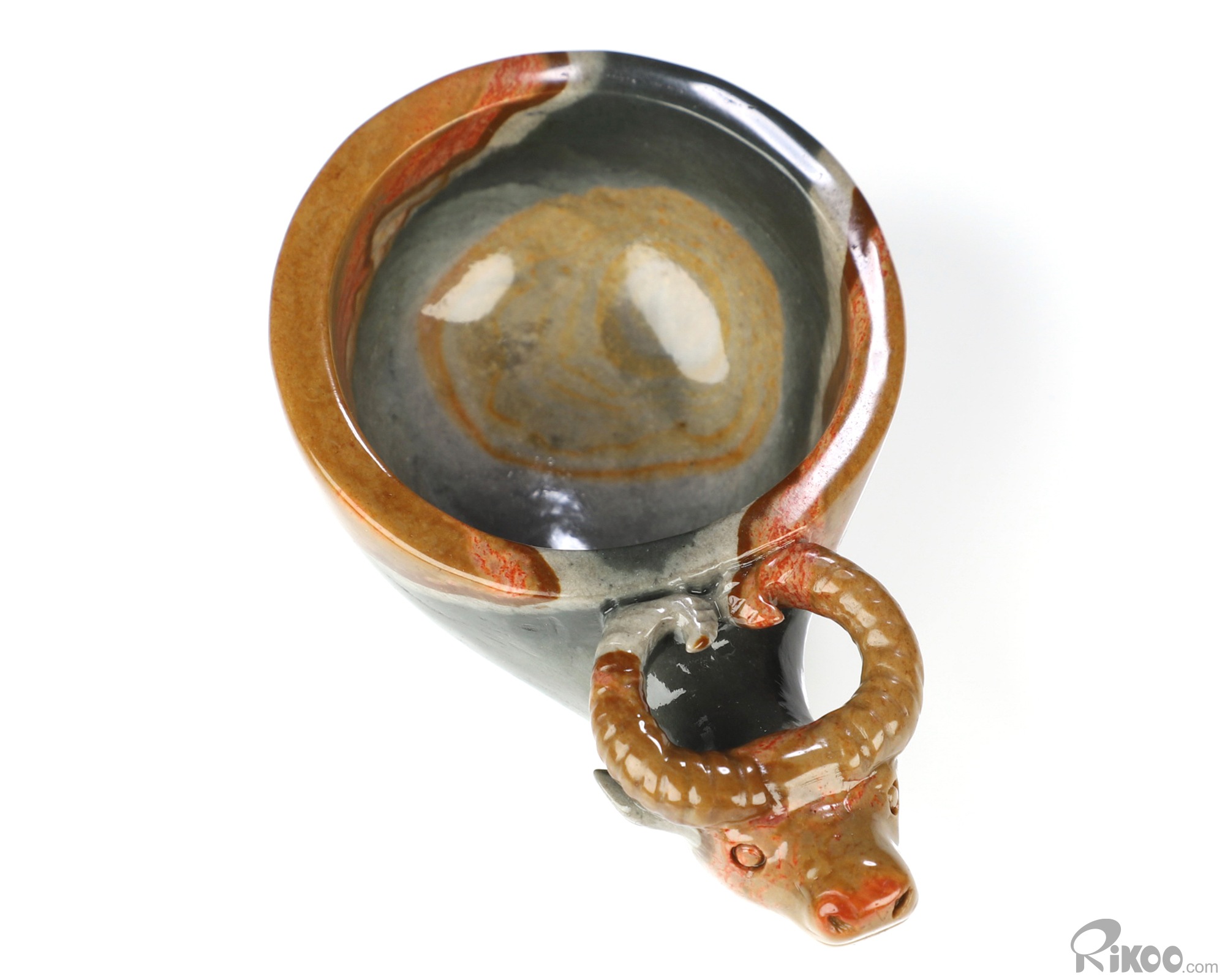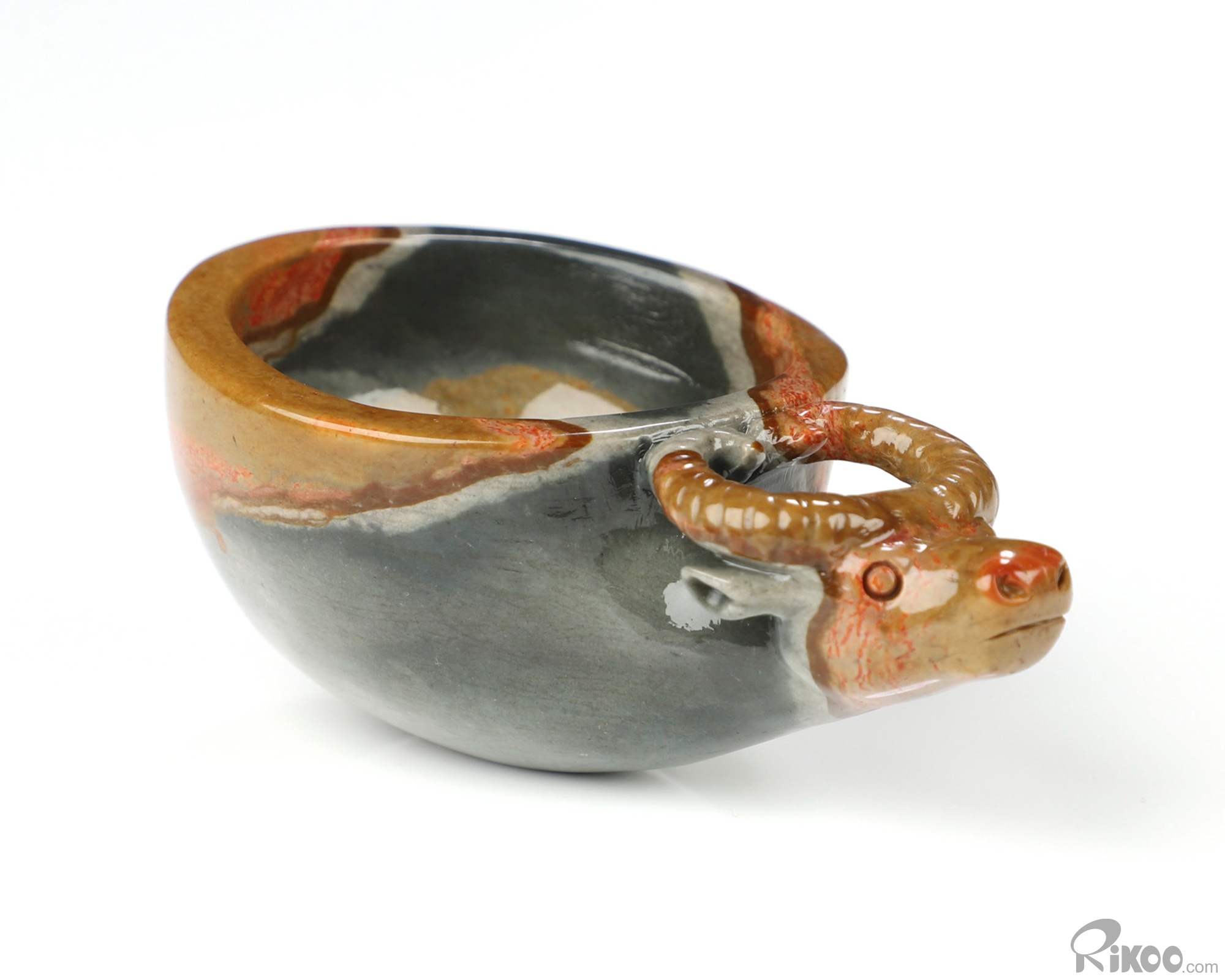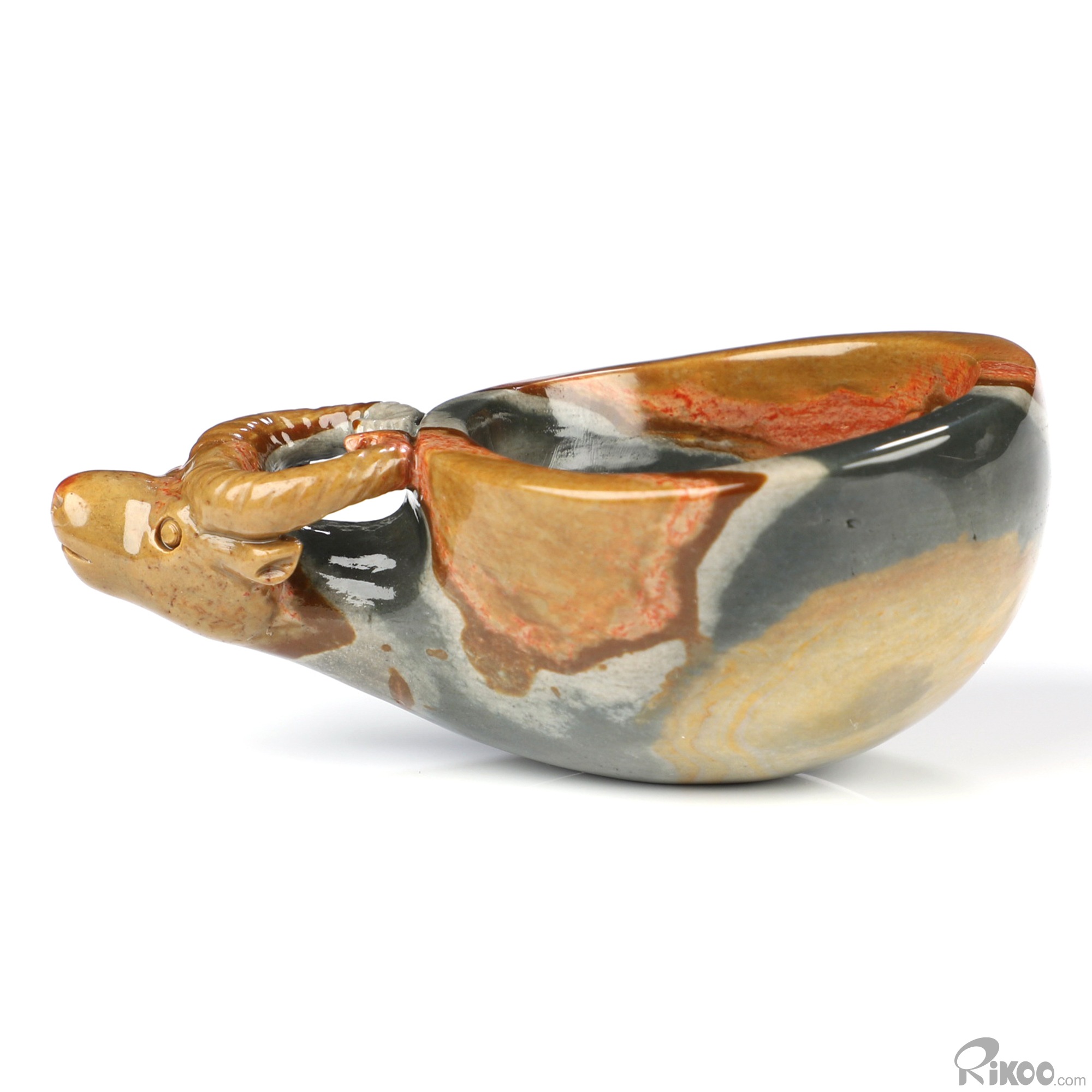 3.6" Polychrome Jasper Hand Carved Crystal Cup and Bull, Crystal Healing