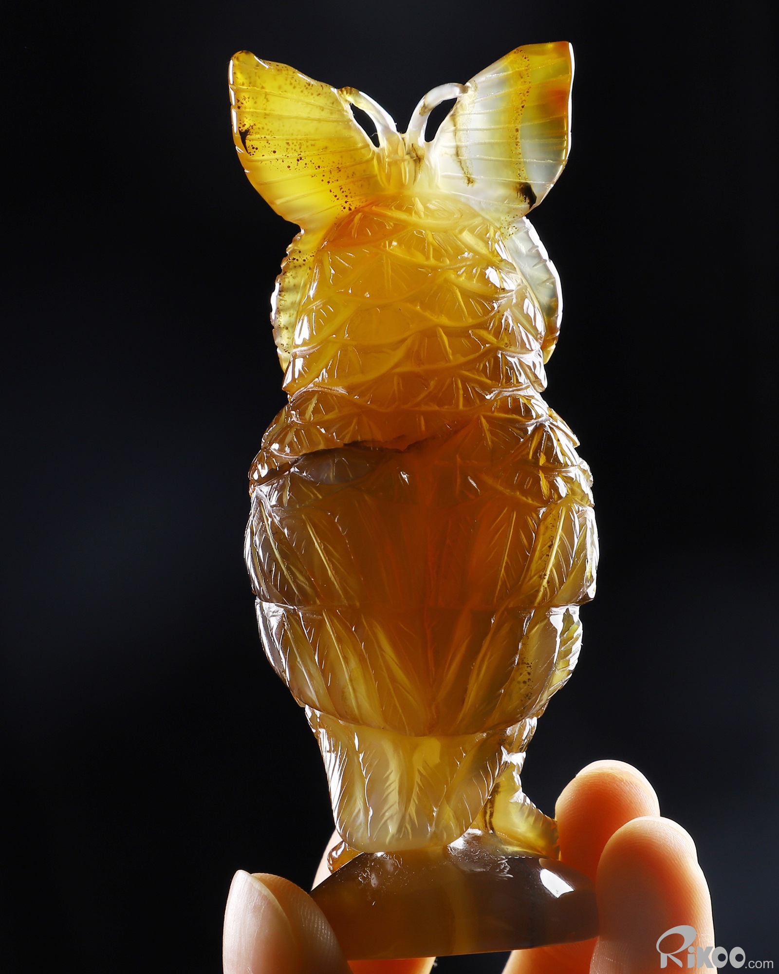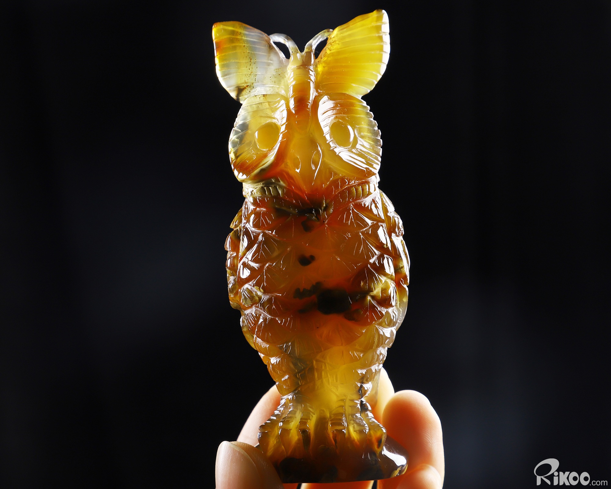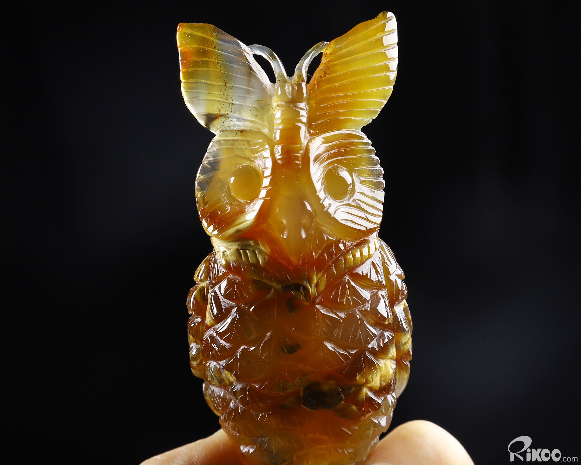You are looking at a Carnelian owl sculpture. The sculpture is 3.7 inches long.