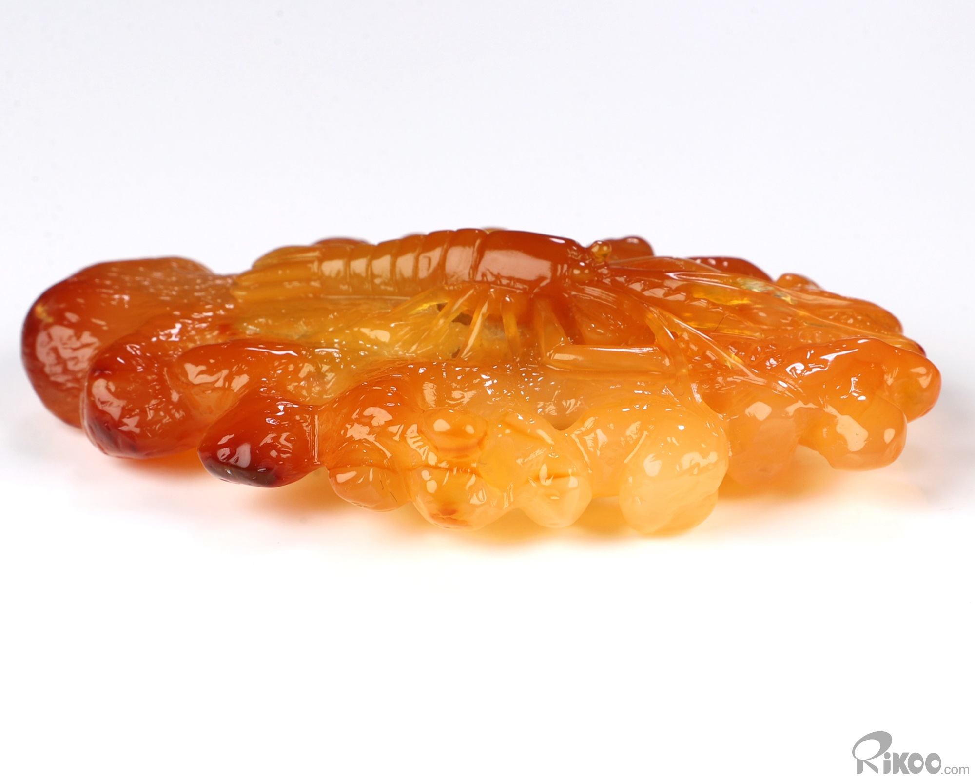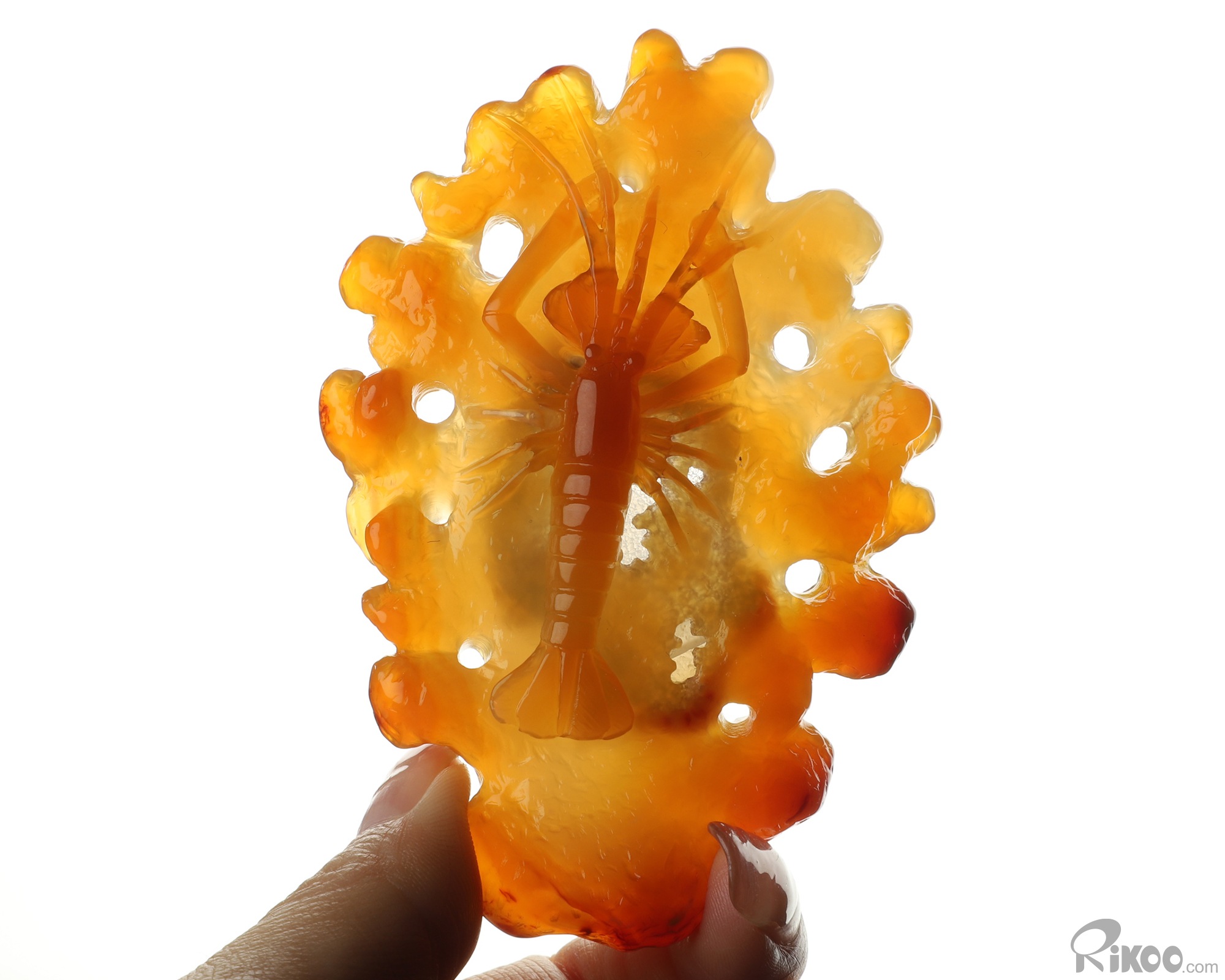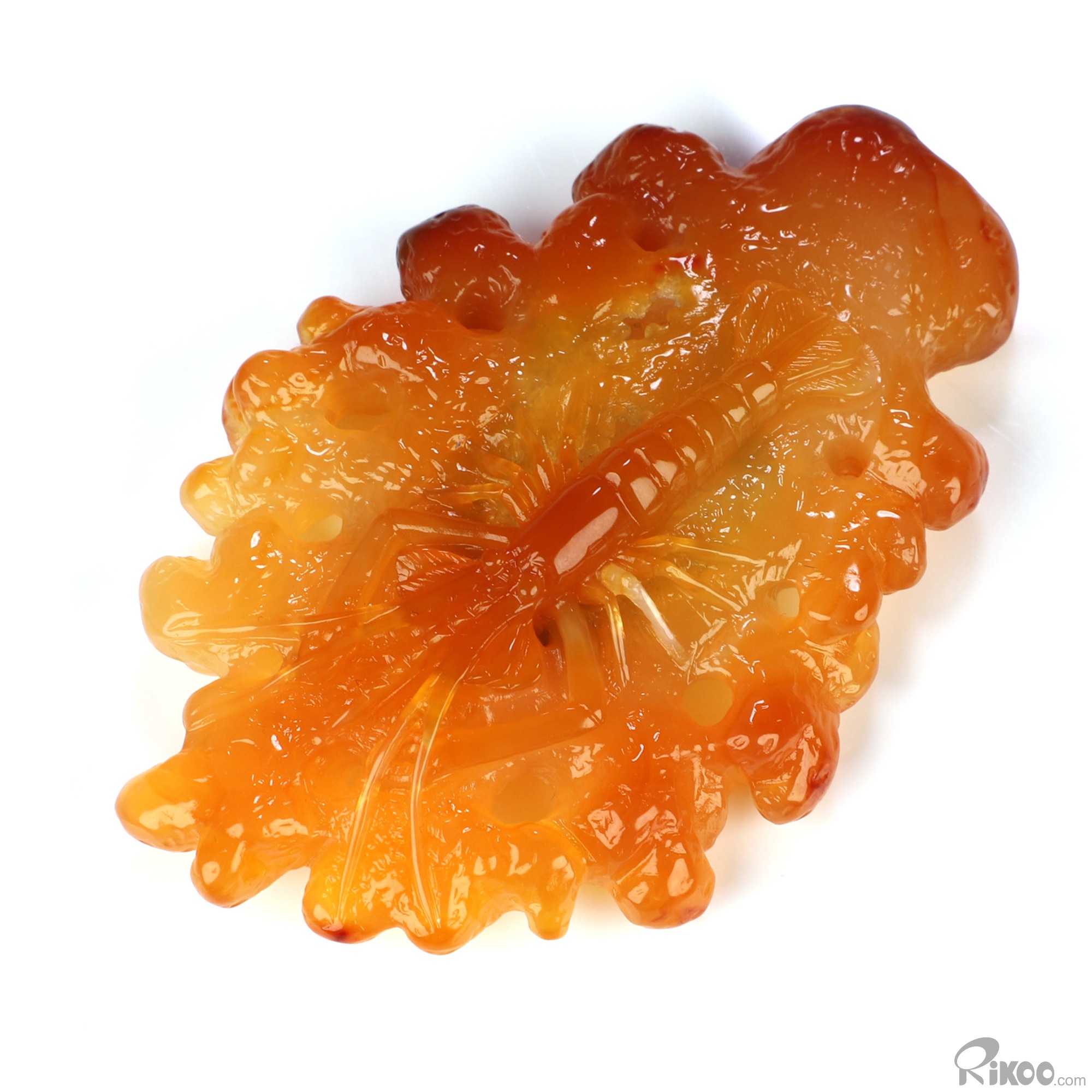 3.7" Carnelian Hand Carved Crystal Shrimp Sculpture, Crystal Healing