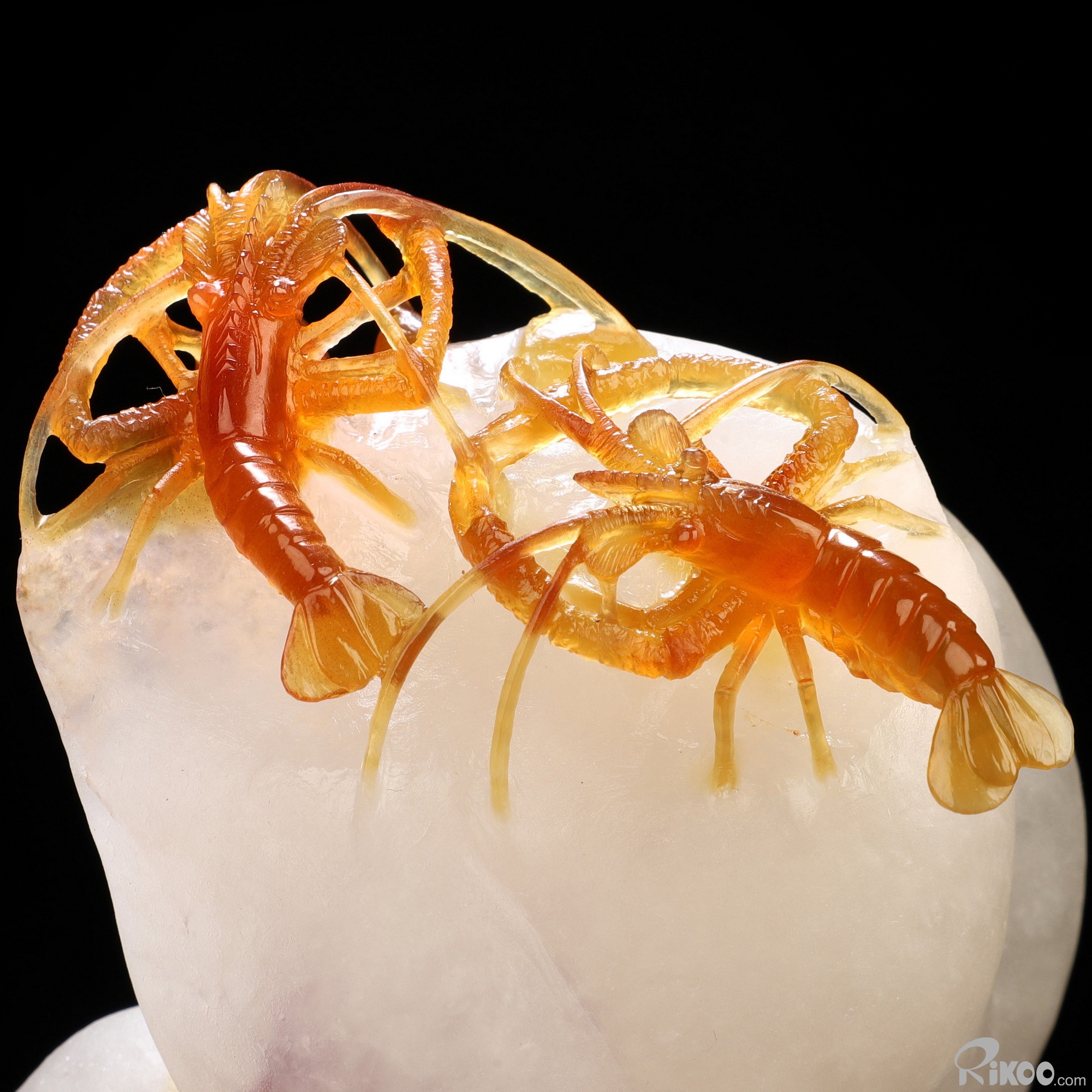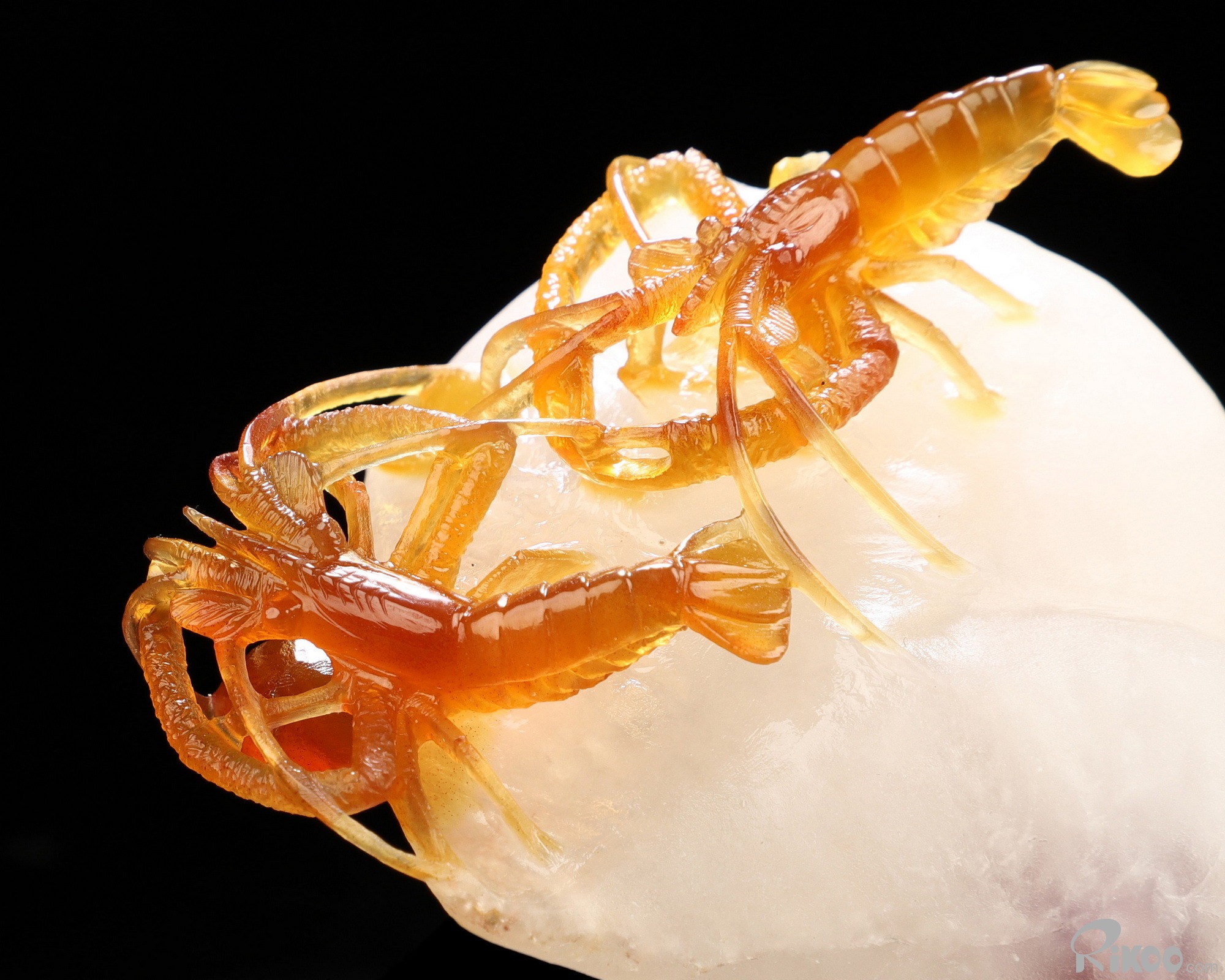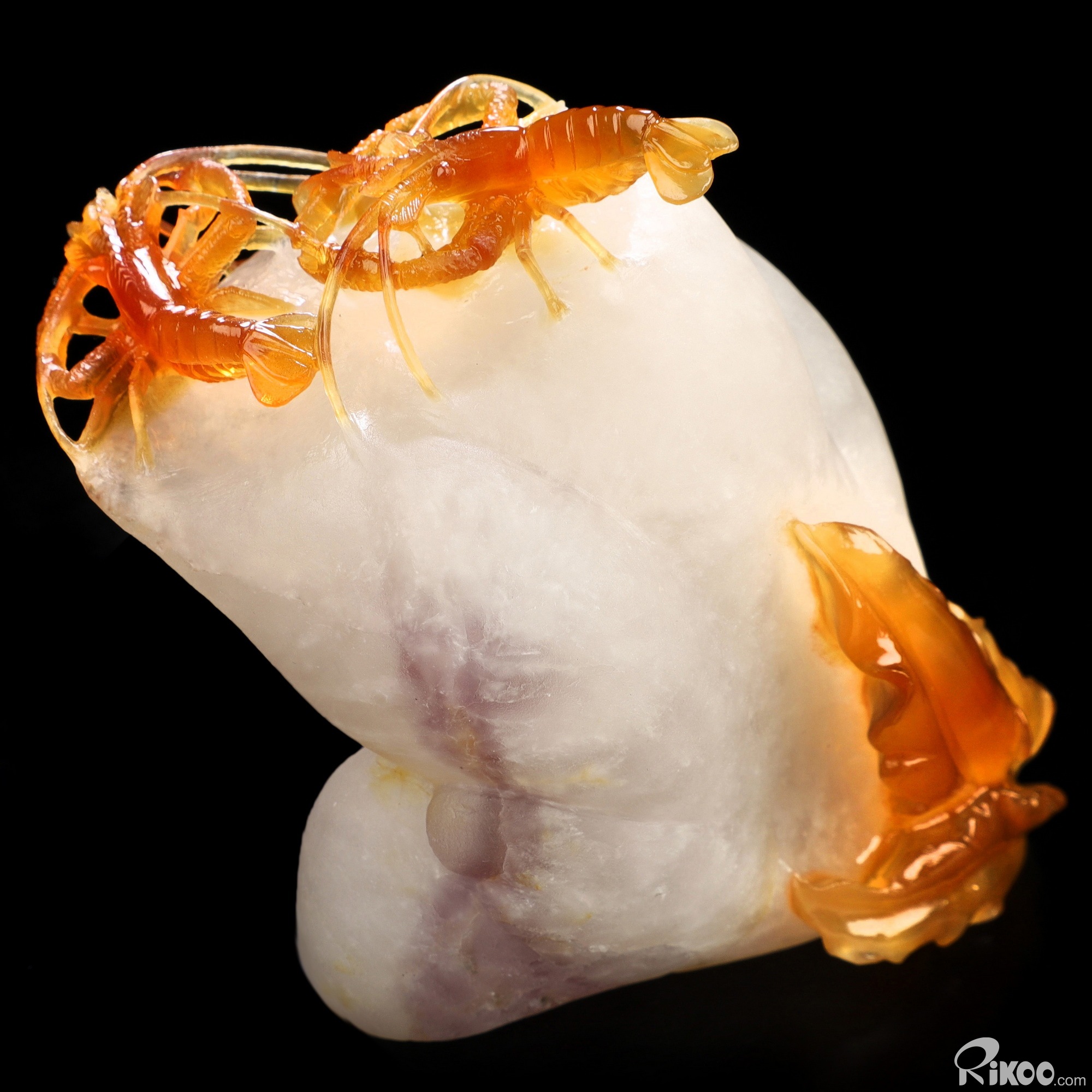 3.7" Carnelian Hand Carved Crystal Shrimps Sculpture, Crystal Healing