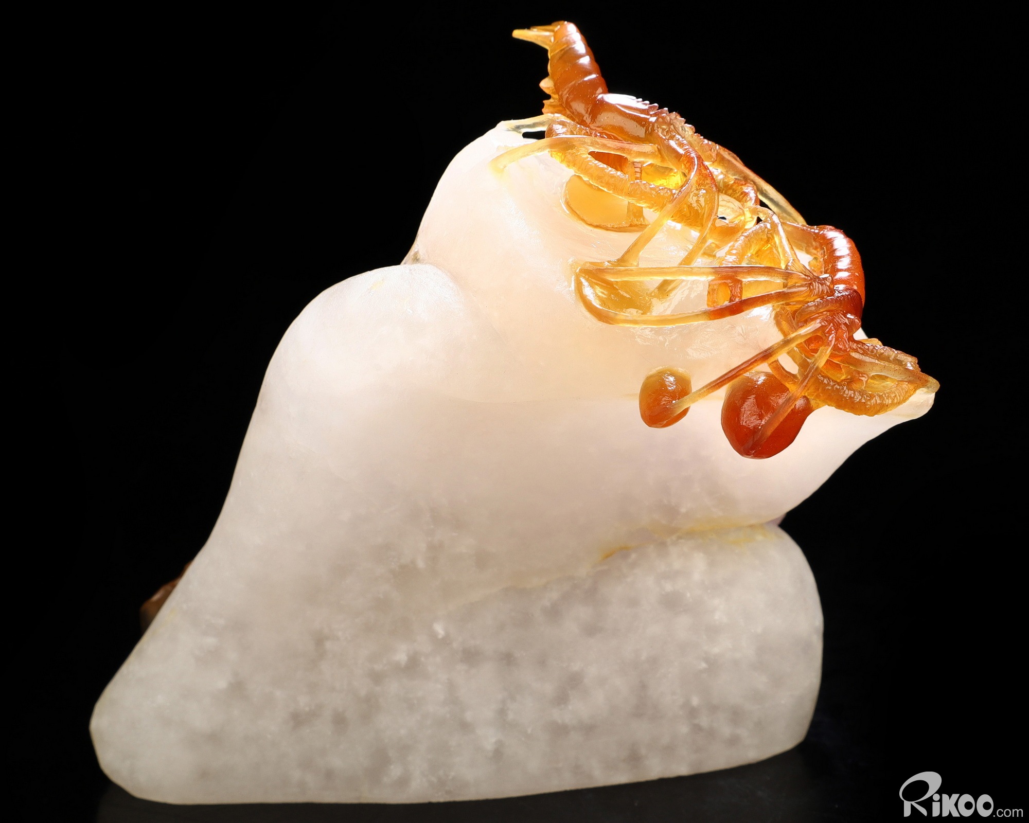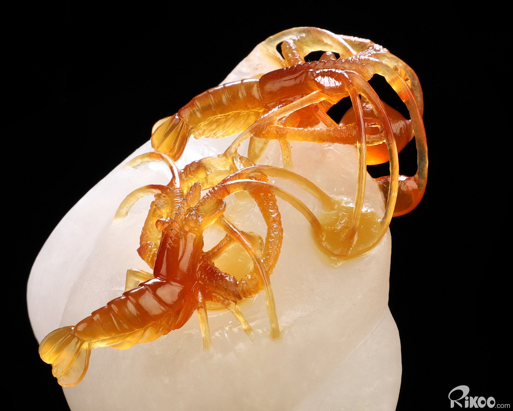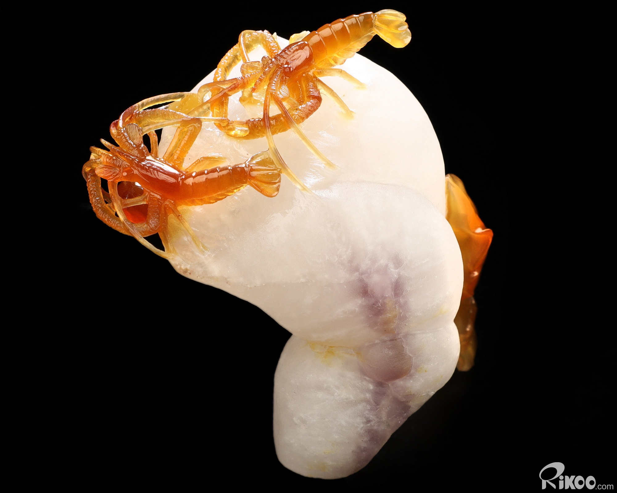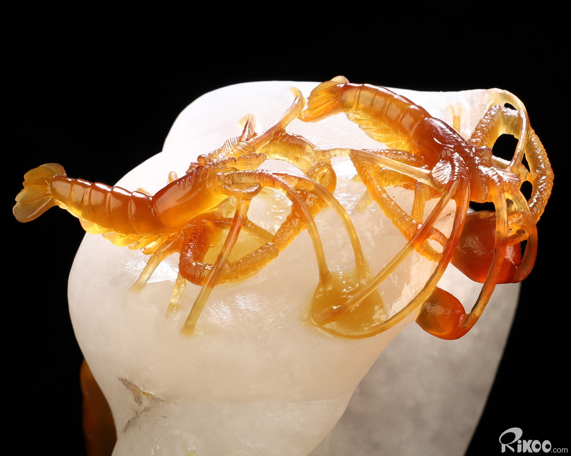 3.7" Carnelian Hand Carved Crystal Shrimps Sculpture, Crystal Healing