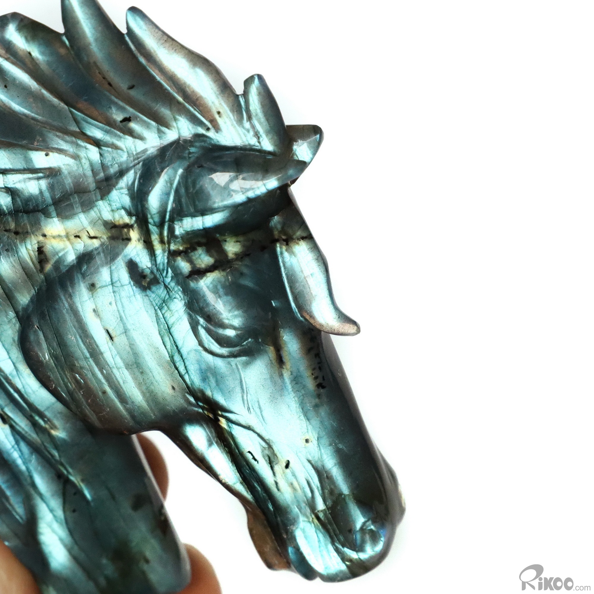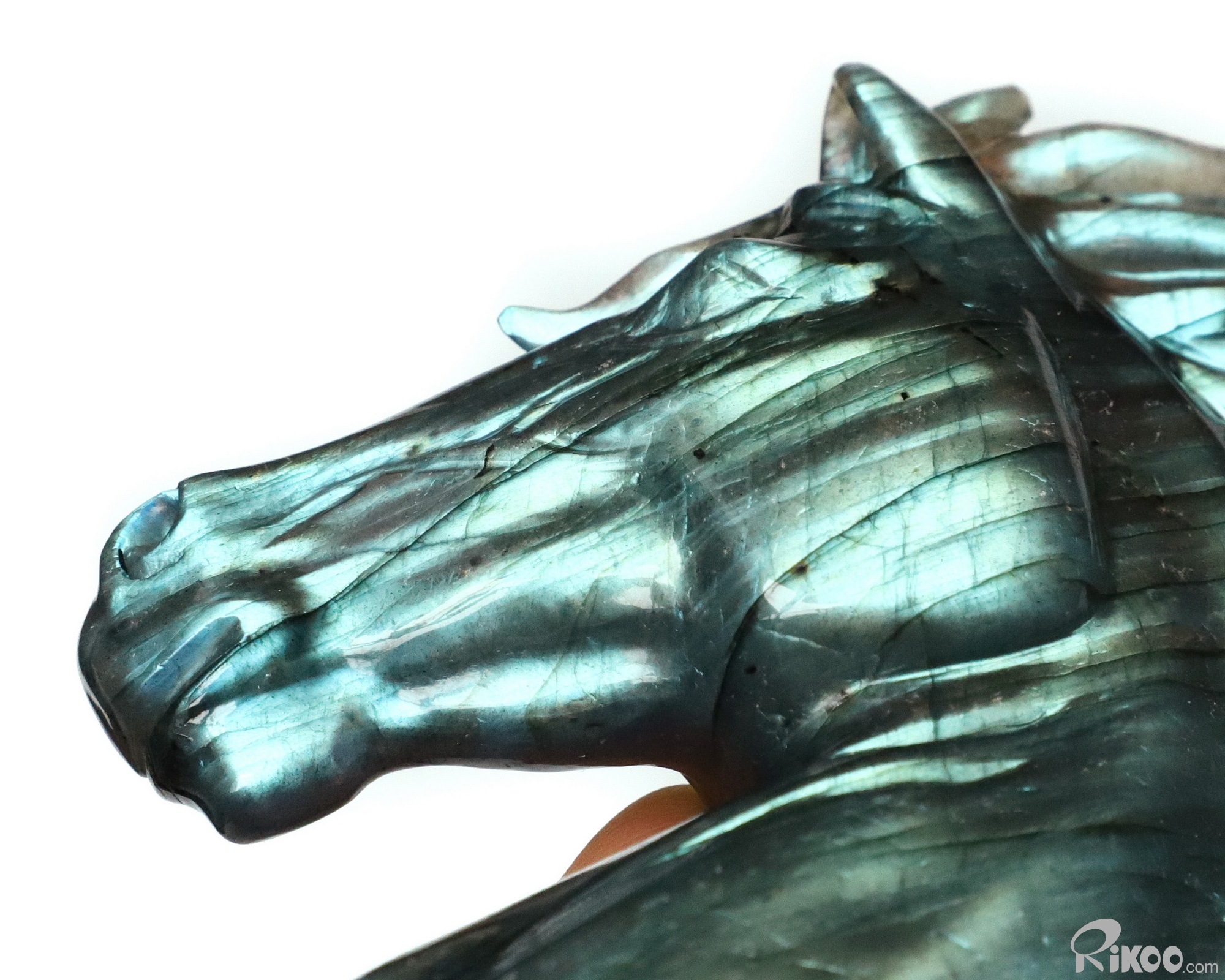 3.7" Flash Labradorite Hand Carved Crystal Horse Sculpture, Crystal Healing