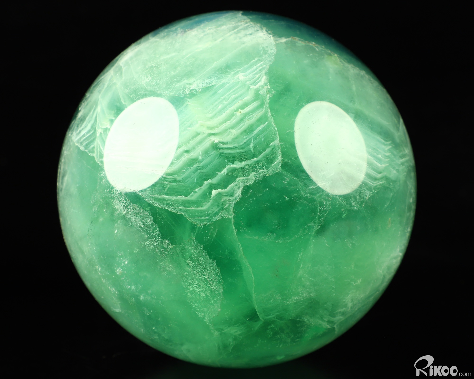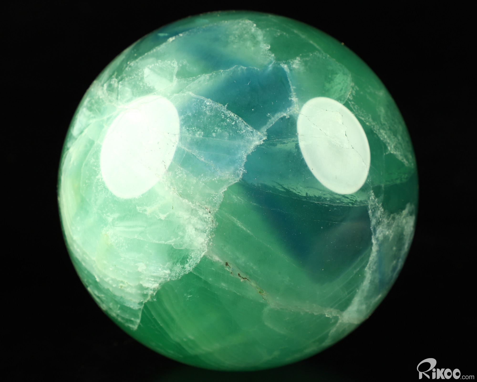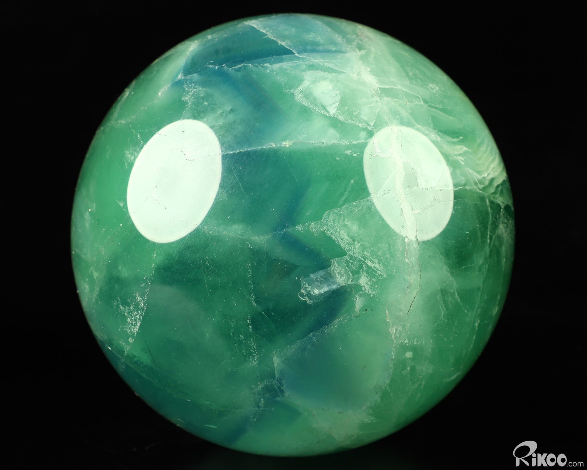 You are looking at a Fluorite Sphere. The sculpture is 3.7 inches long.