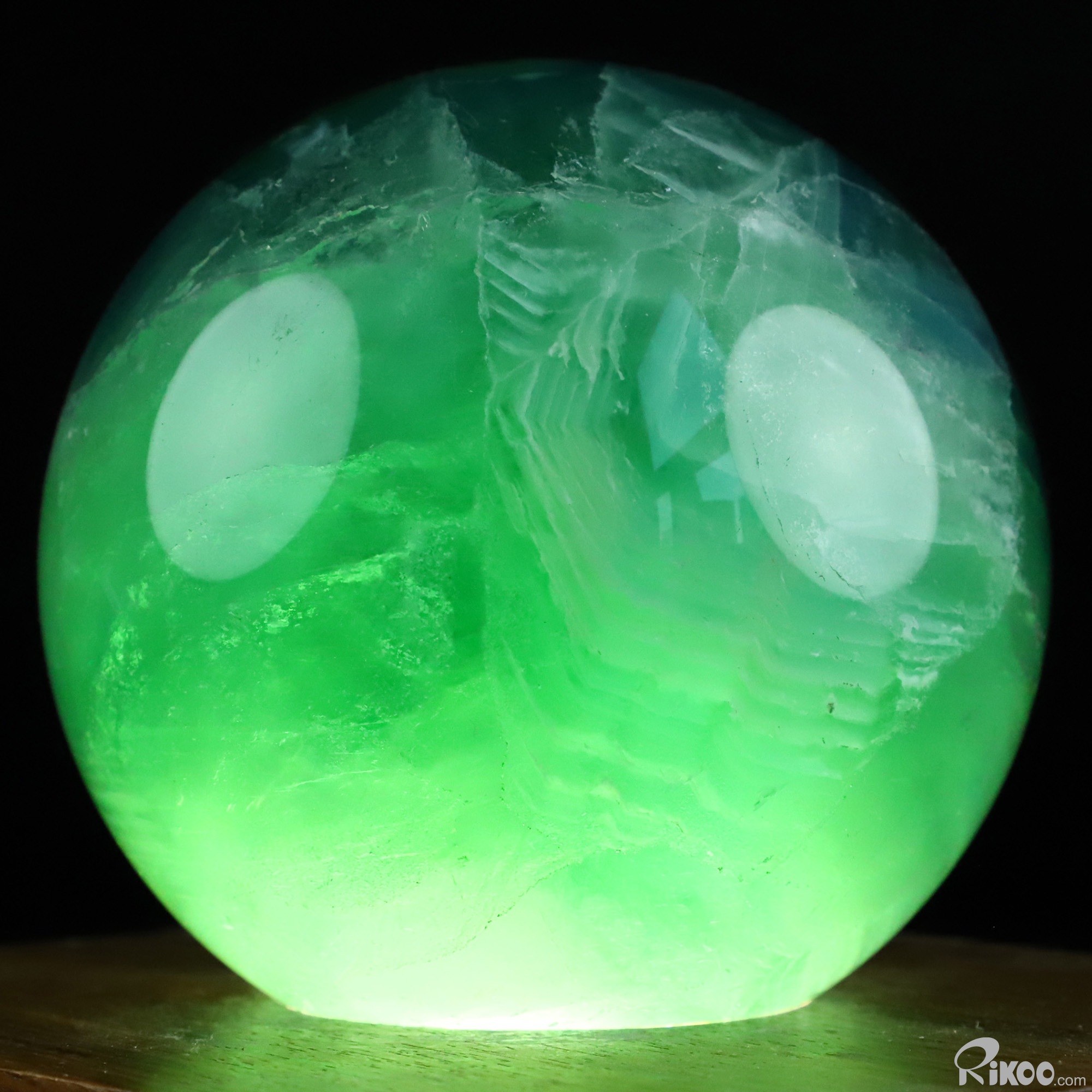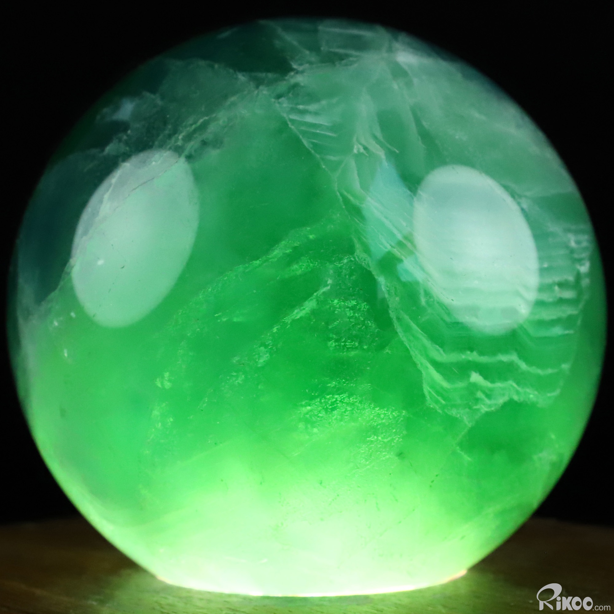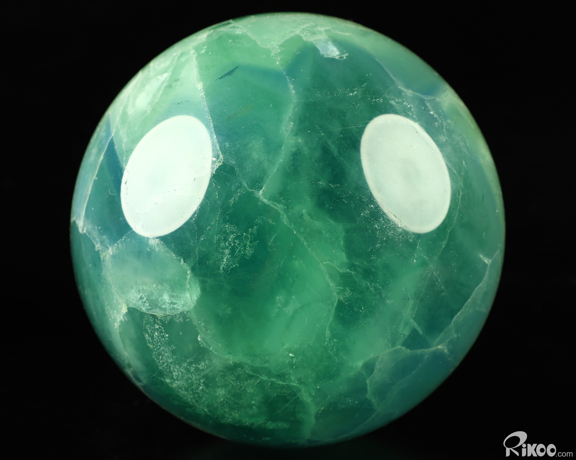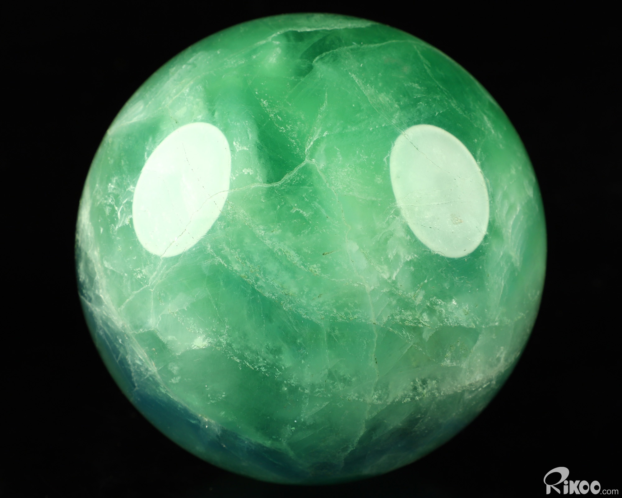 You are looking at a Fluorite Sphere. The sculpture is 3.7 inches long.