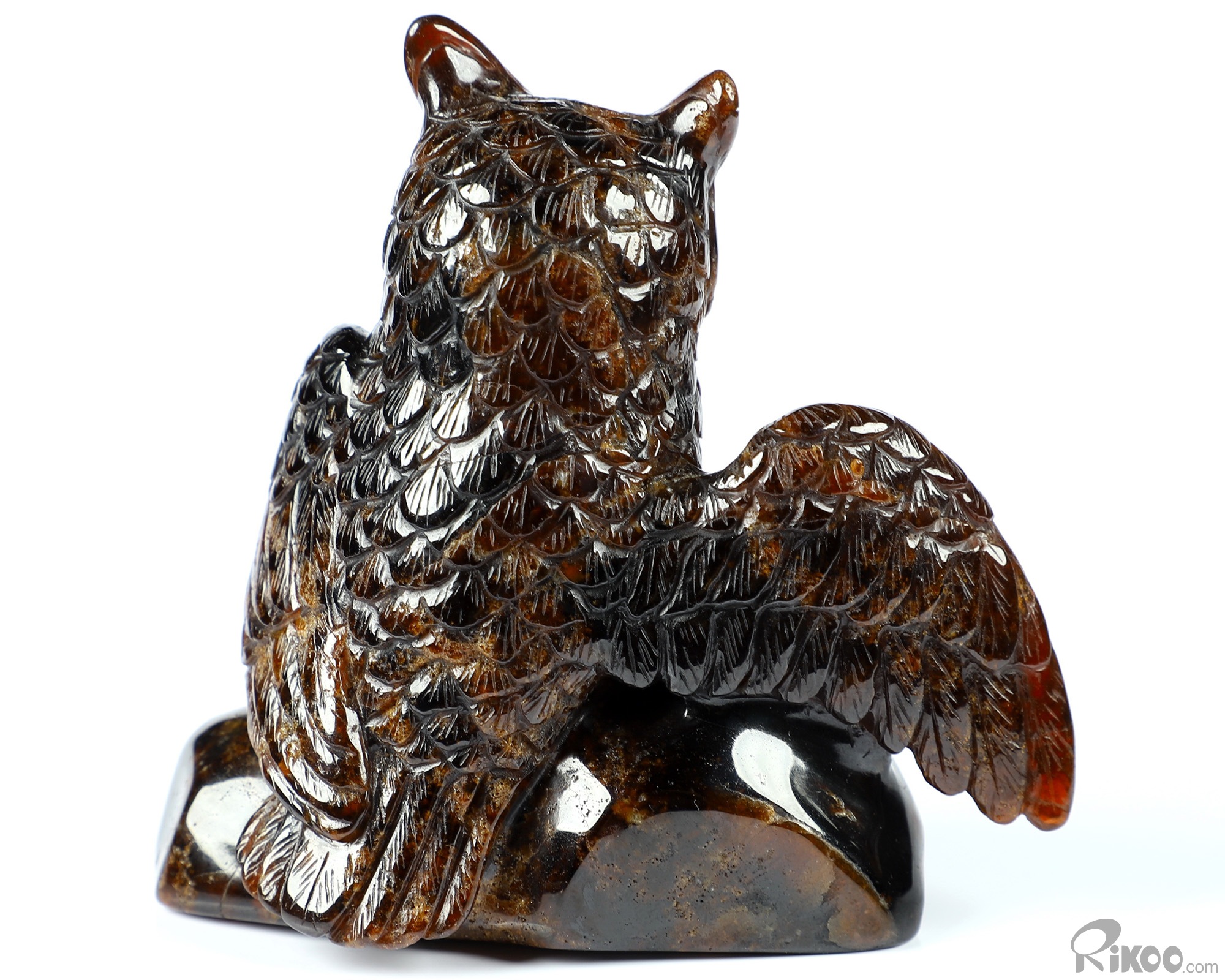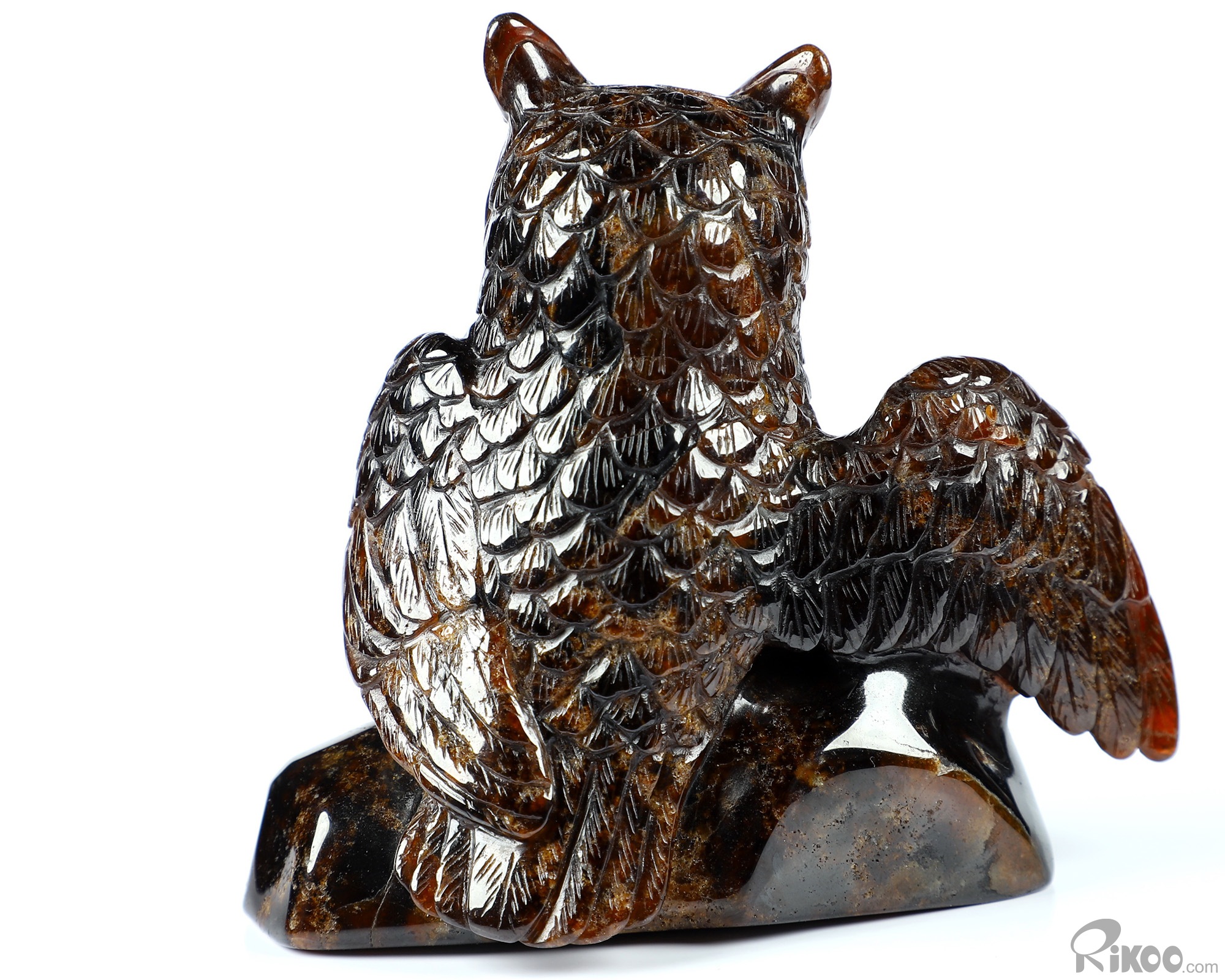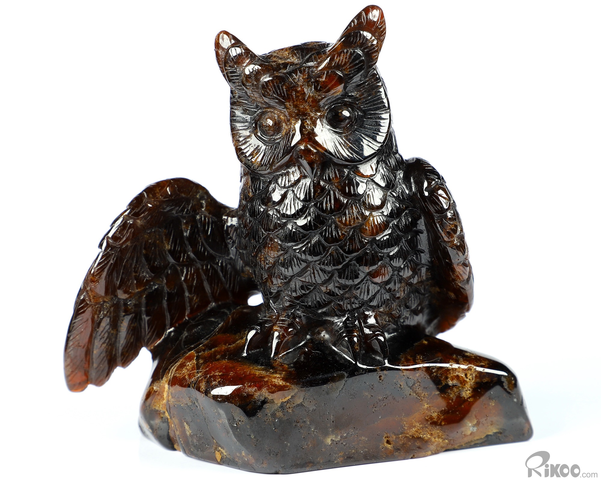 Gemstone 3.7" Garnet Carved Crystal Owl Sculpture, Realistic