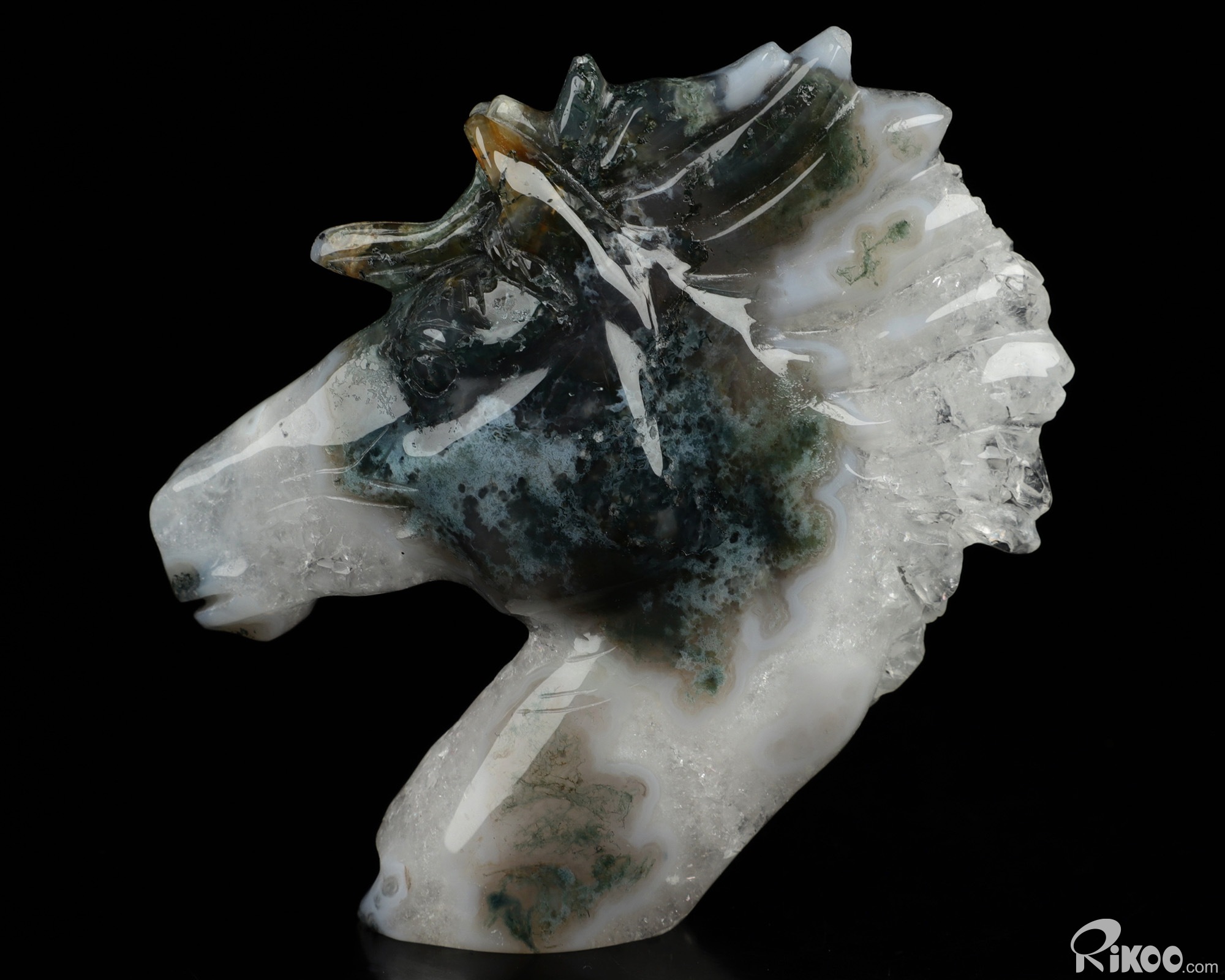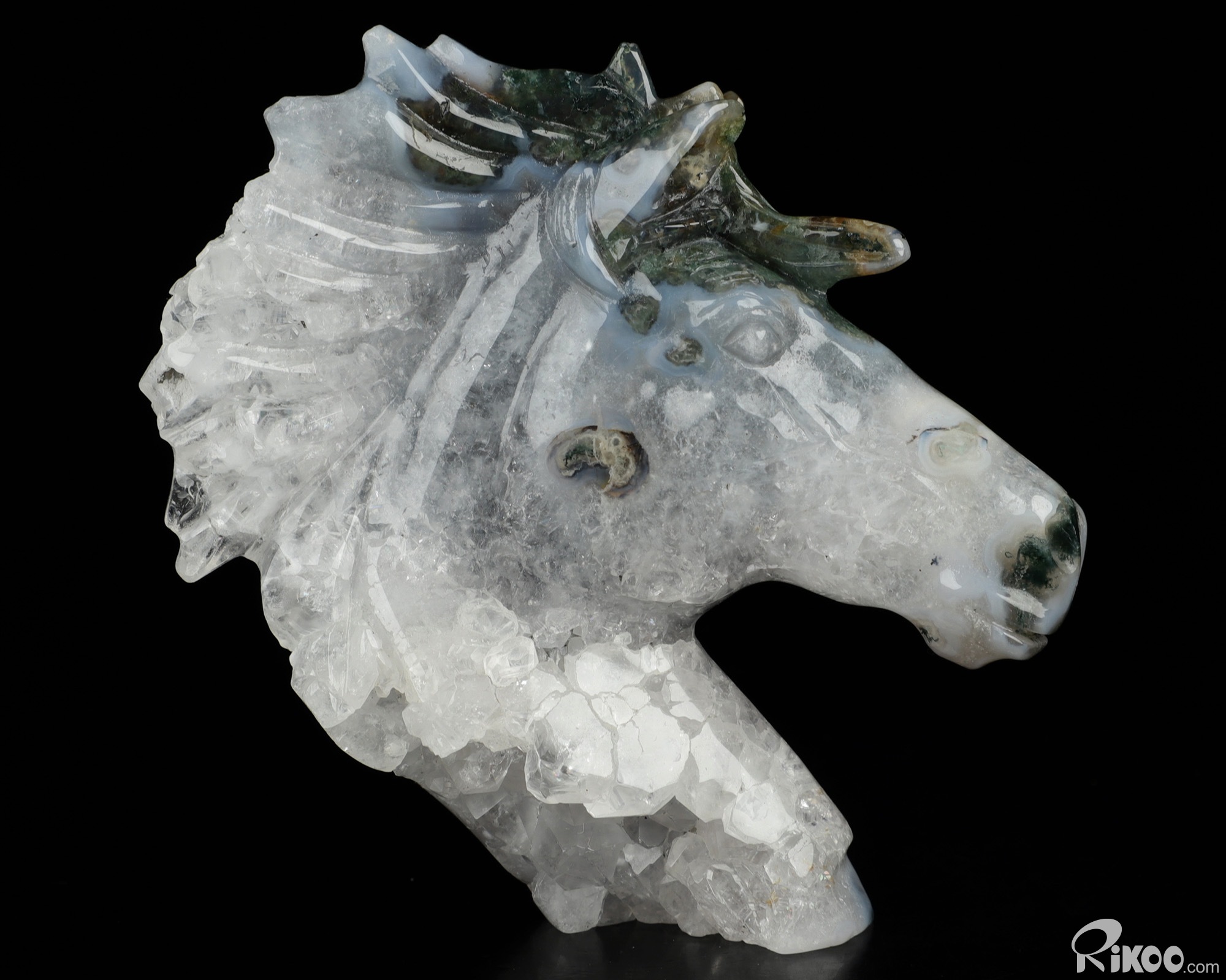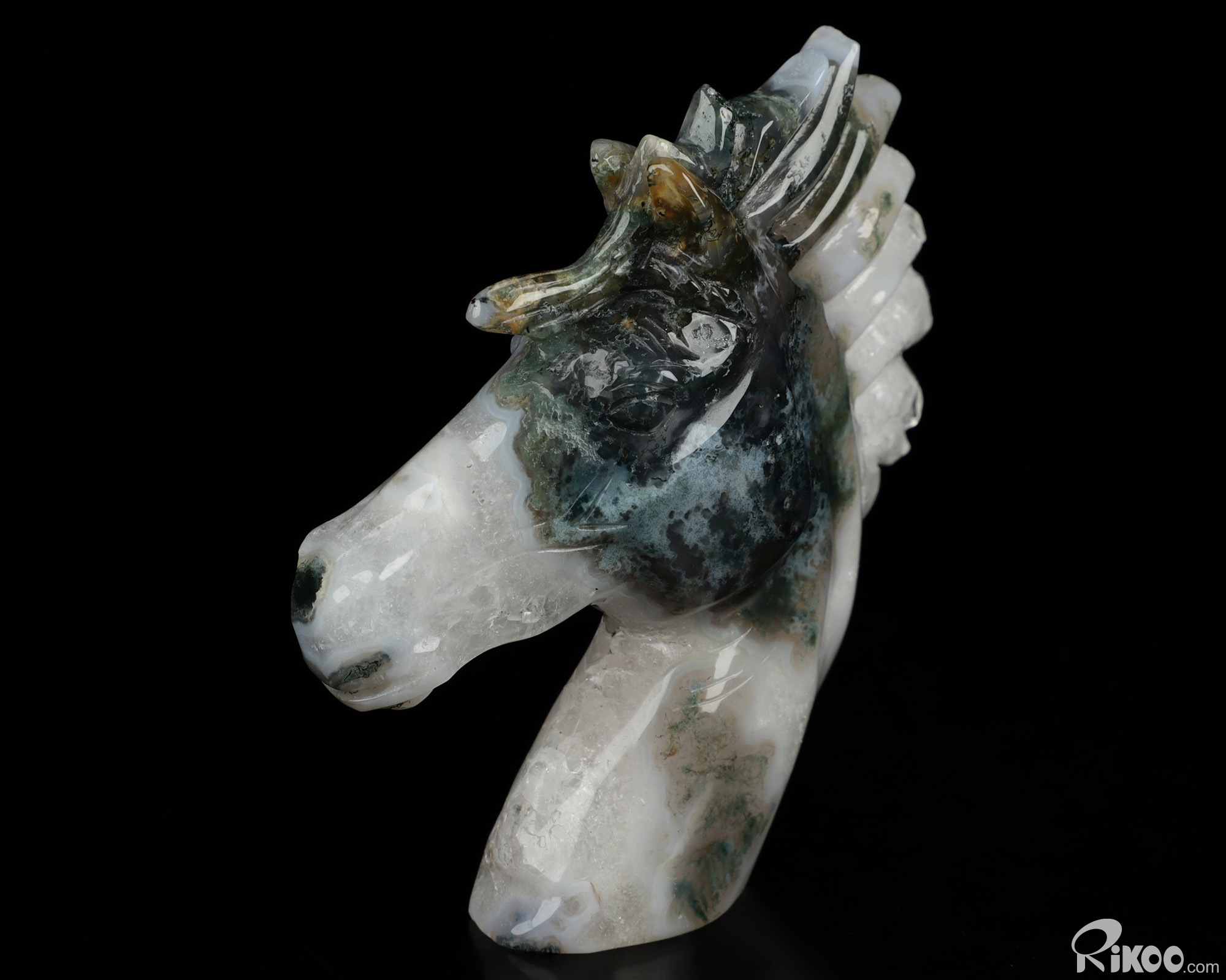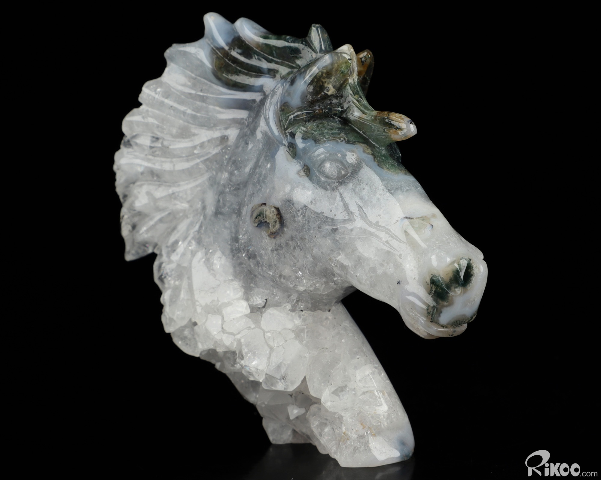 3.7" Green Moss Agate Geode Hand Carved Crystal Horse Sculpture, Crystal Healing