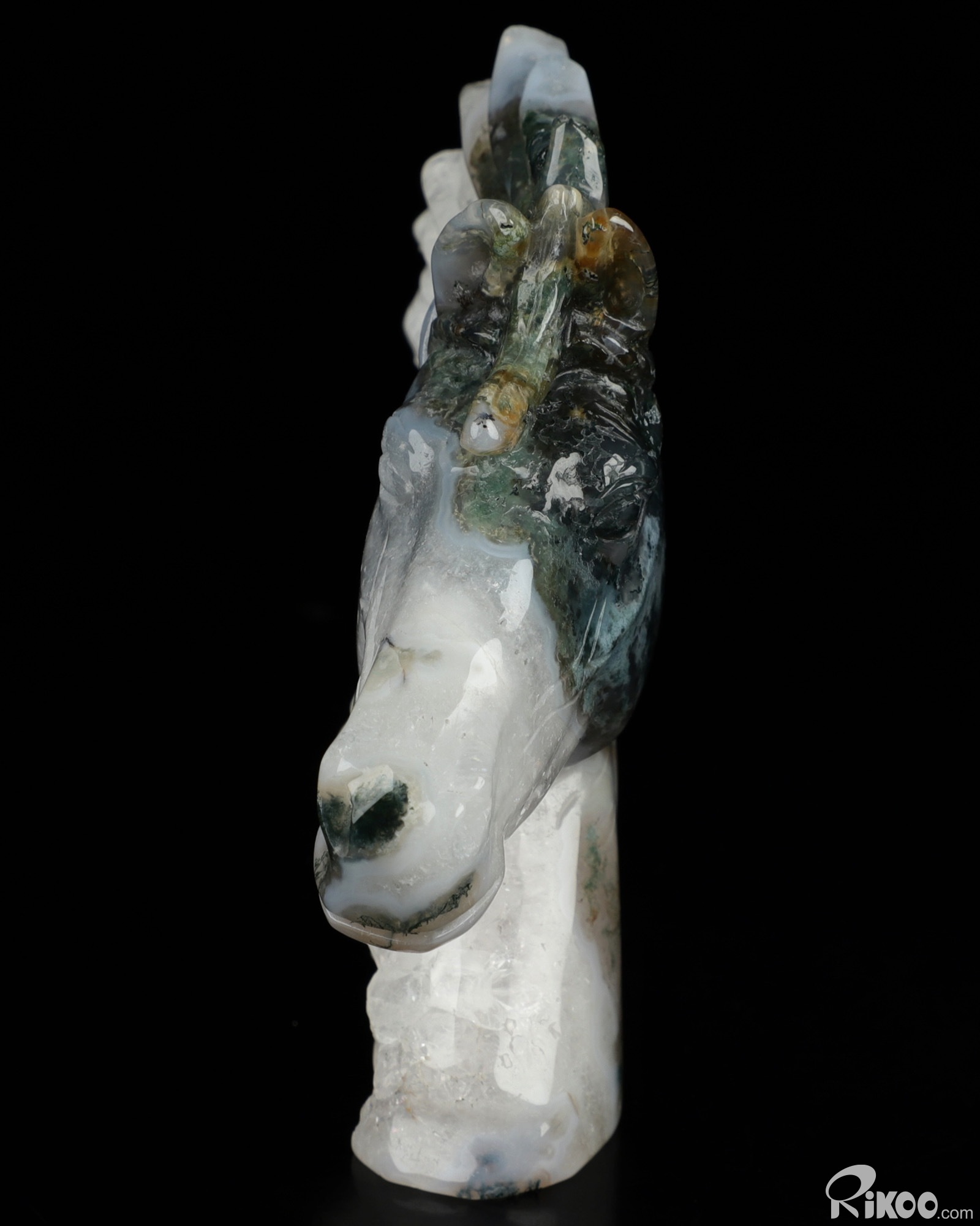 You are looking at a Green Moss Agate sculpture. The sculpture is 3.7 inches long.