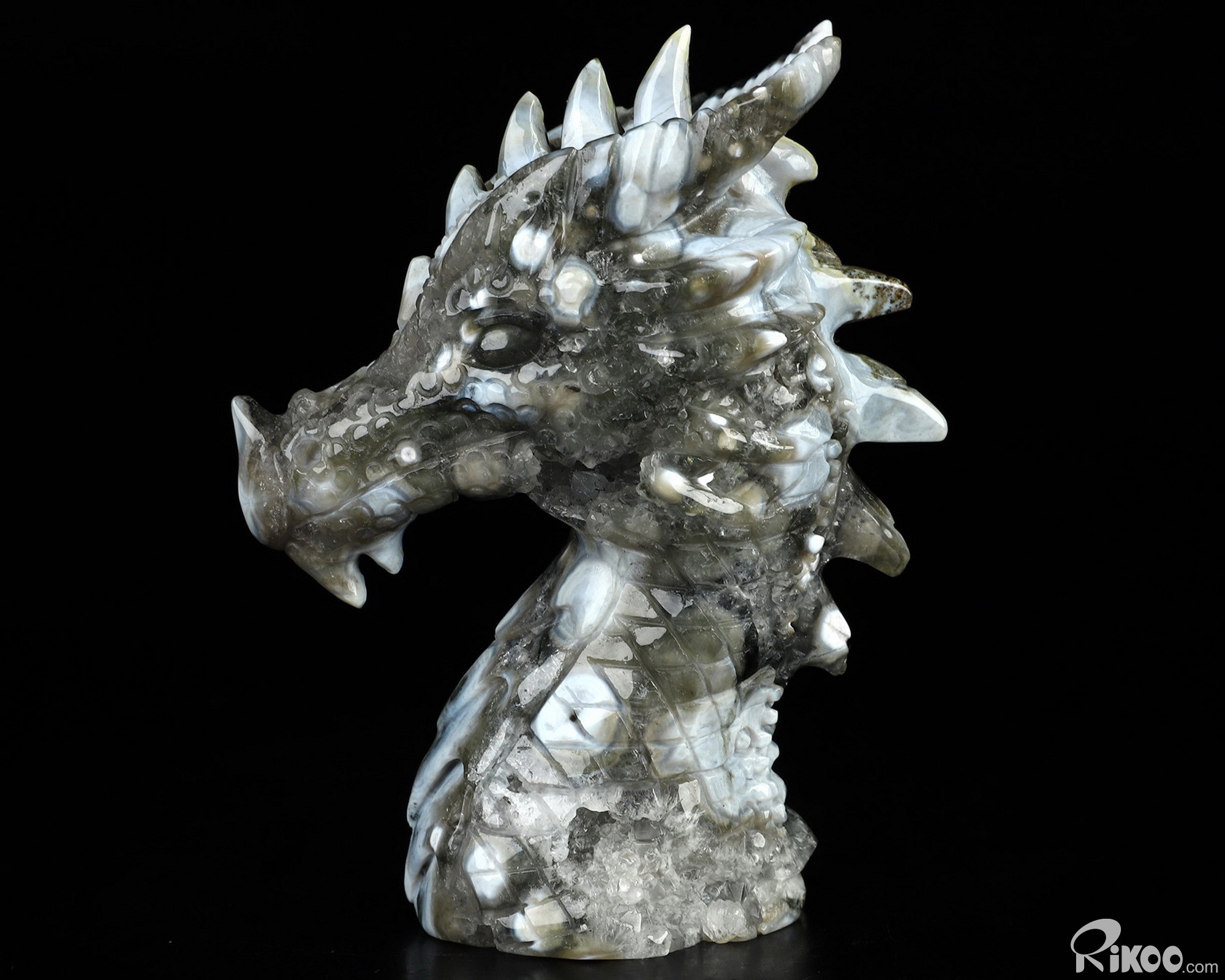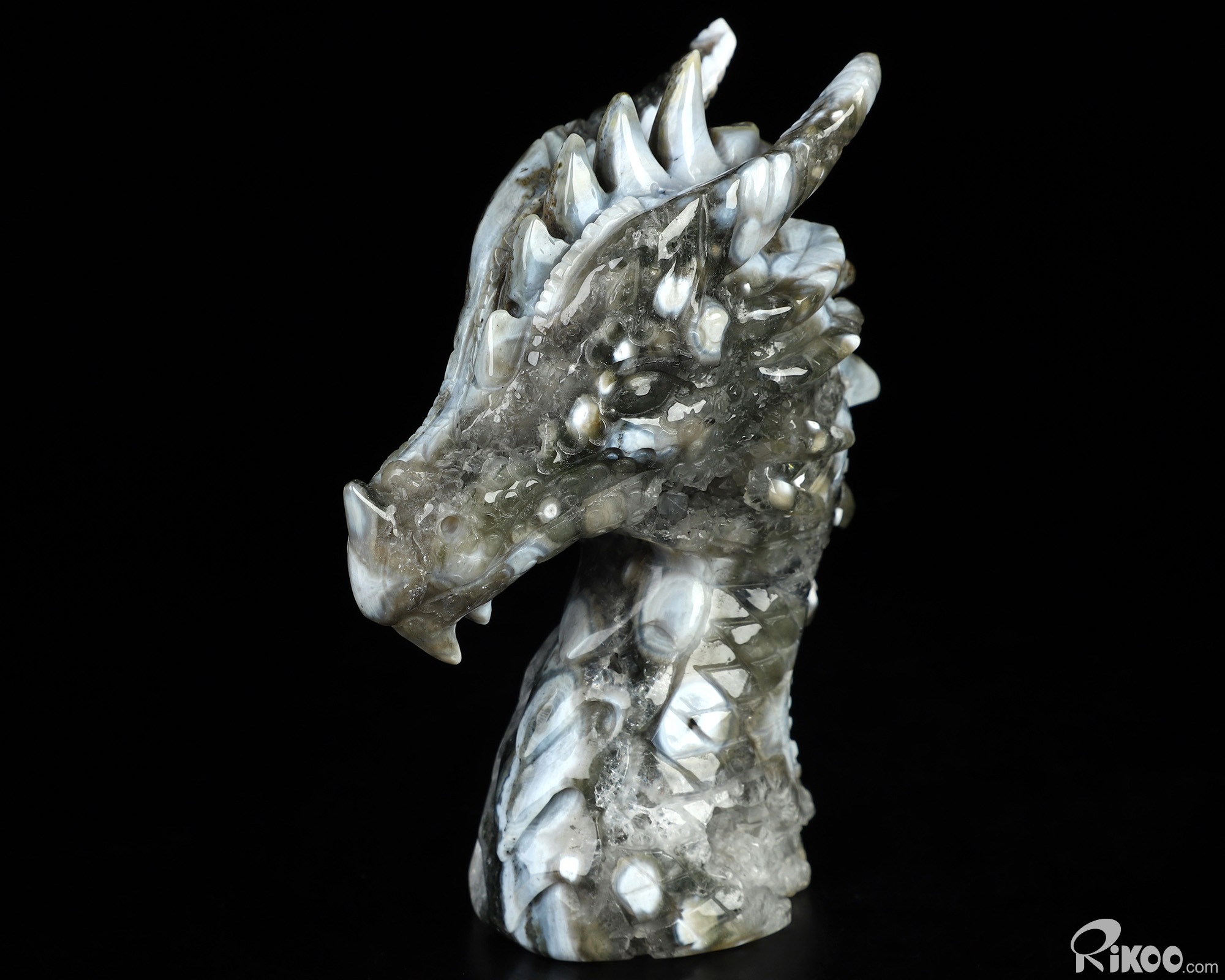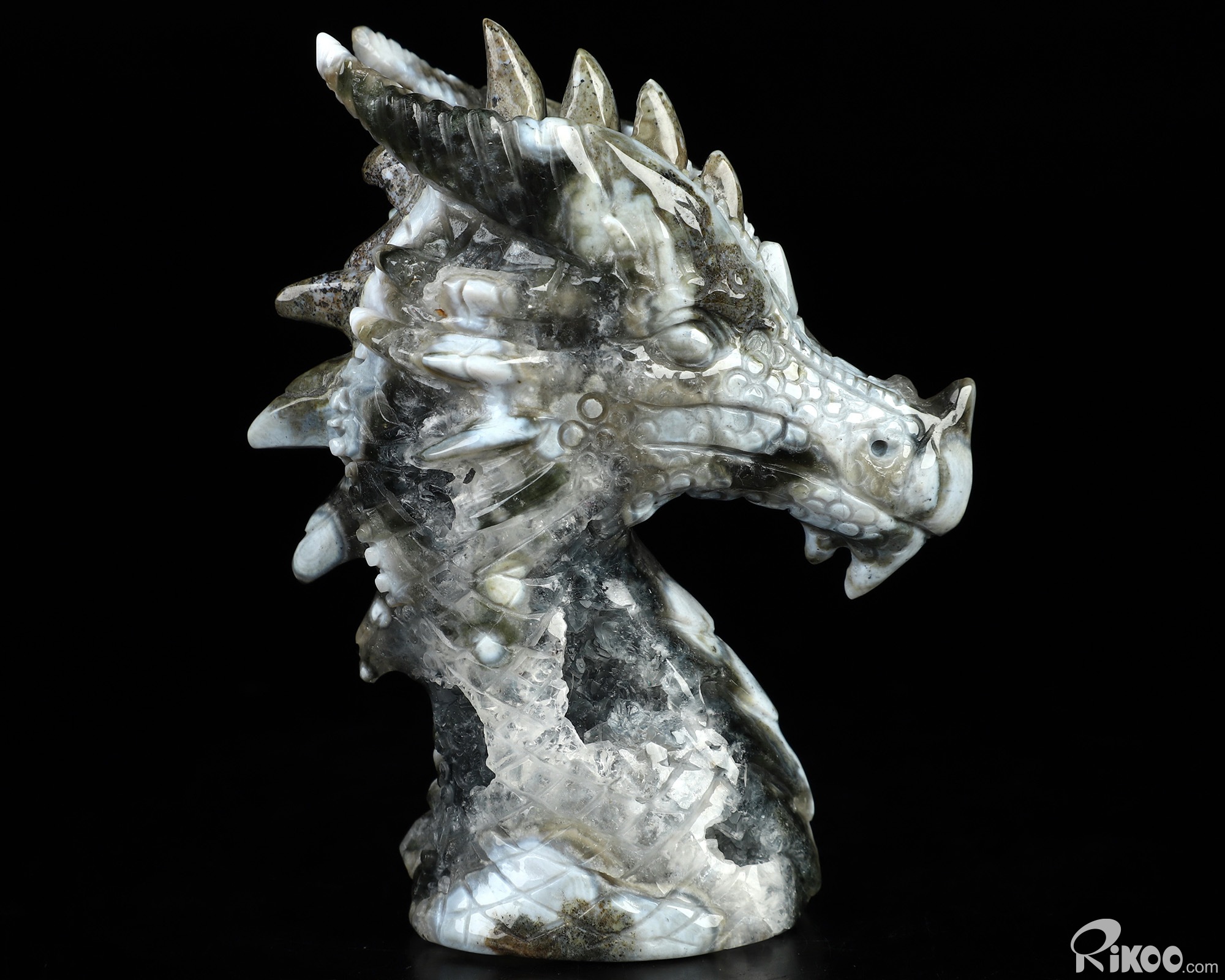3.7" Ocean Jasper Hand Carved Crystal Dragon Sculpture, Crystal Healing