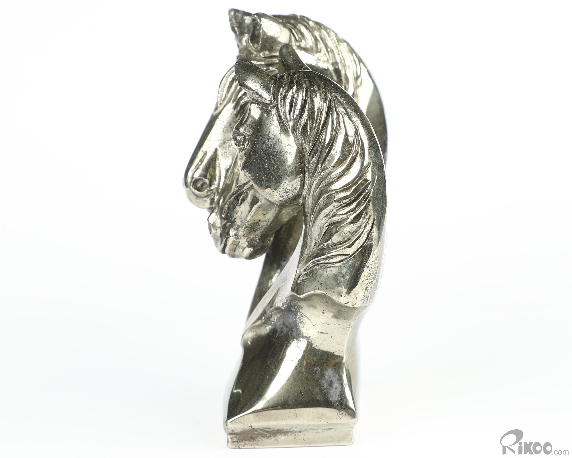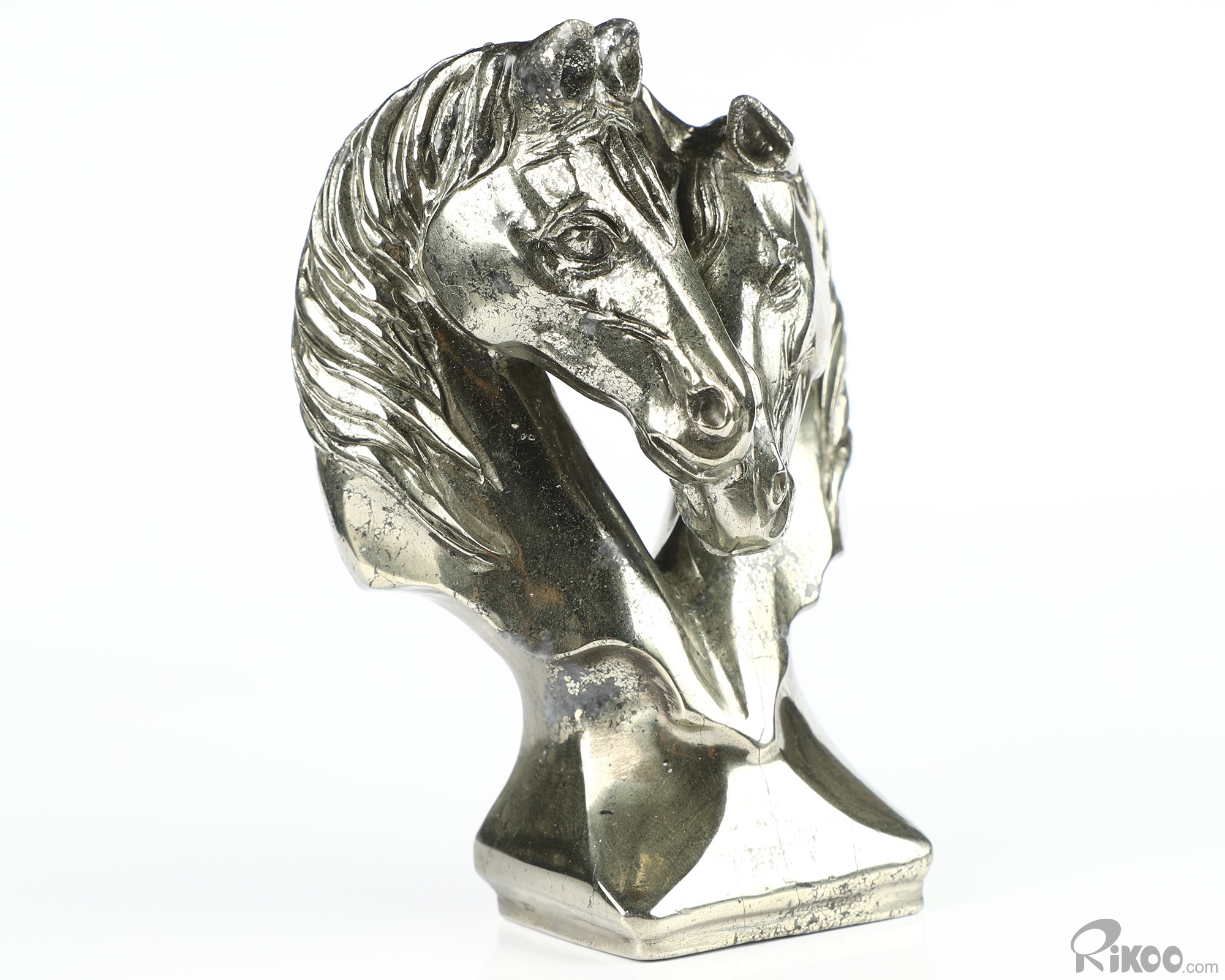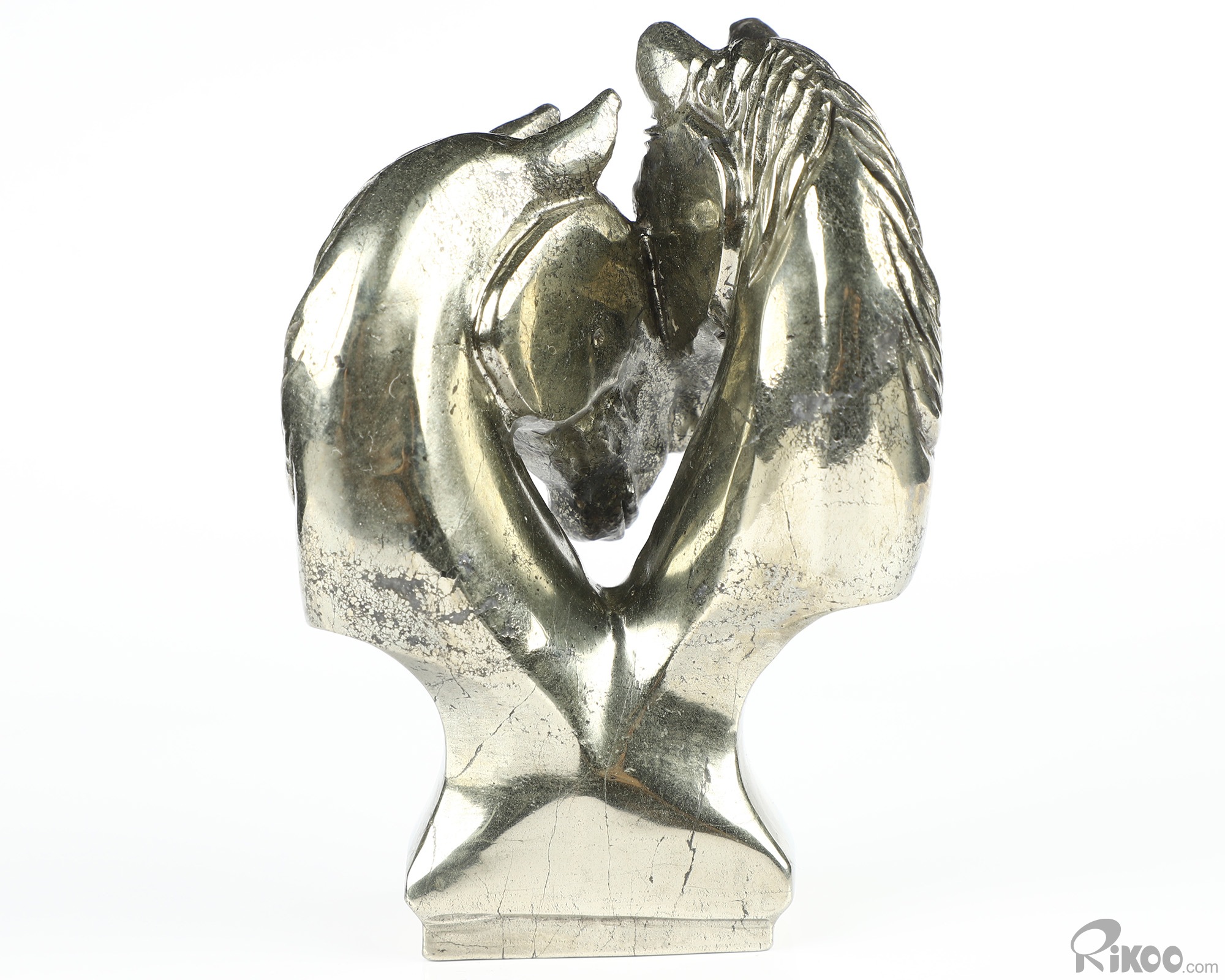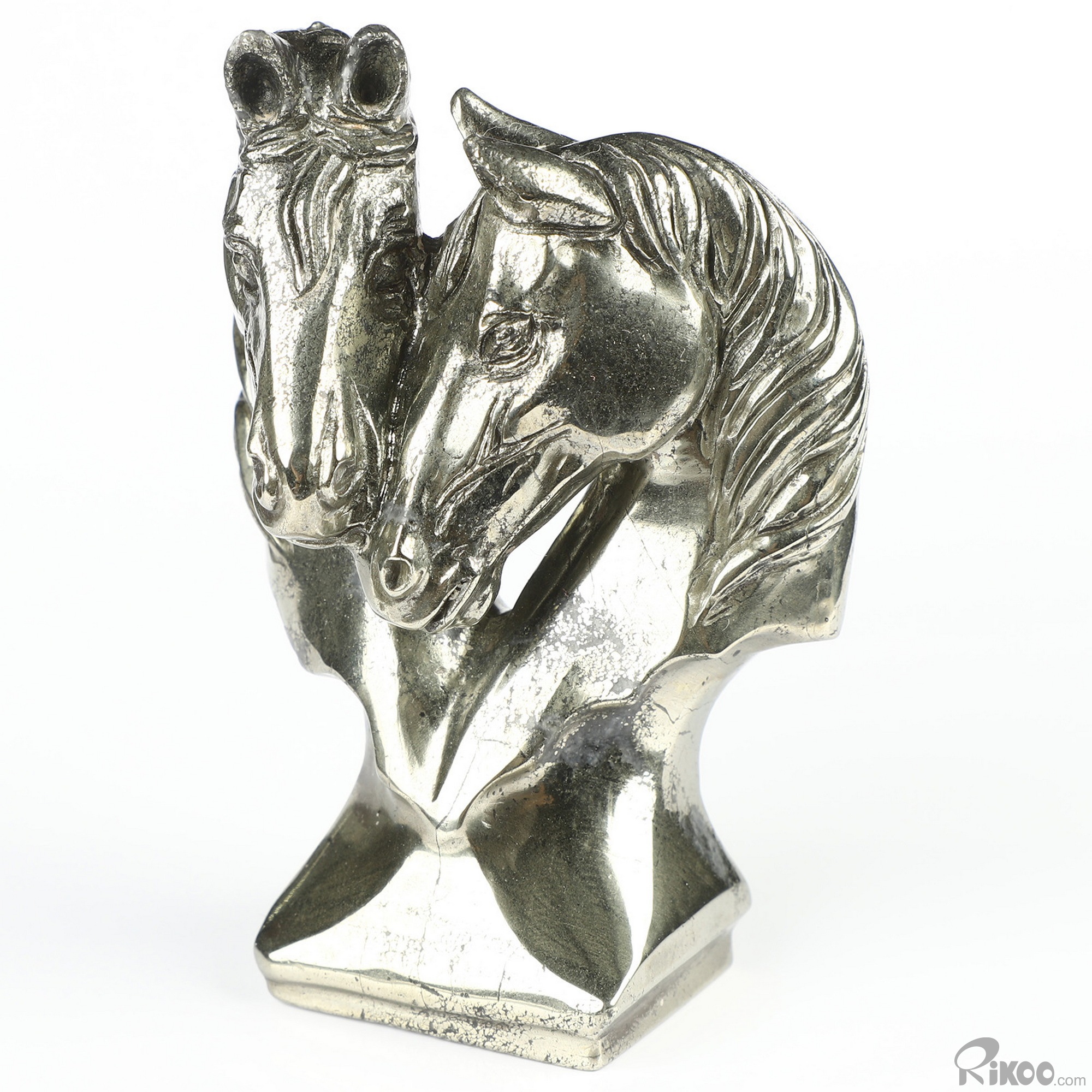 3.7" Pyrite Hand Carved Crystal Double Horses Sculpture, Crystal Healing