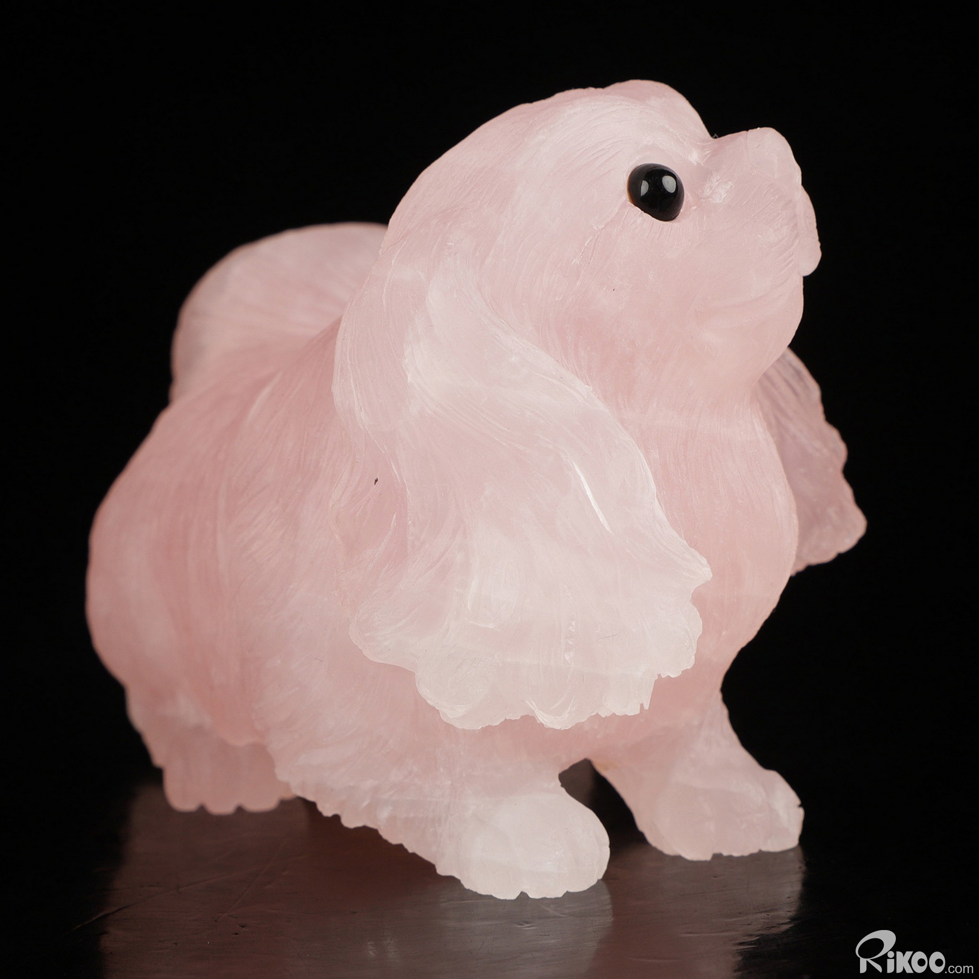 3.7" Rose Quartz Hand Carved Crystal Dog Sculpture, Crystal Healing