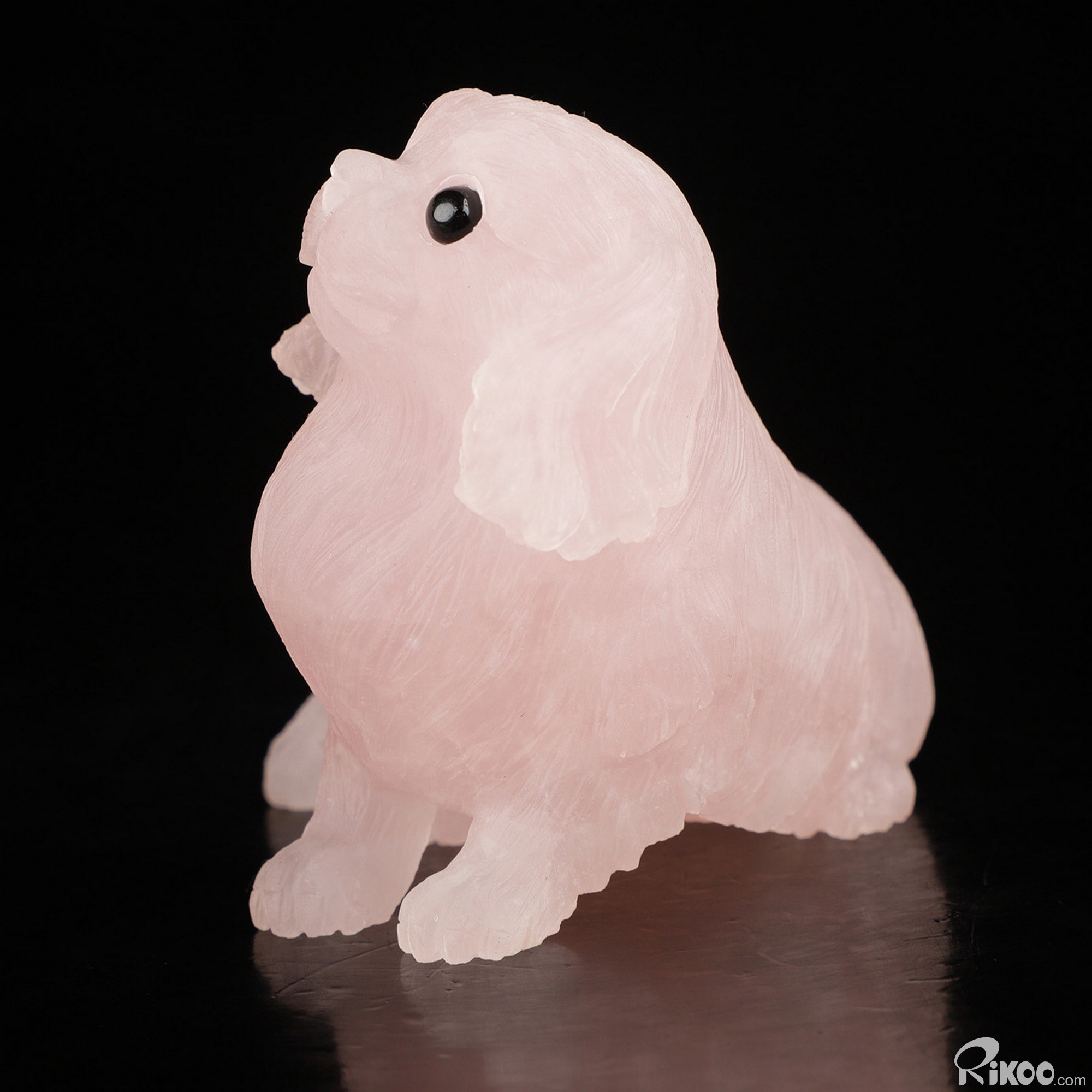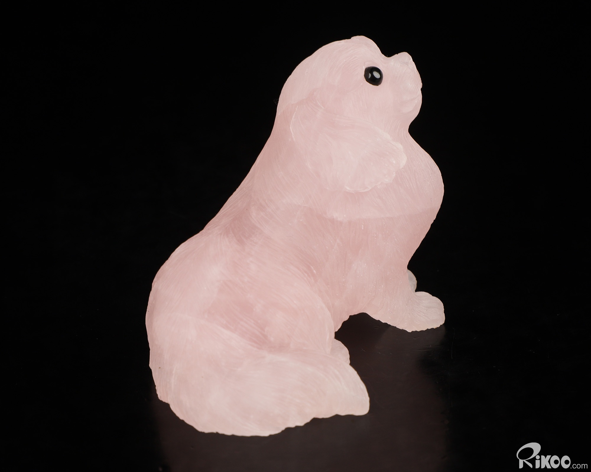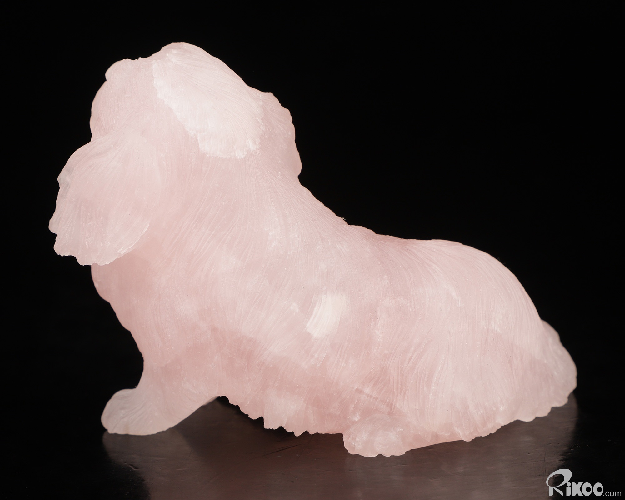 3.7" Rose Quartz Hand Carved Crystal Dog Sculpture, Crystal Healing