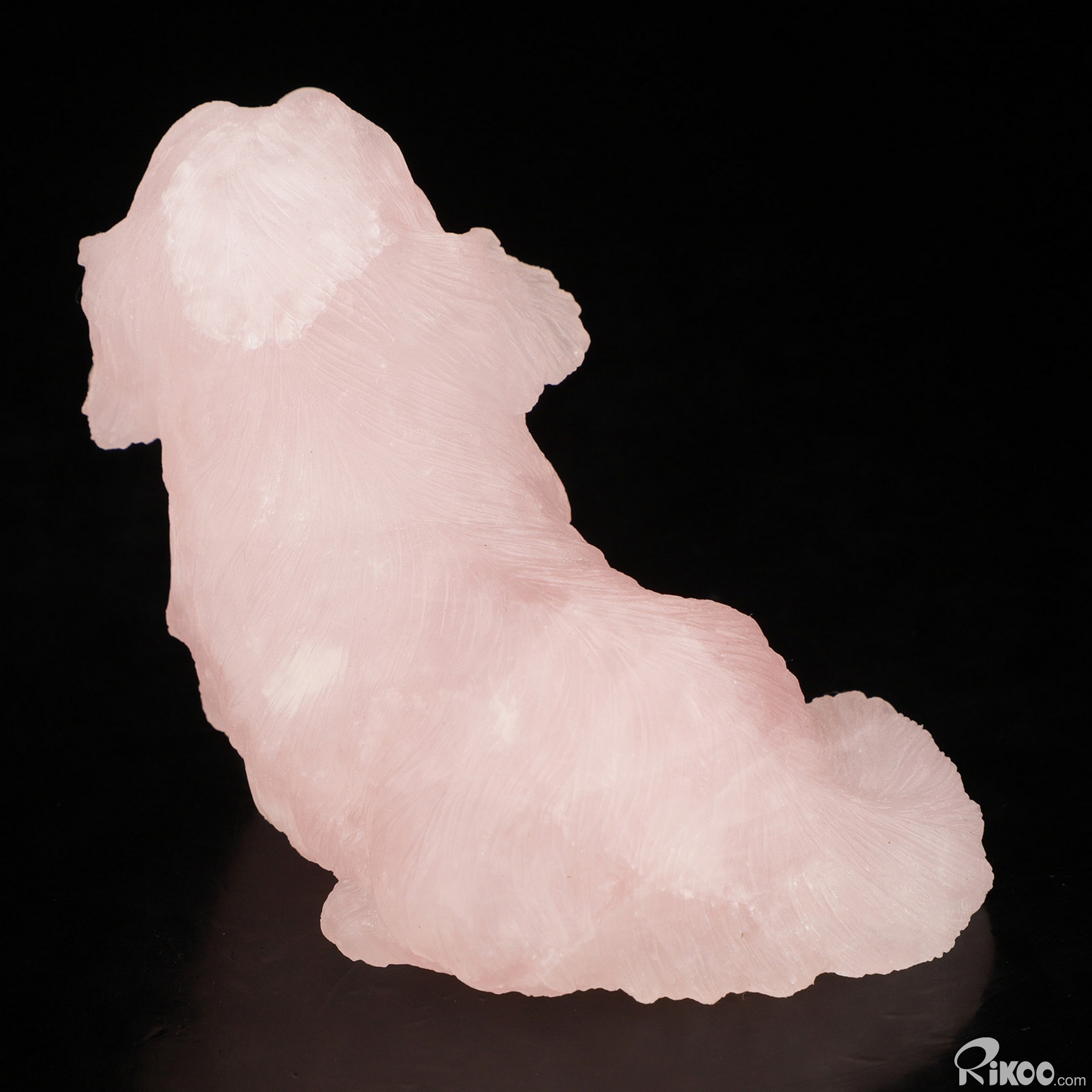 You are looking at a Rose Quartz sculpture. The sculpture is 3.7 inches long.