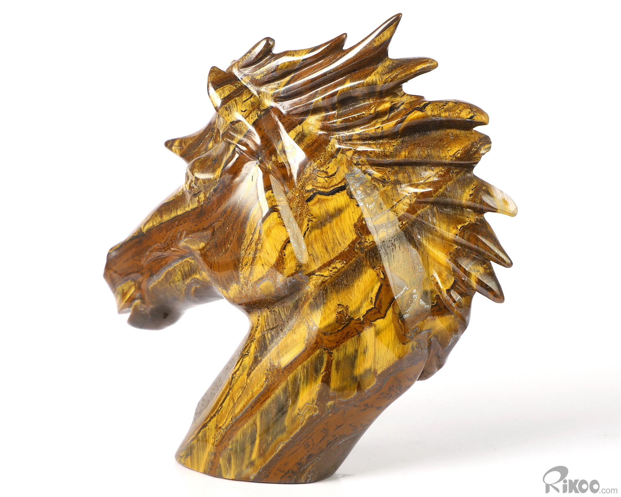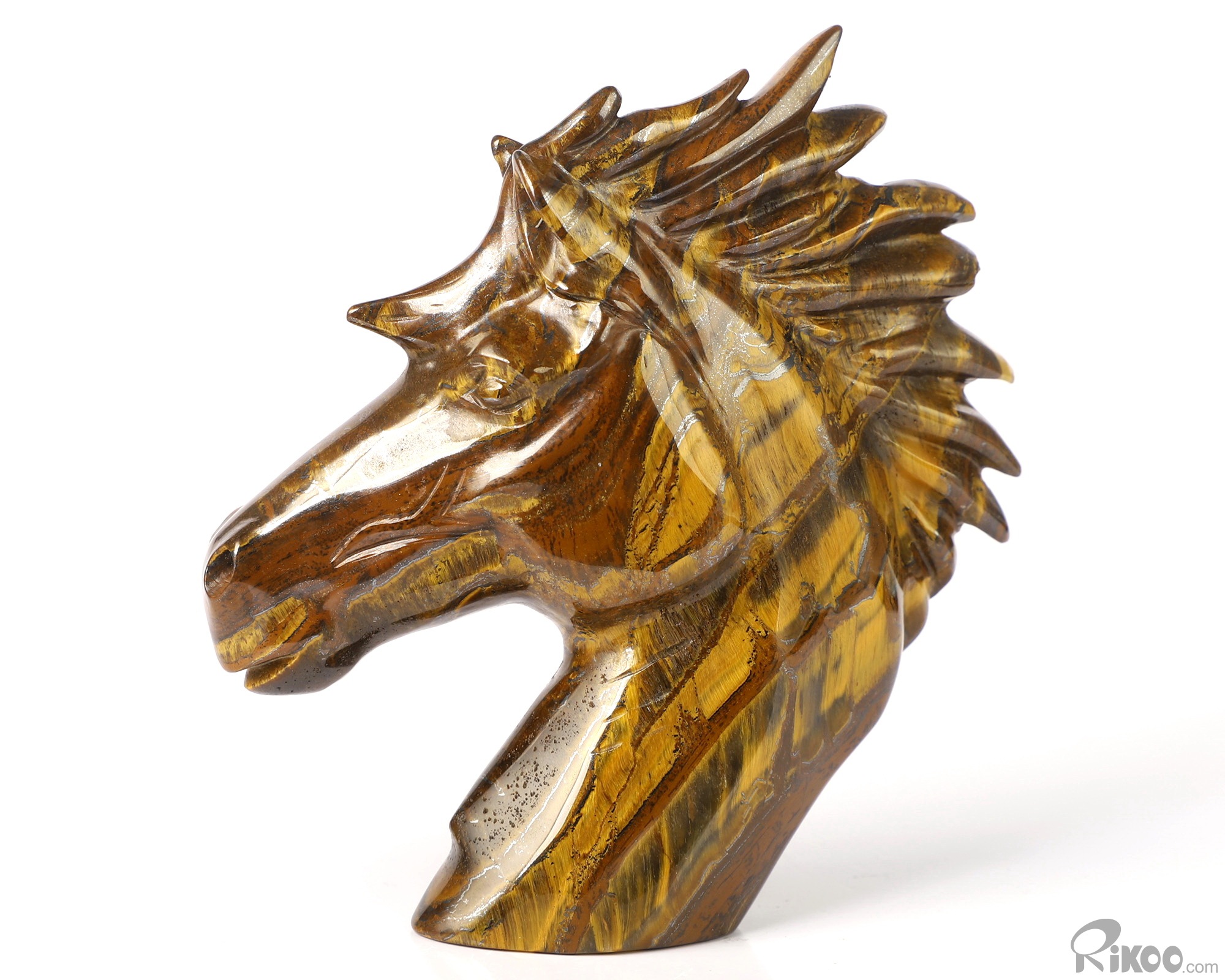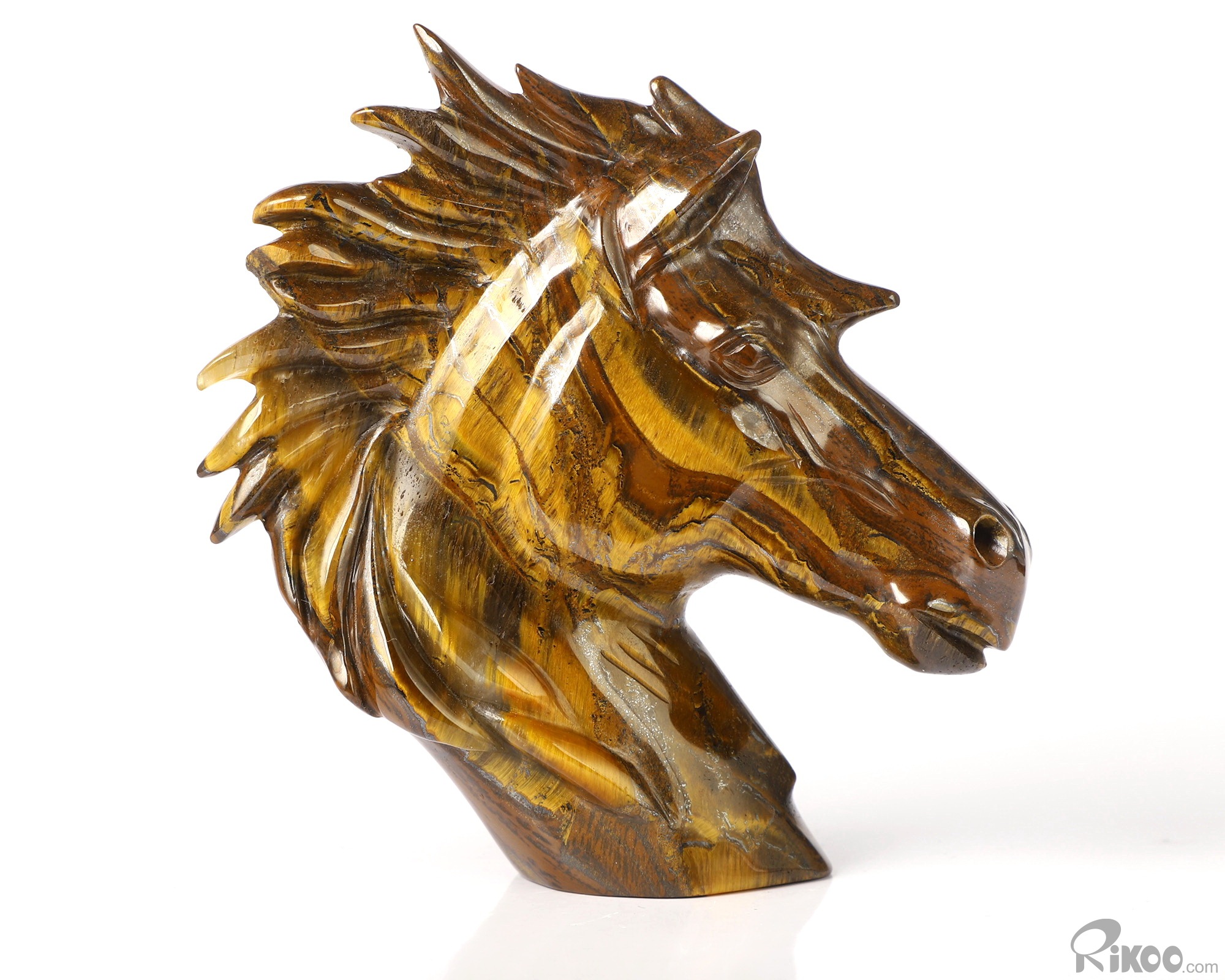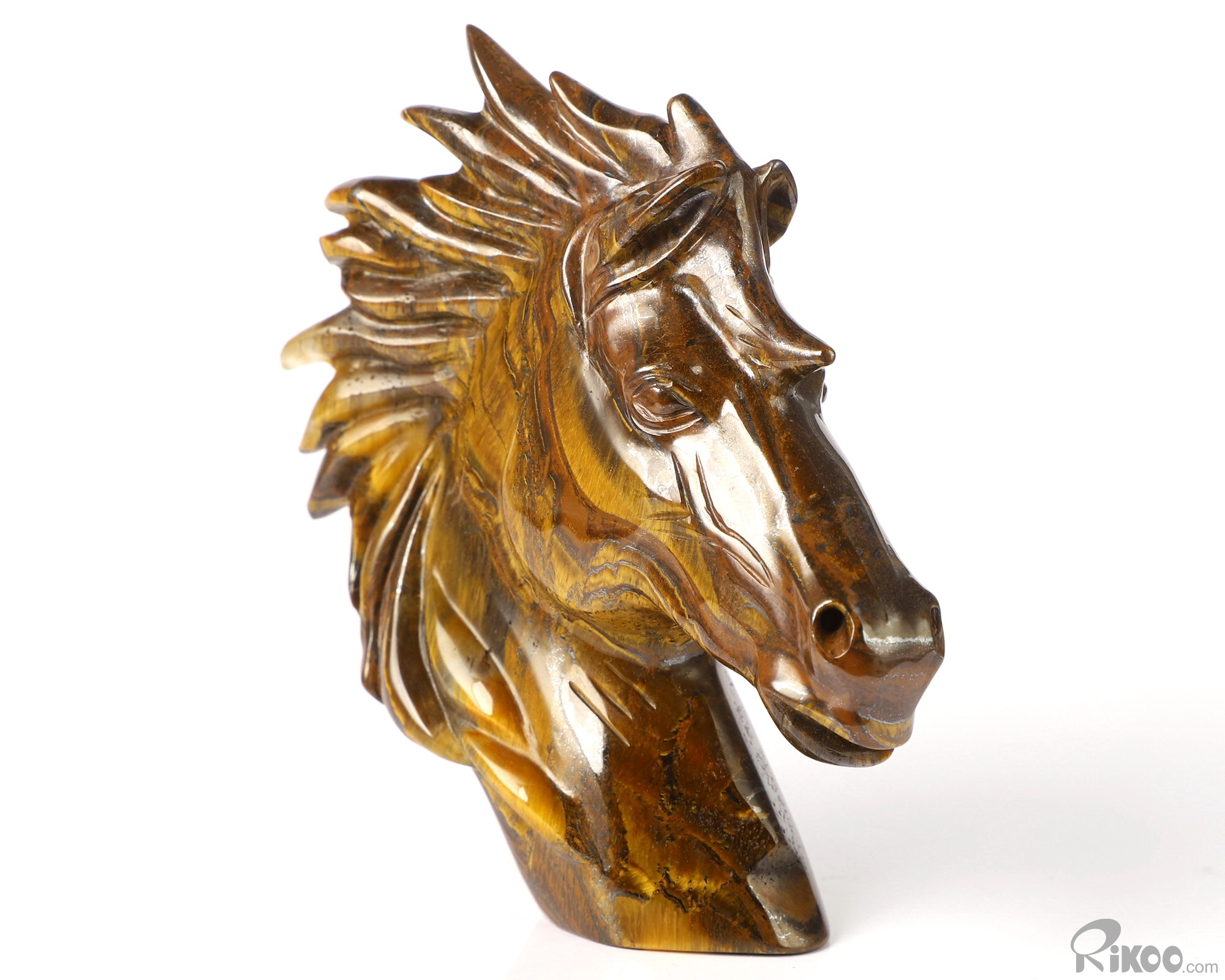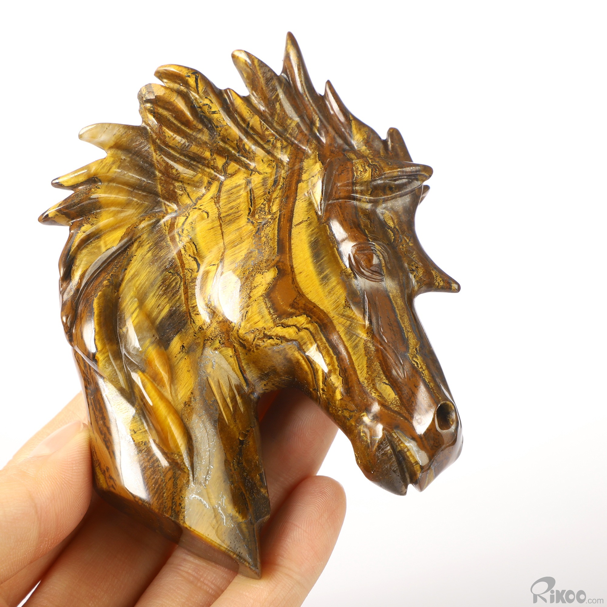 3.7" Tiger Iron Eye Hand Carved Crystal Horse Sculpture, Crystal Healing