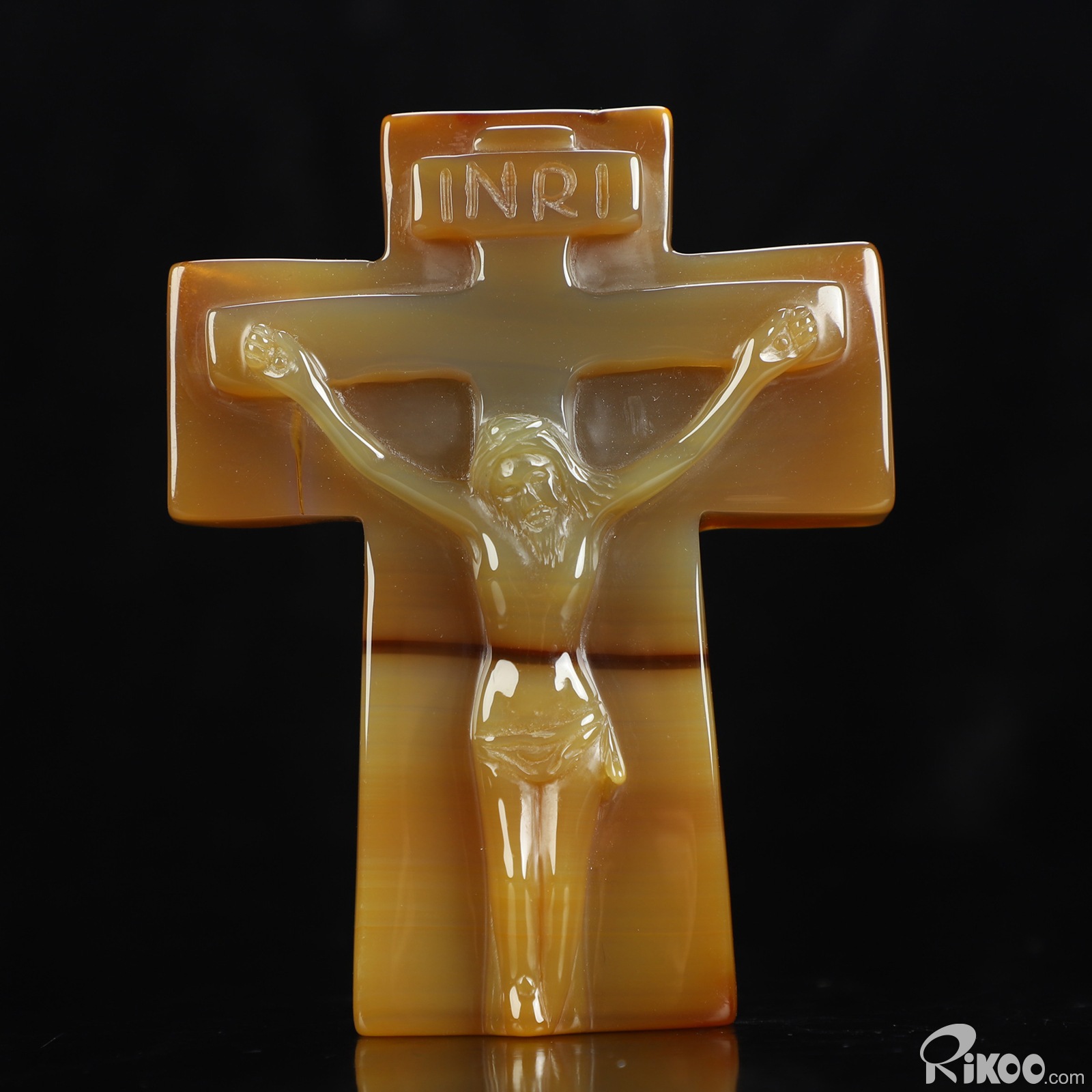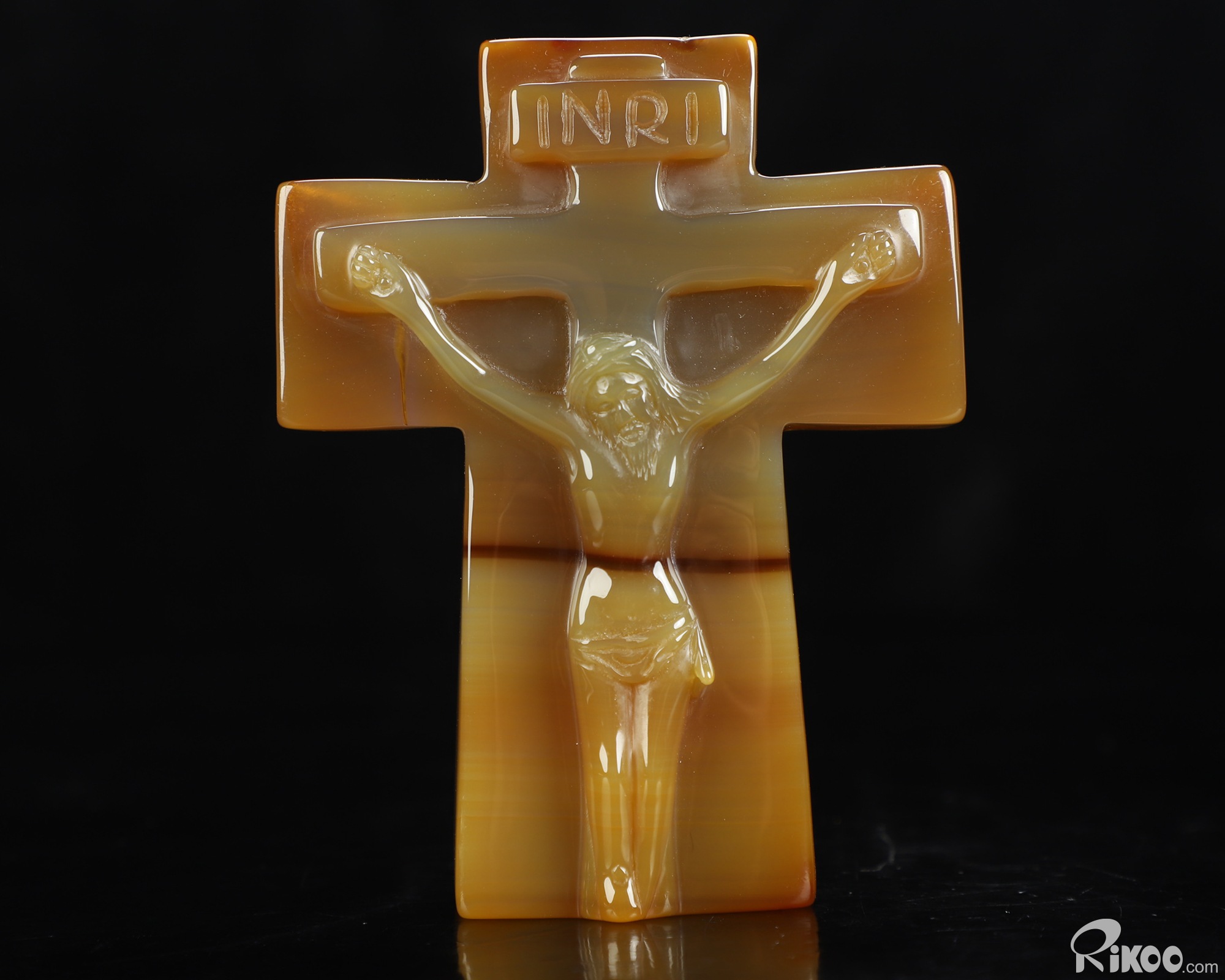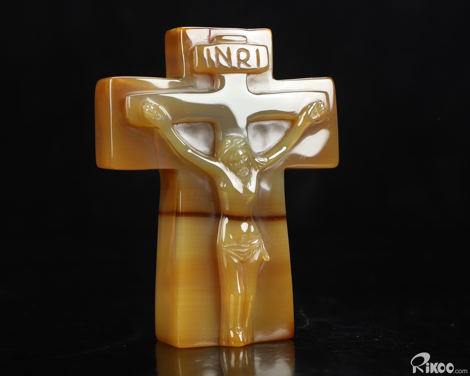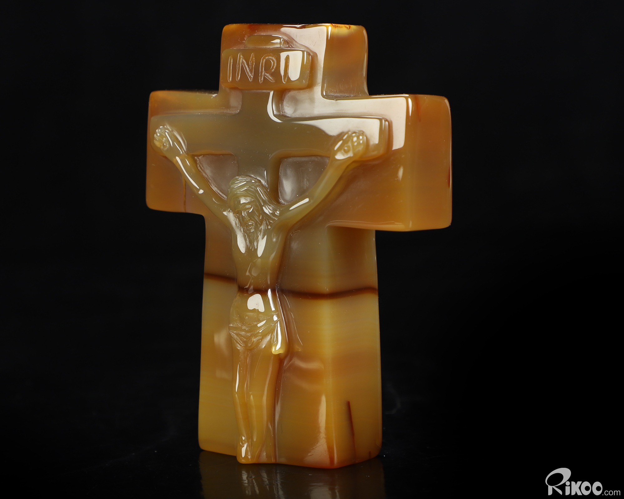 You are looking at an Agate Jesus Cross sculpture. The sculpture is 3.8 inches long.