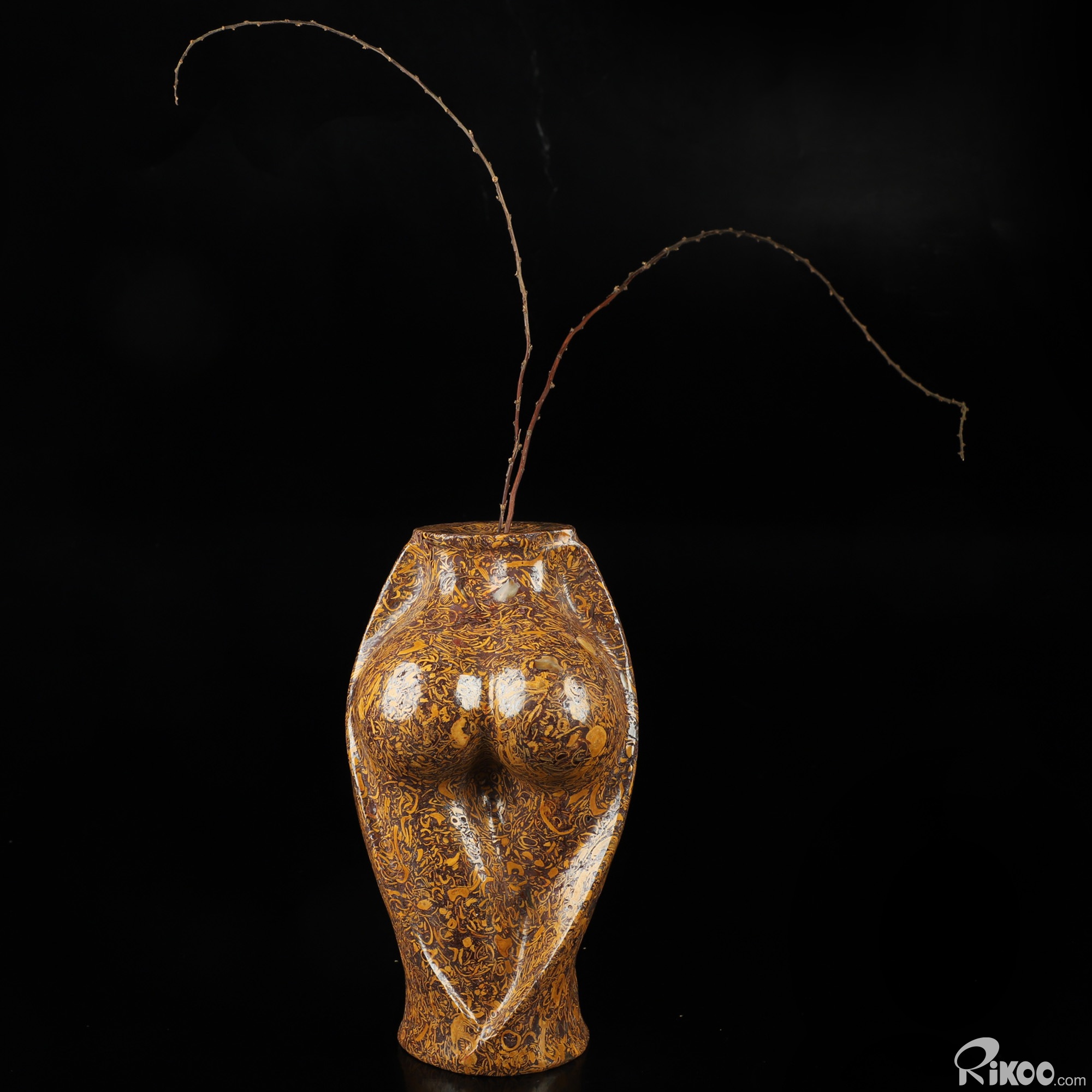 3.8" Elephant Skin Jasper Hand Carved Crystal Vase Sculpture, Crystal Healing