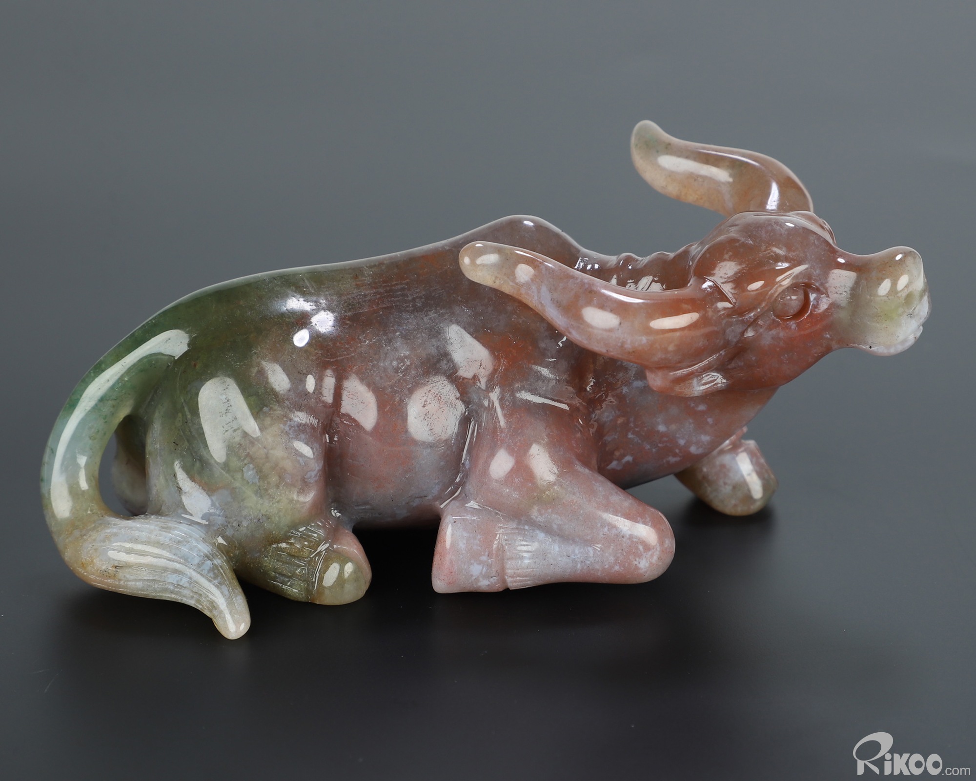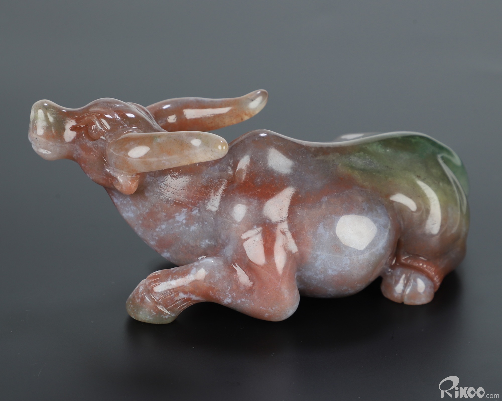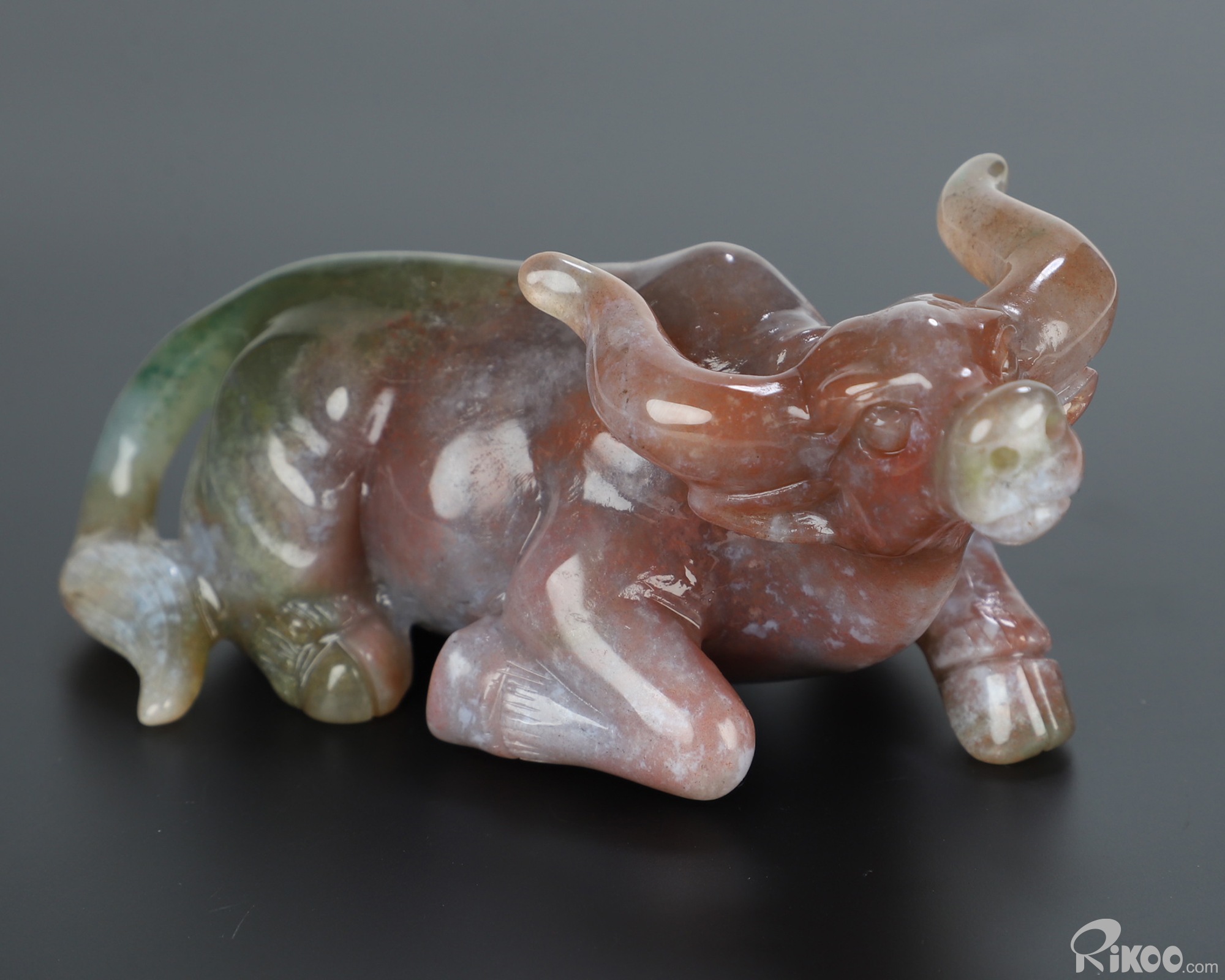 3.8" Indian Agate Hand Carved Crystal Bull Sculpture, Crystal Healing
