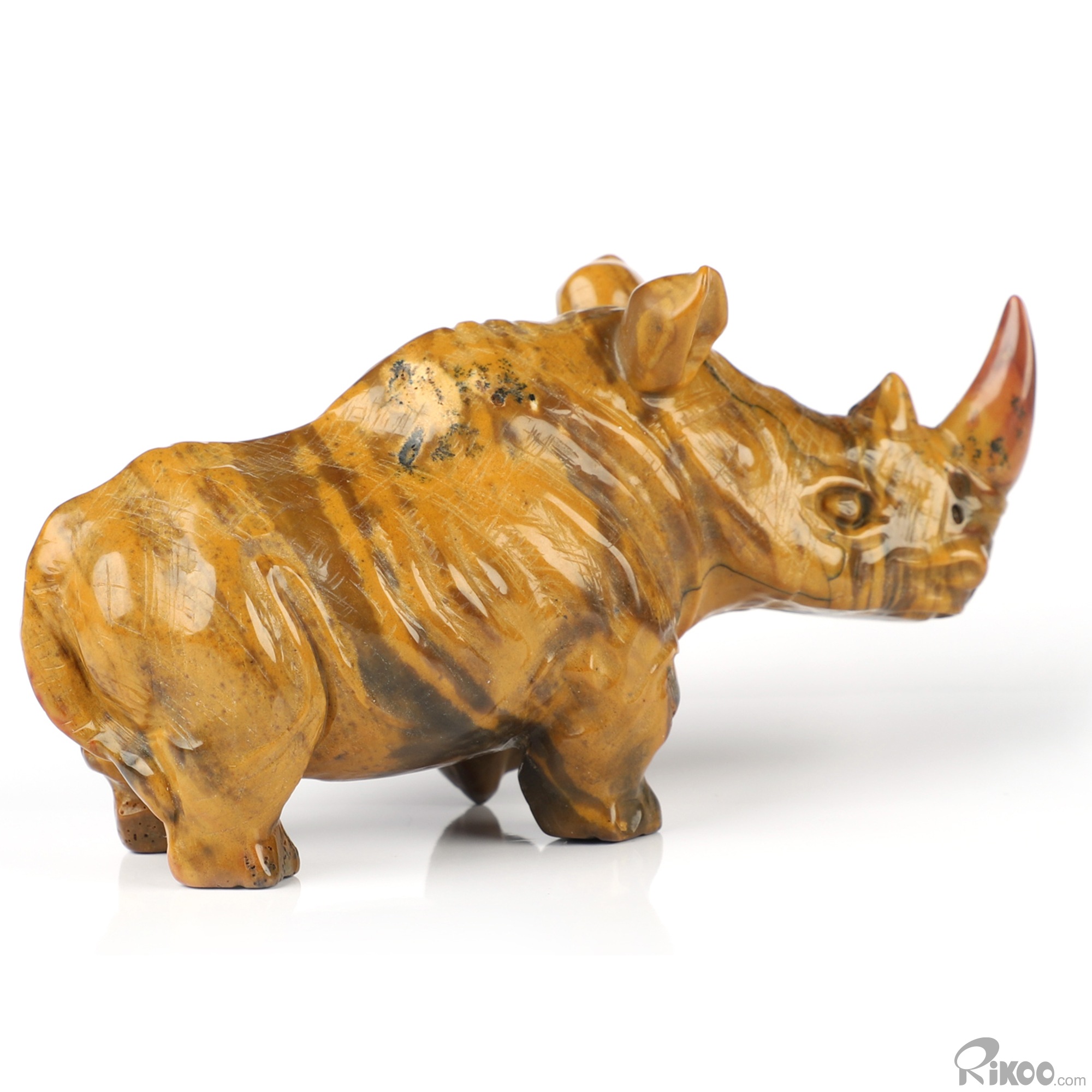 3.8" Indian Agate Hand Carved Crystal Rhinoceros Sculpture, Crystal Healing