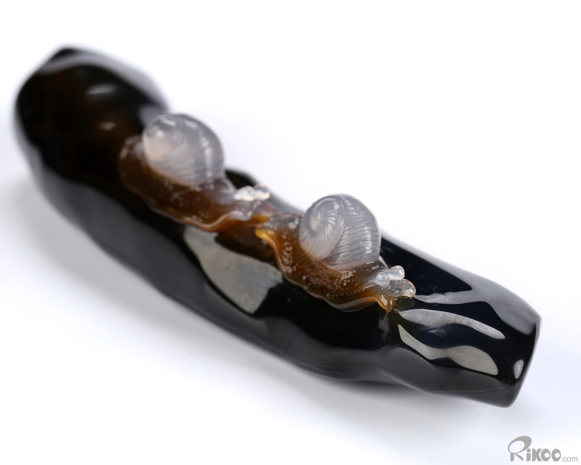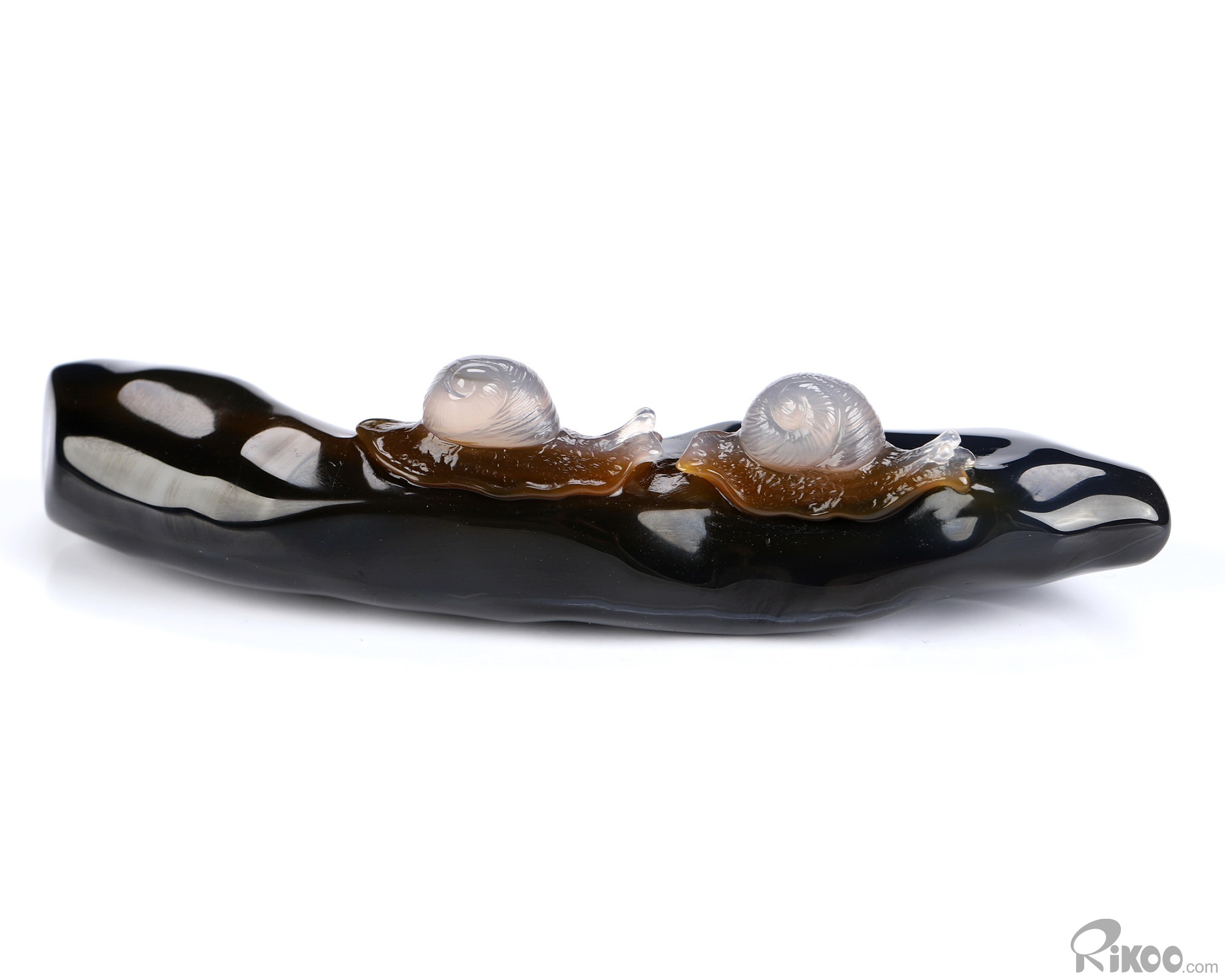 You are looking at an Indian Agate Snails sculpture. The sculpture is 3.8 inches long.