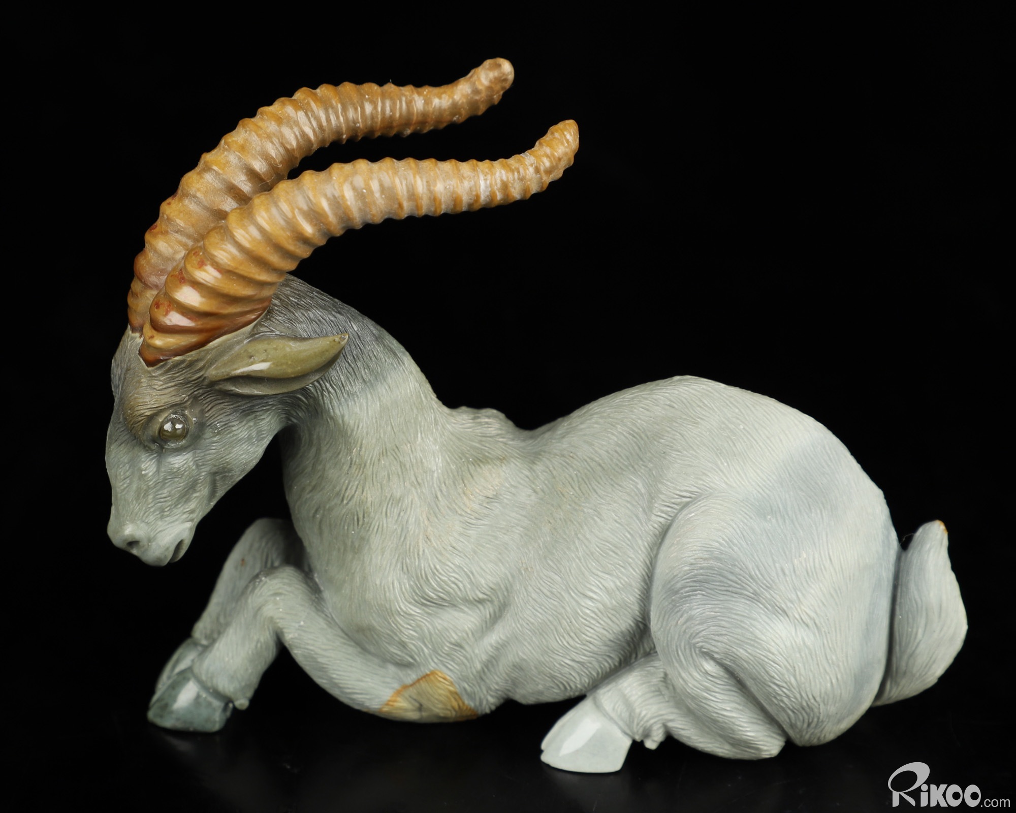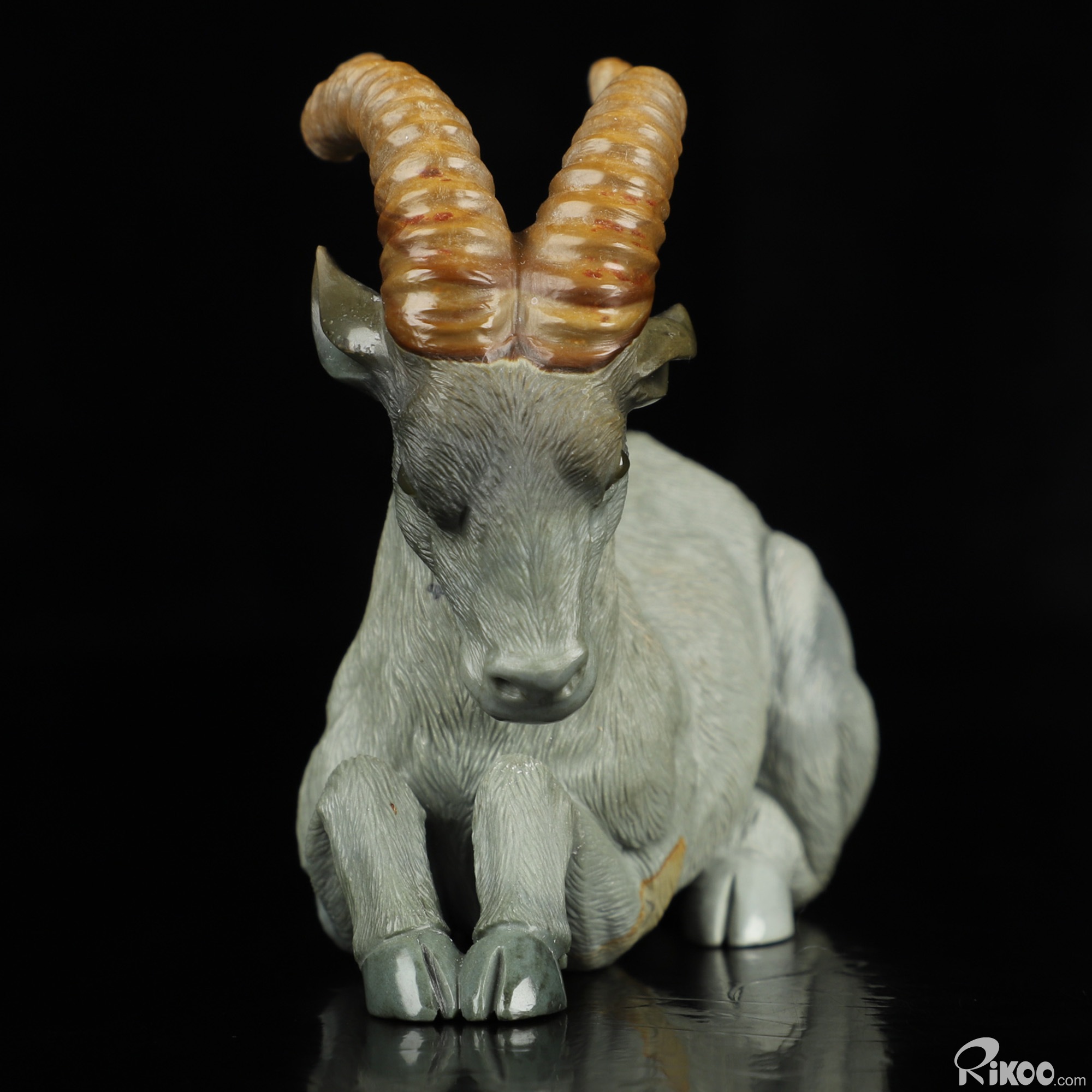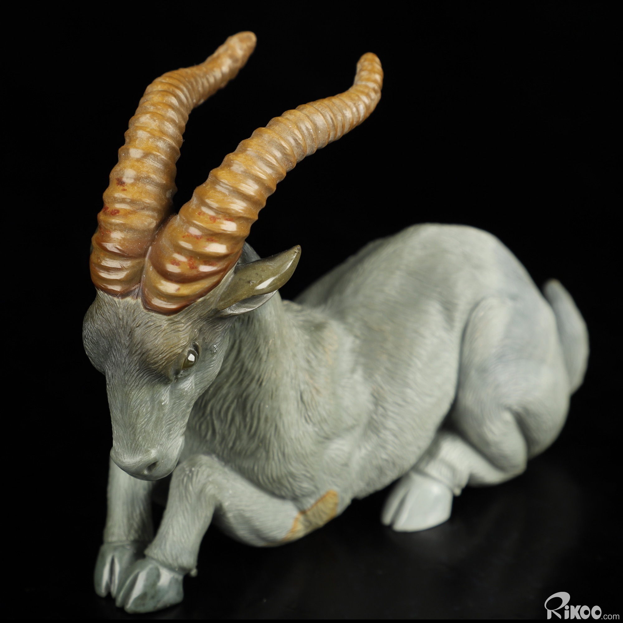 3.8" Polychrome Jasper Hand Carved Crystal Goat Sculpture, Crystal Healing