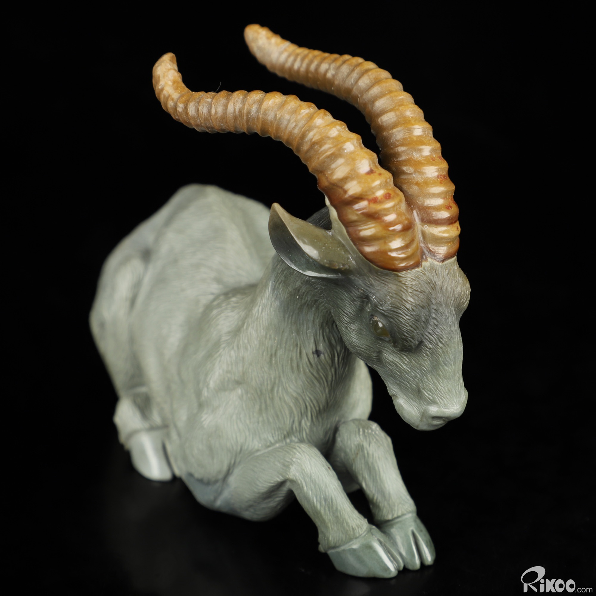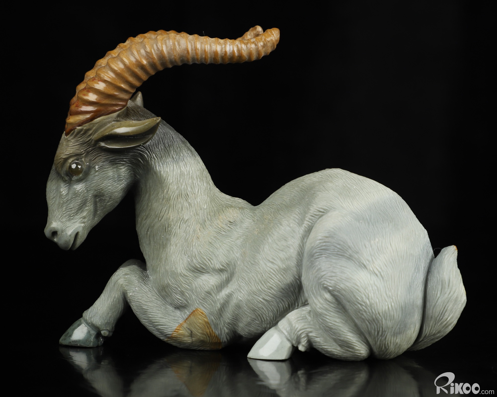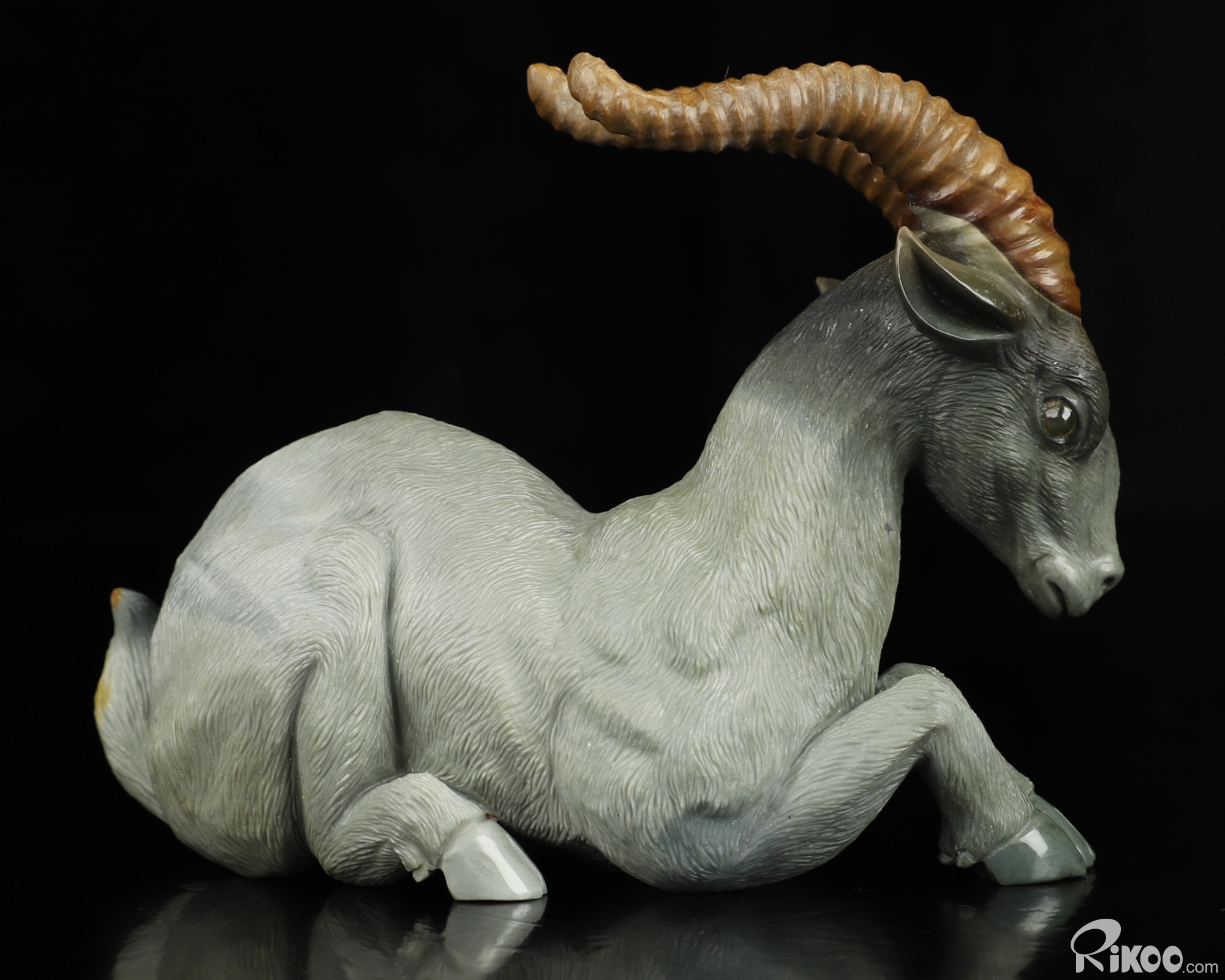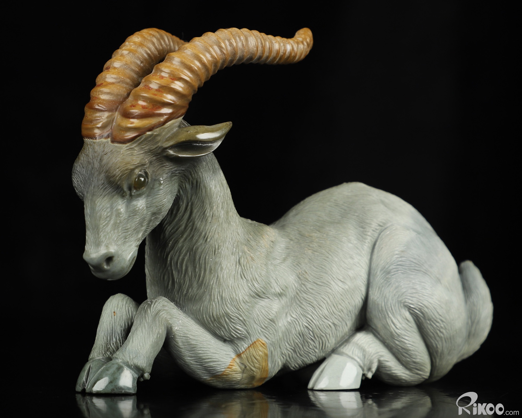 3.8" Polychrome Jasper Hand Carved Crystal Goat Sculpture, Crystal Healing