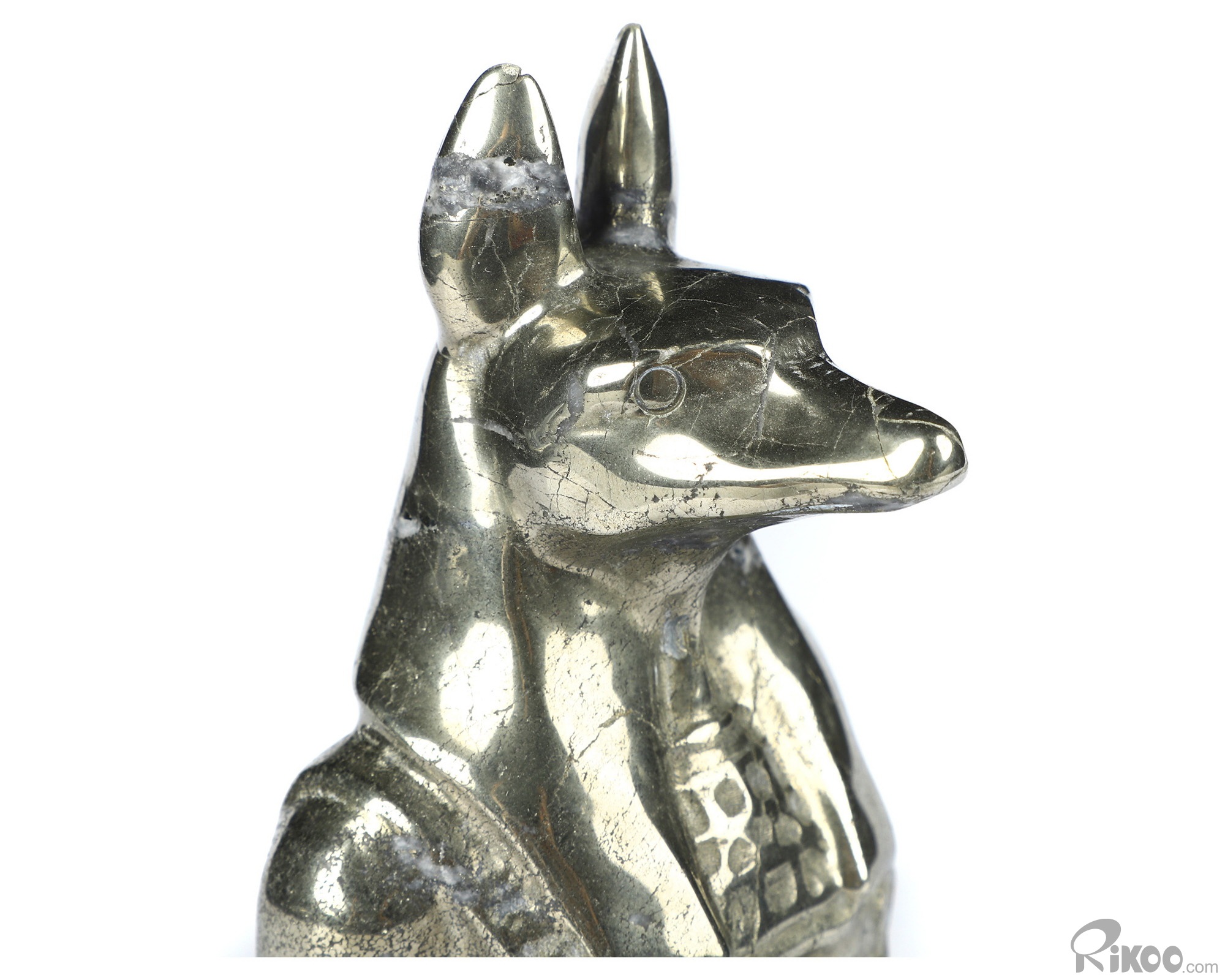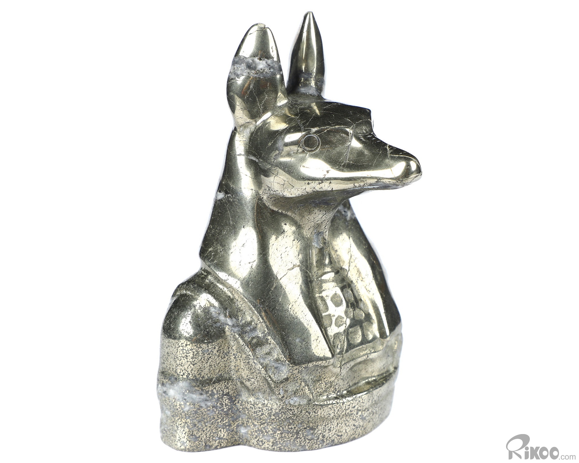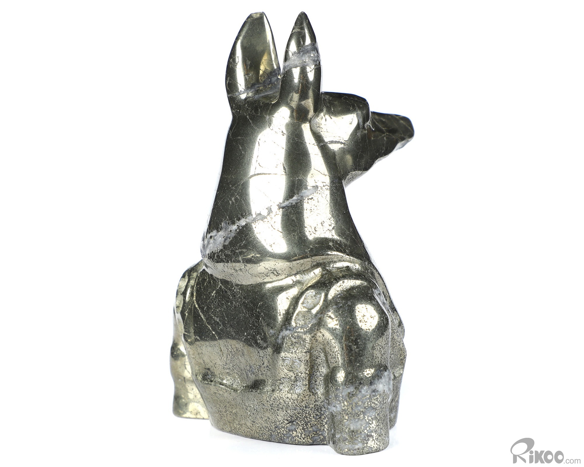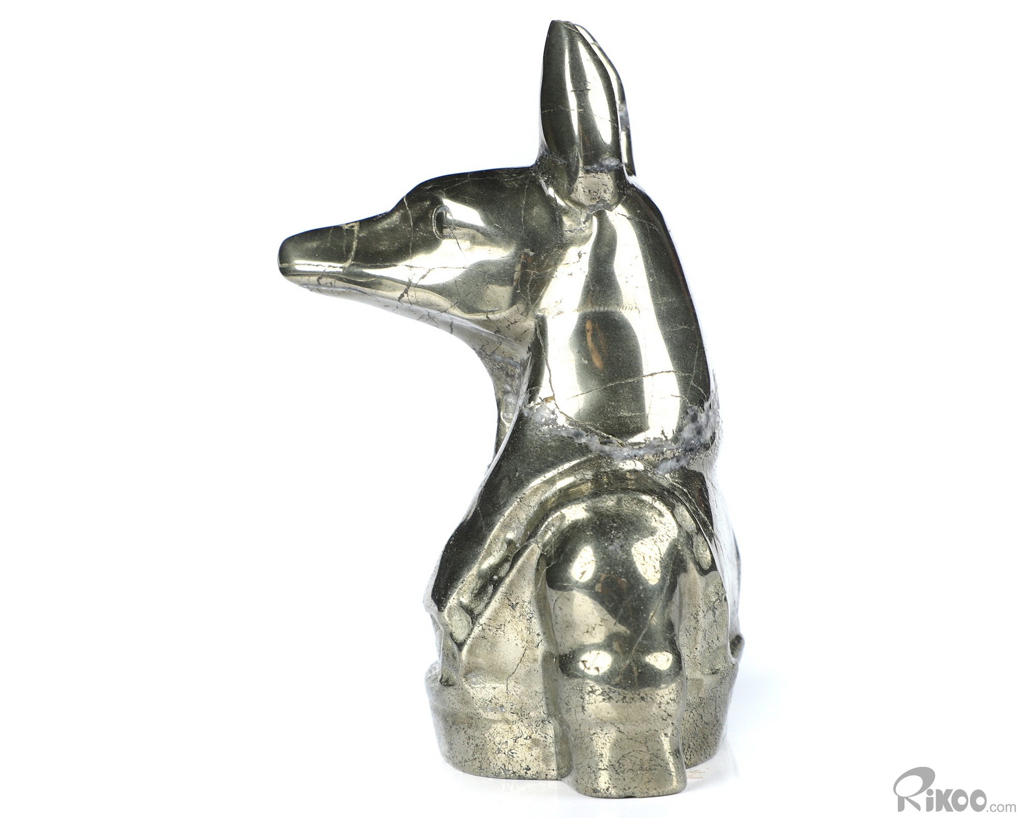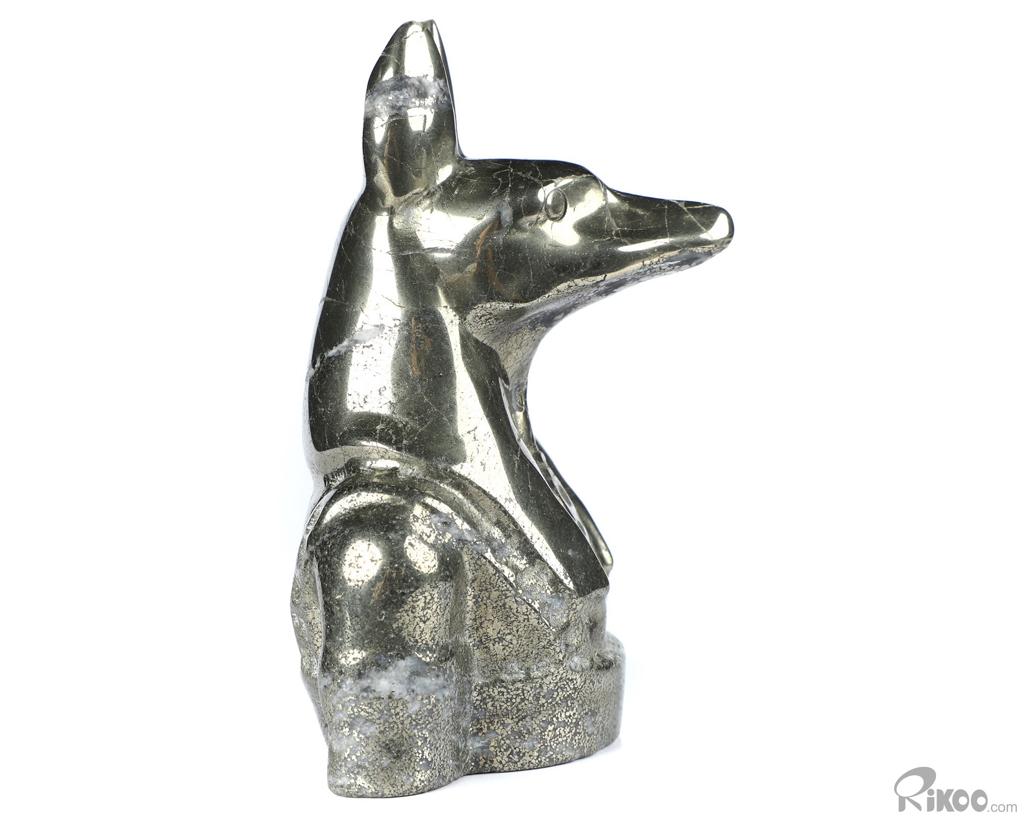 3.8" Pyrite Hand Carved Crystal Dog Sculpture, Crystal Healing