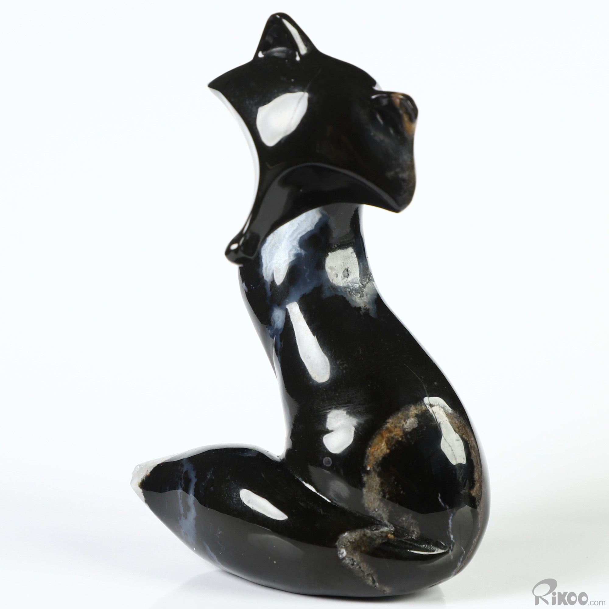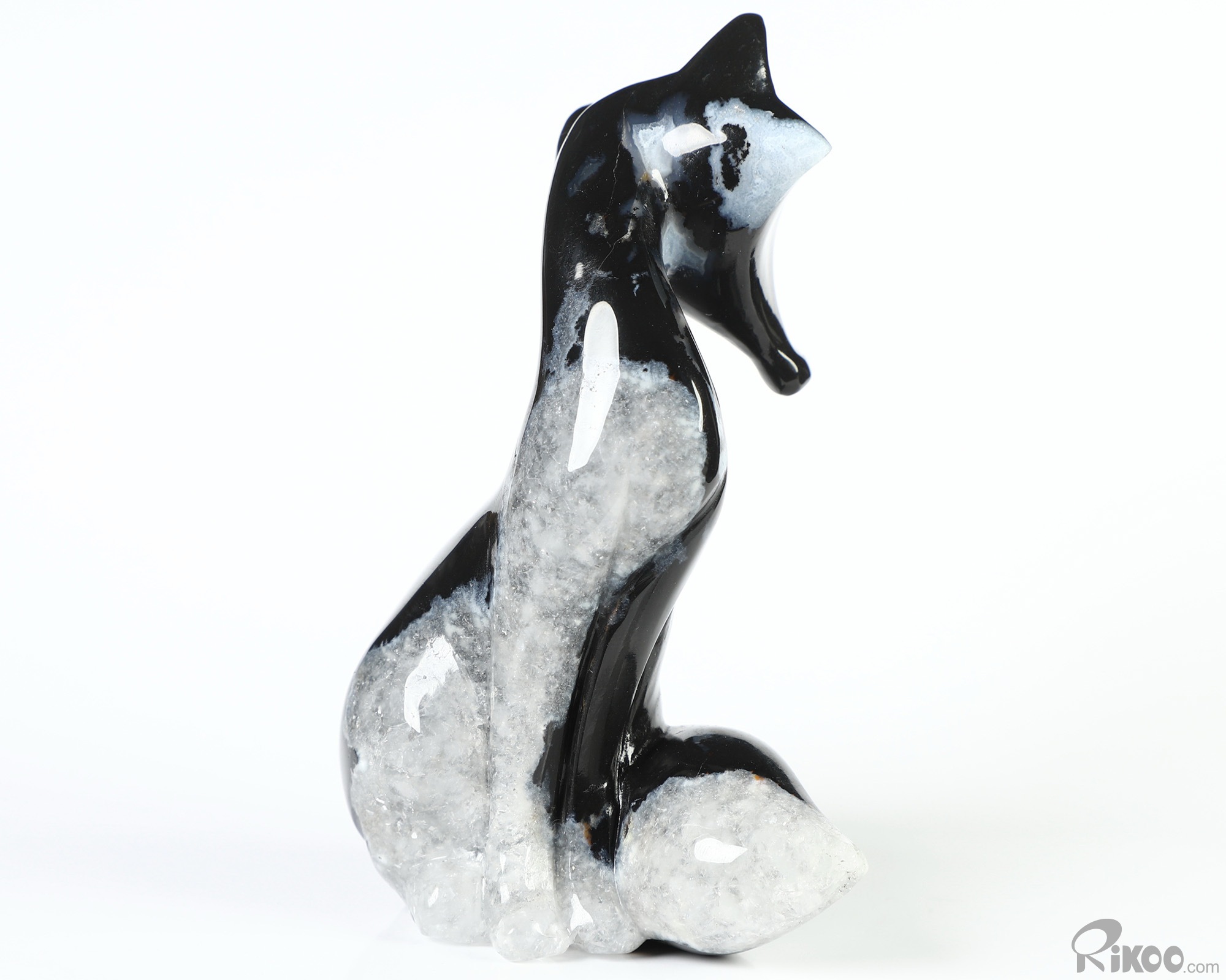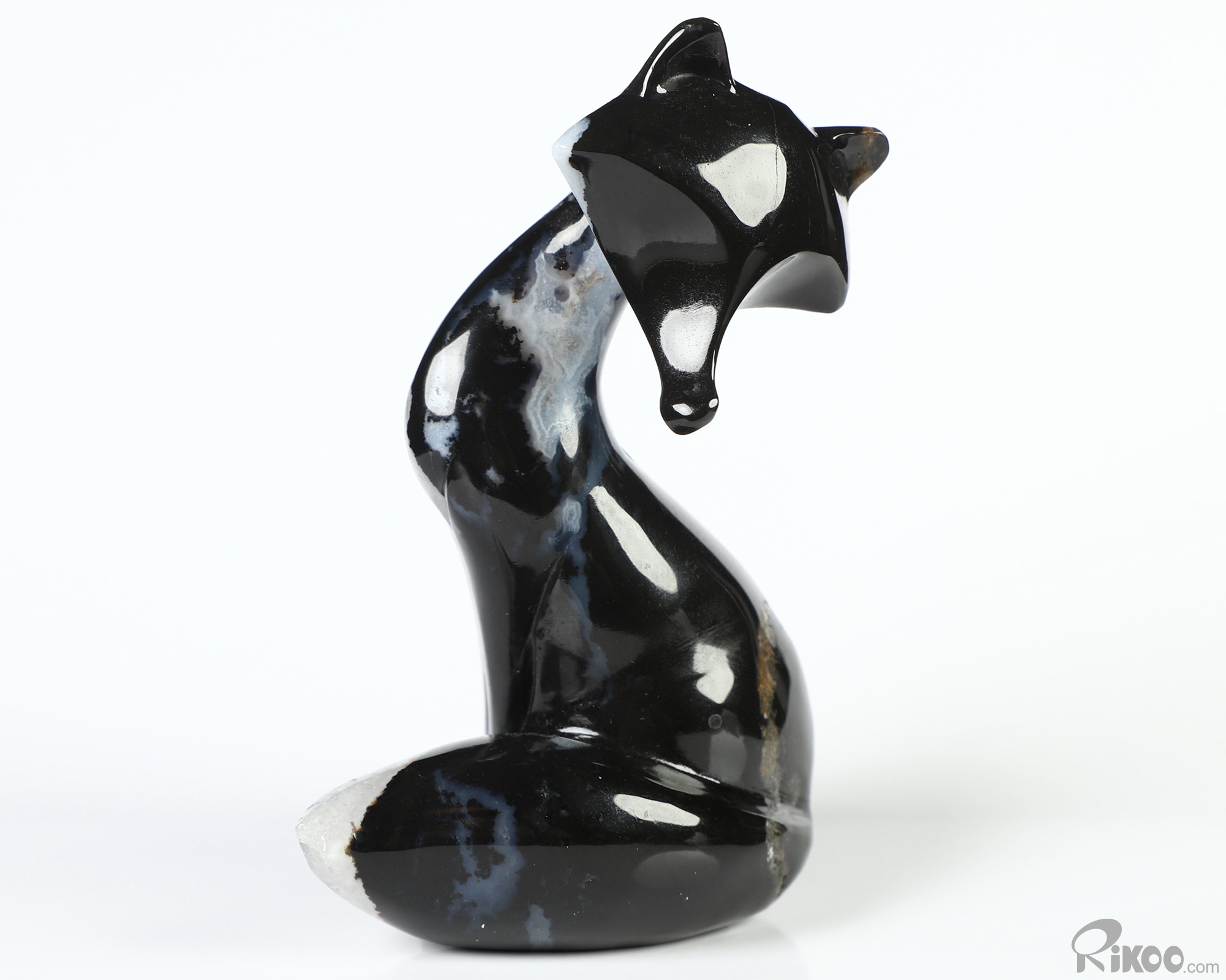 3.9" Black Zebra Agate Hand Carved Crystal Fox Sculpture, Crystal Healing