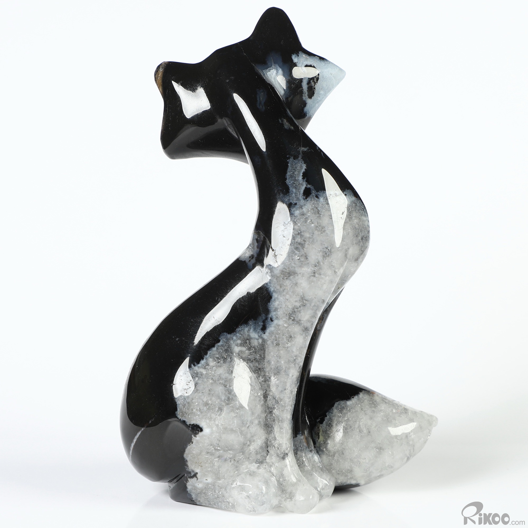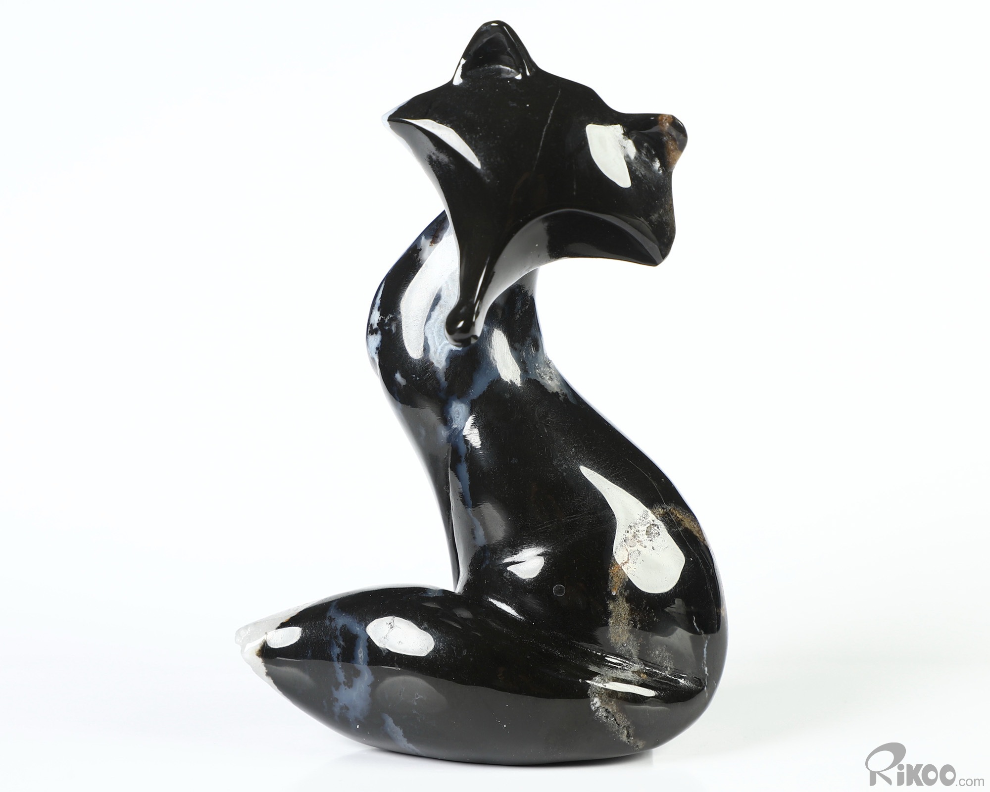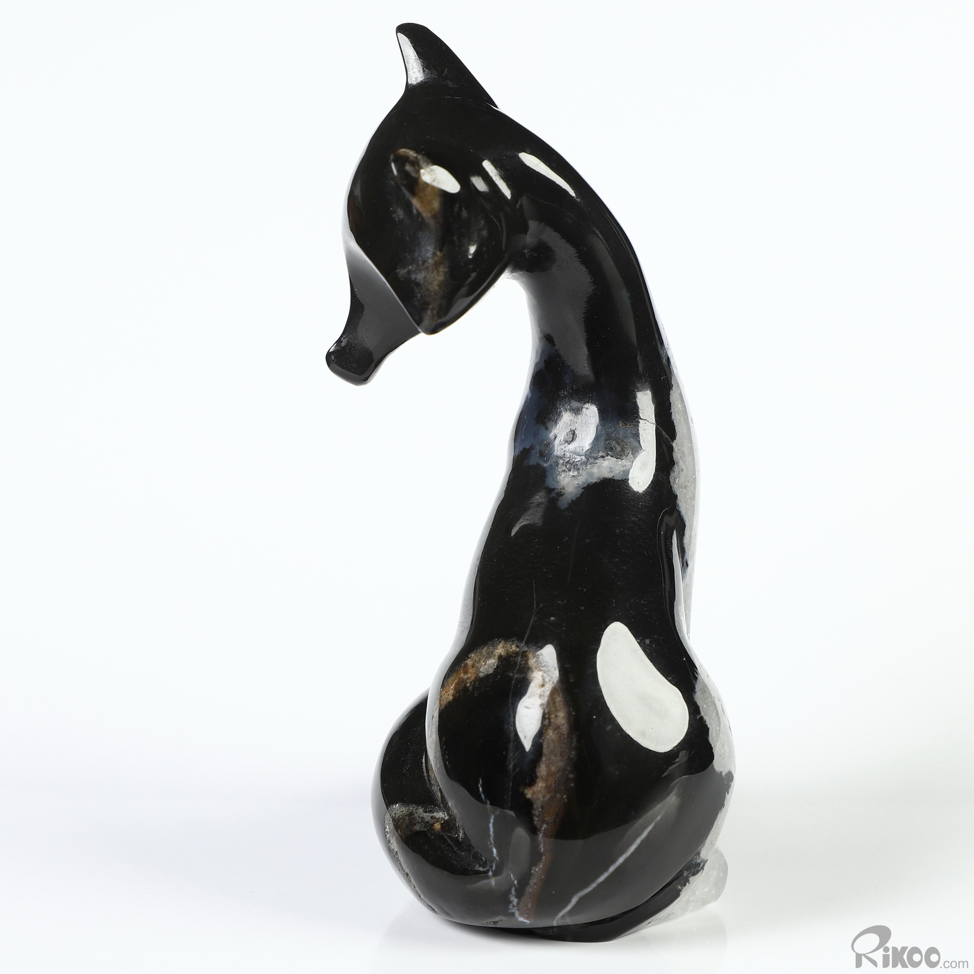 3.9" Black Zebra Agate Hand Carved Crystal Fox Sculpture, Crystal Healing