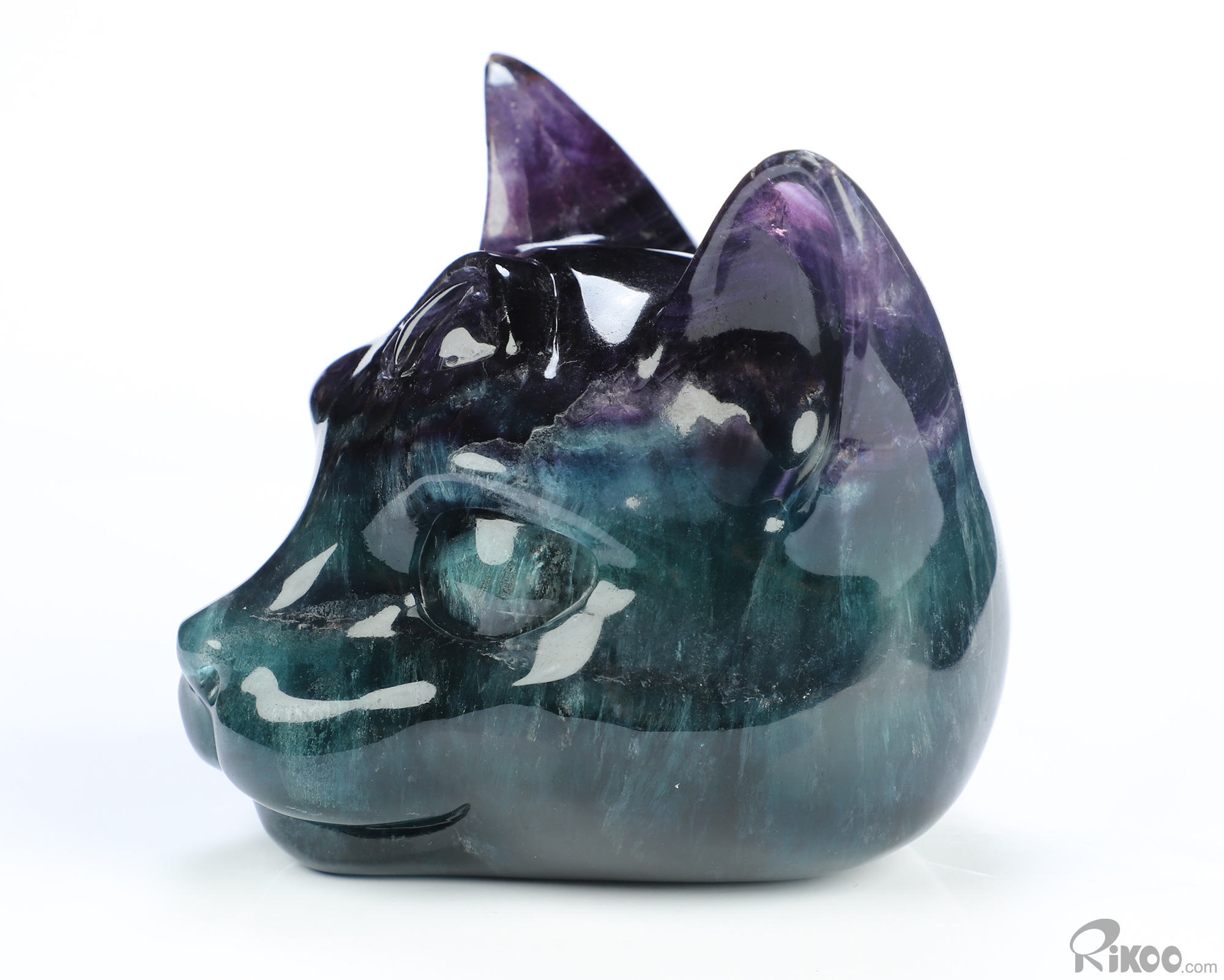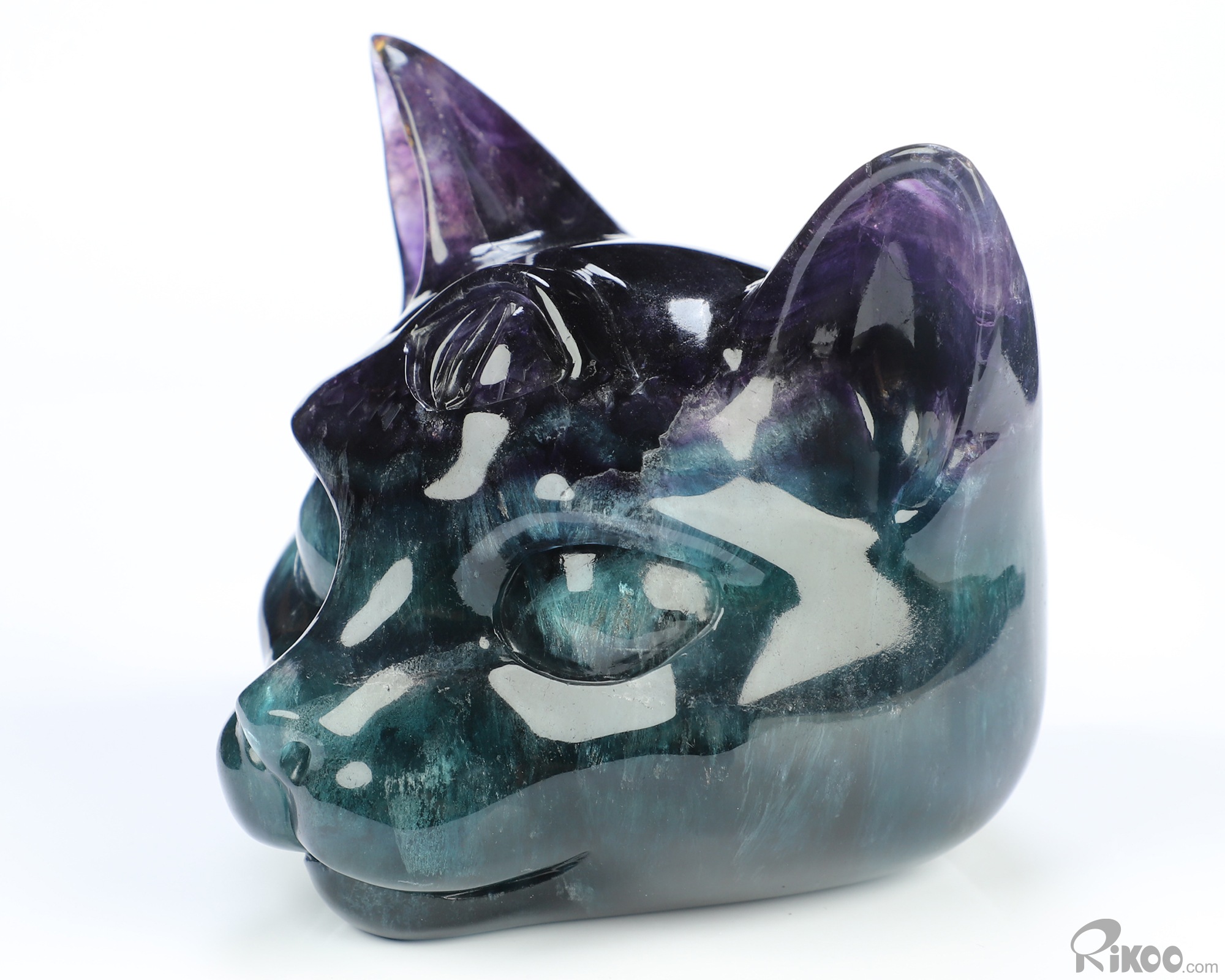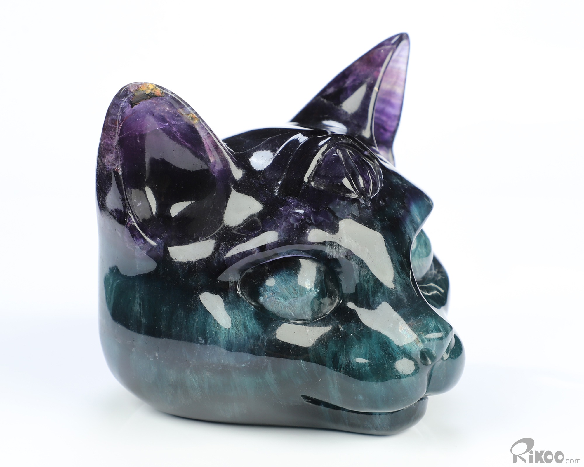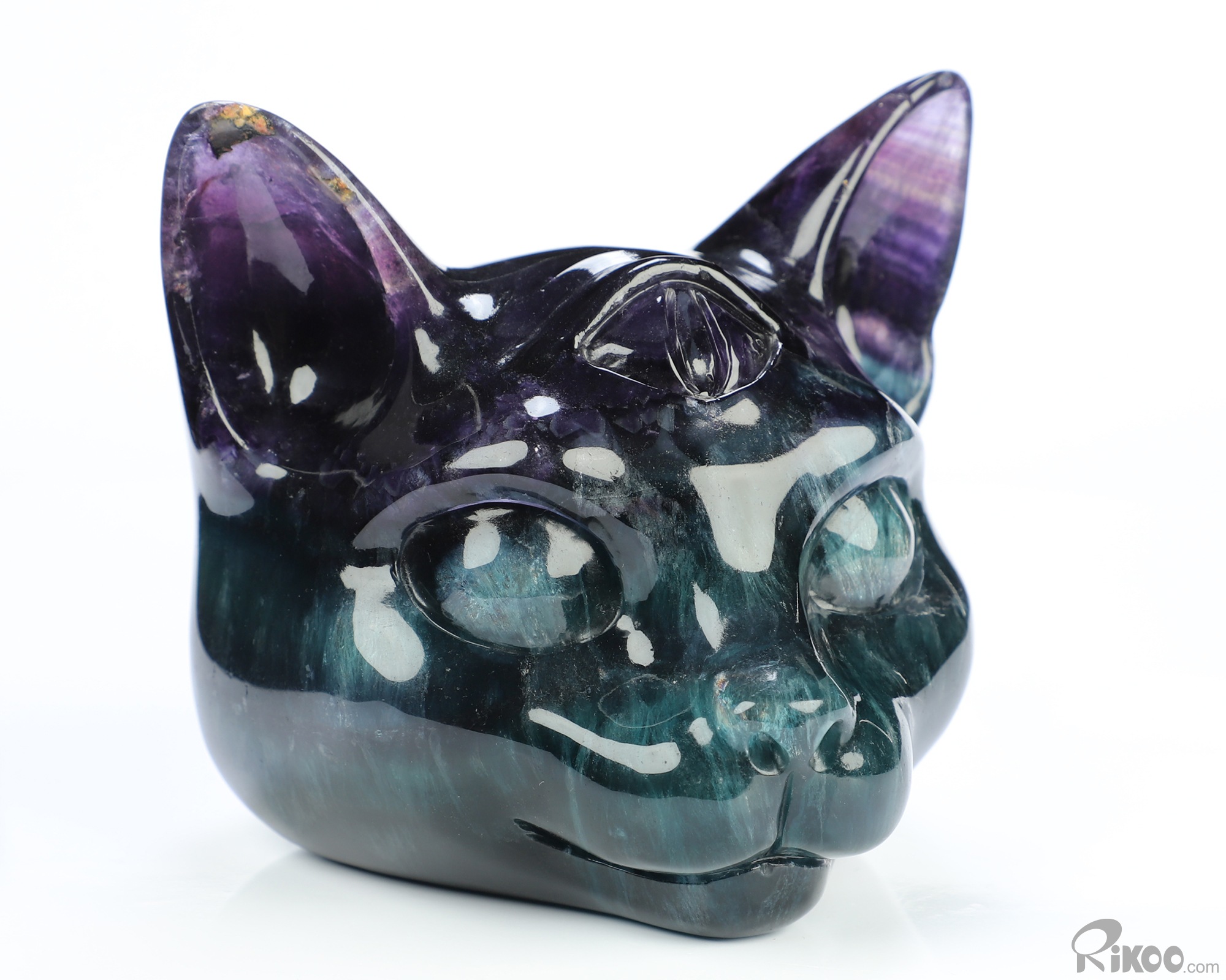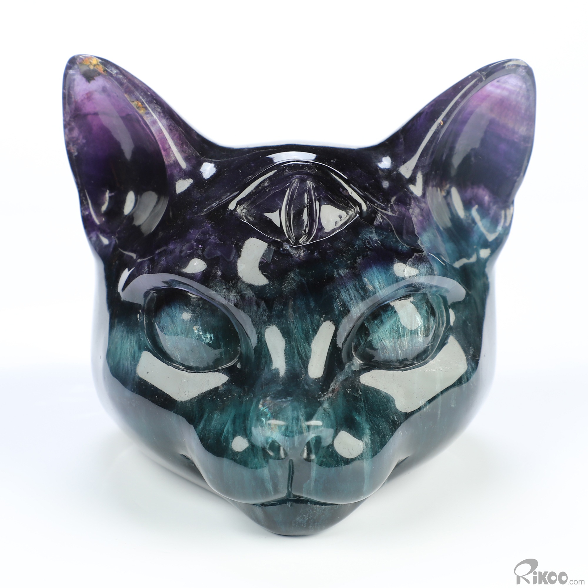 3.9" Fluorite Hand Carved Crystal Egyptian Cat Head Sculpture, Crystal Healing