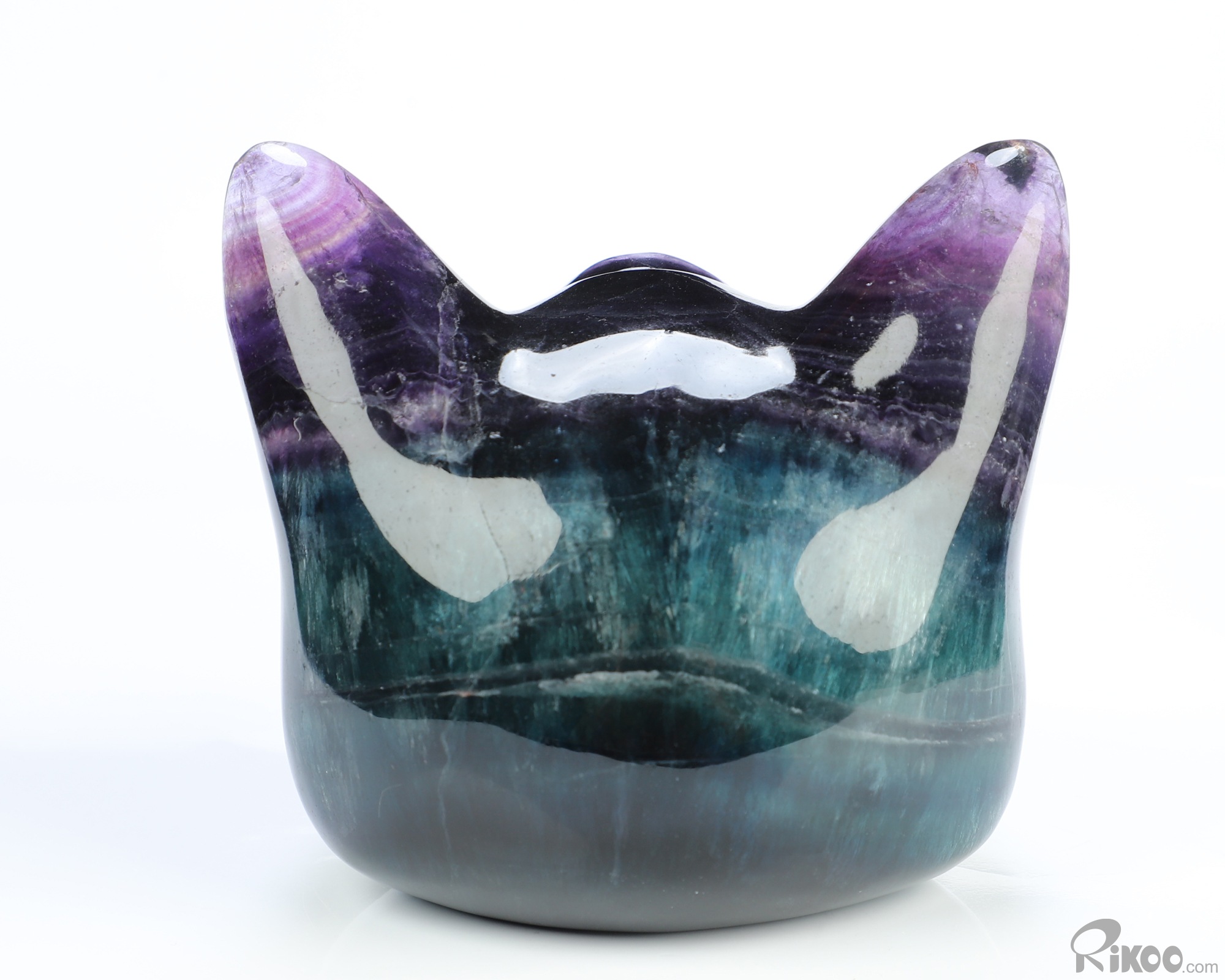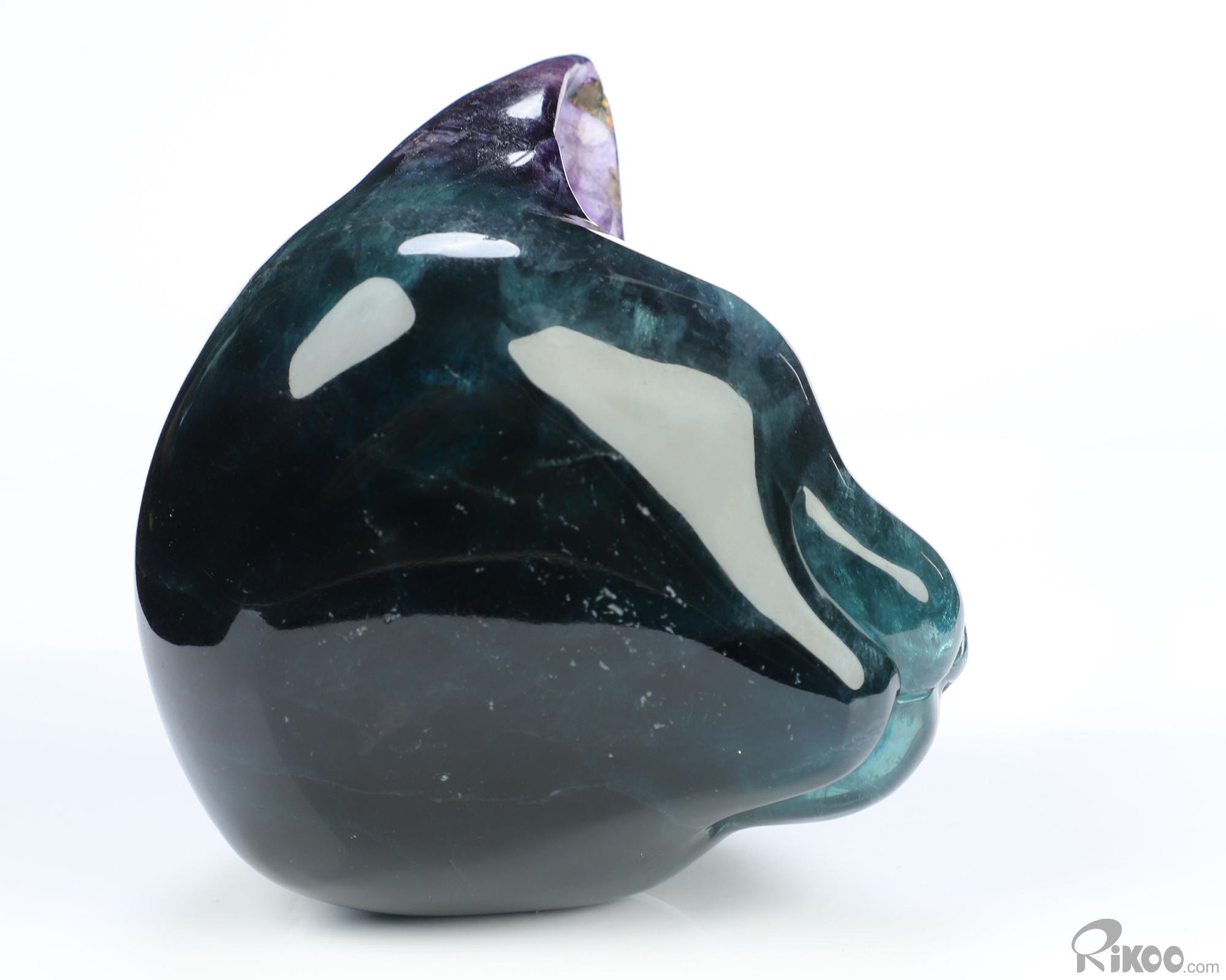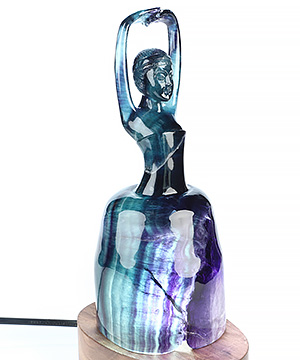 You are looking at a Fluorite sculpture. The sculpture is 3.9 inches long.