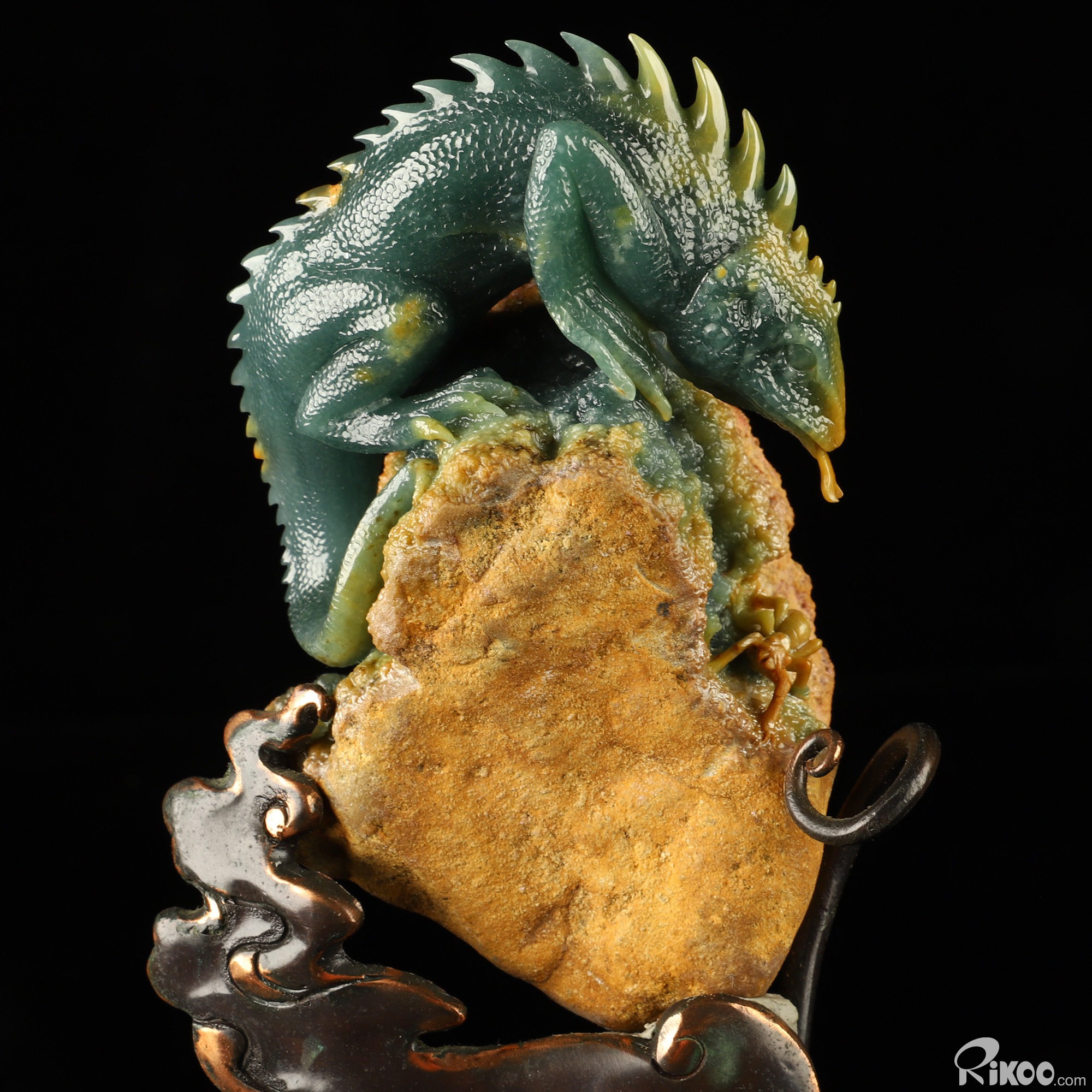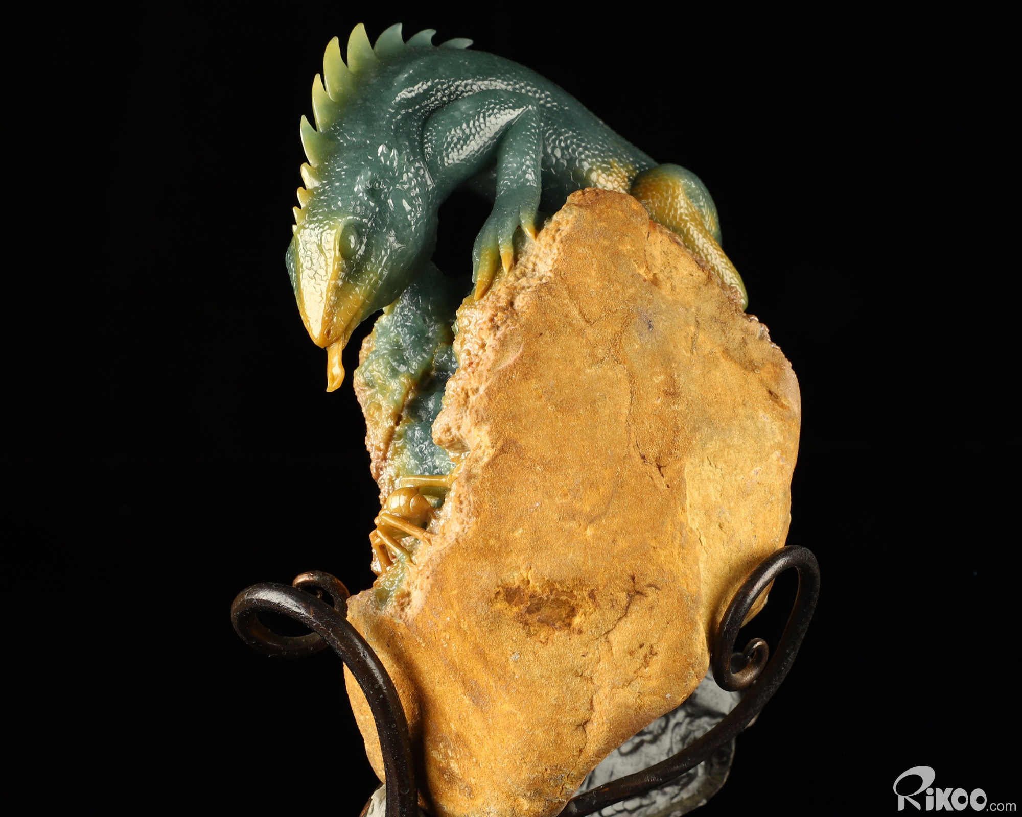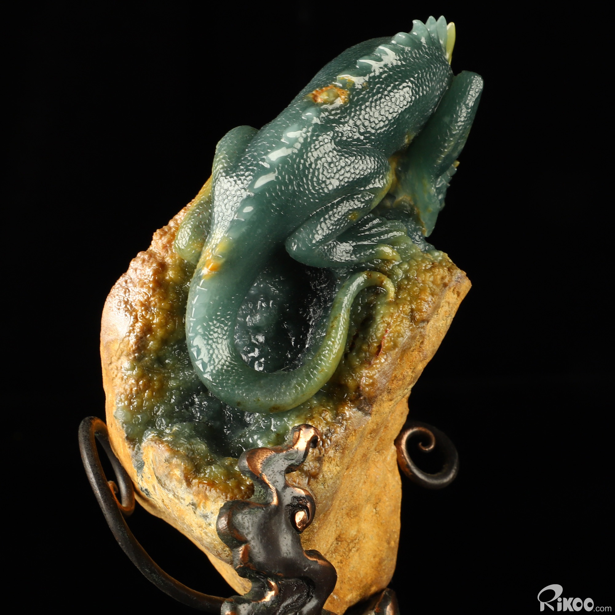 3.9" Guatemala Jadeite Hand Carved Crystal Lizard Sculpture, Crystal Healing