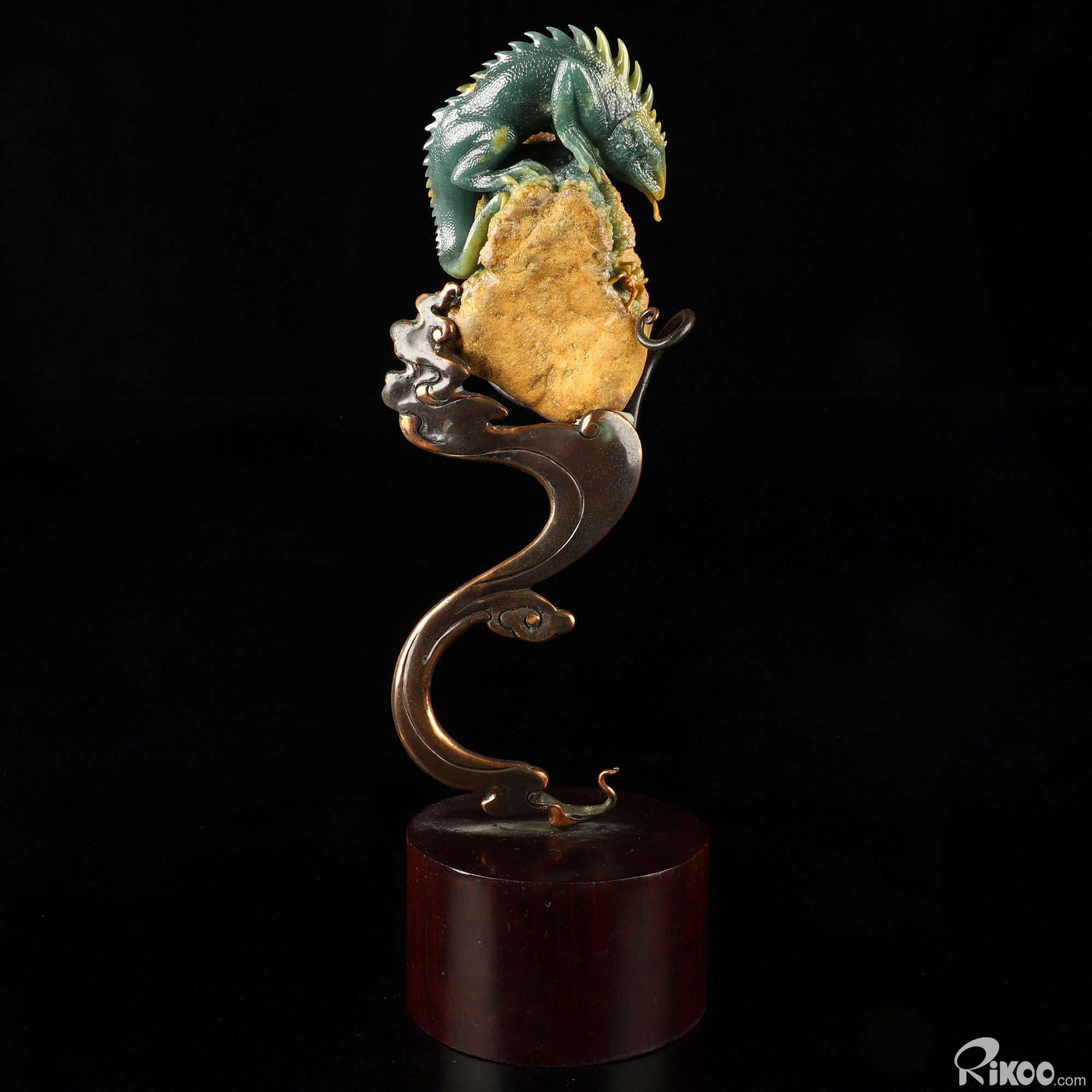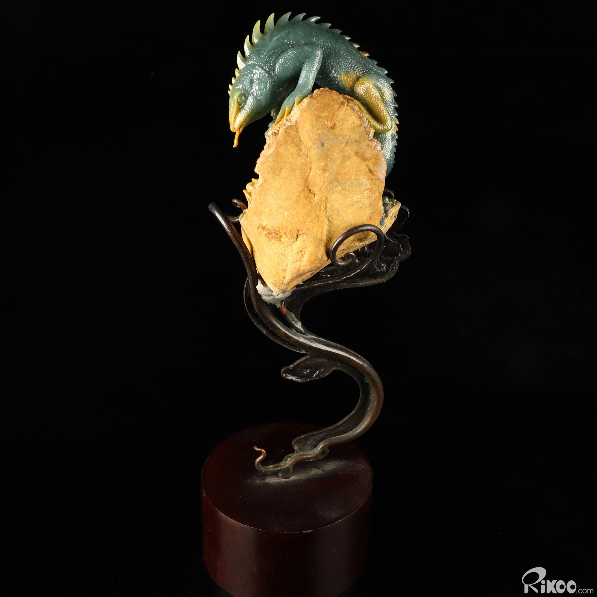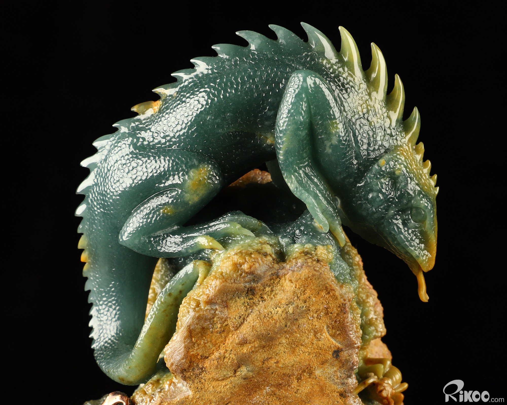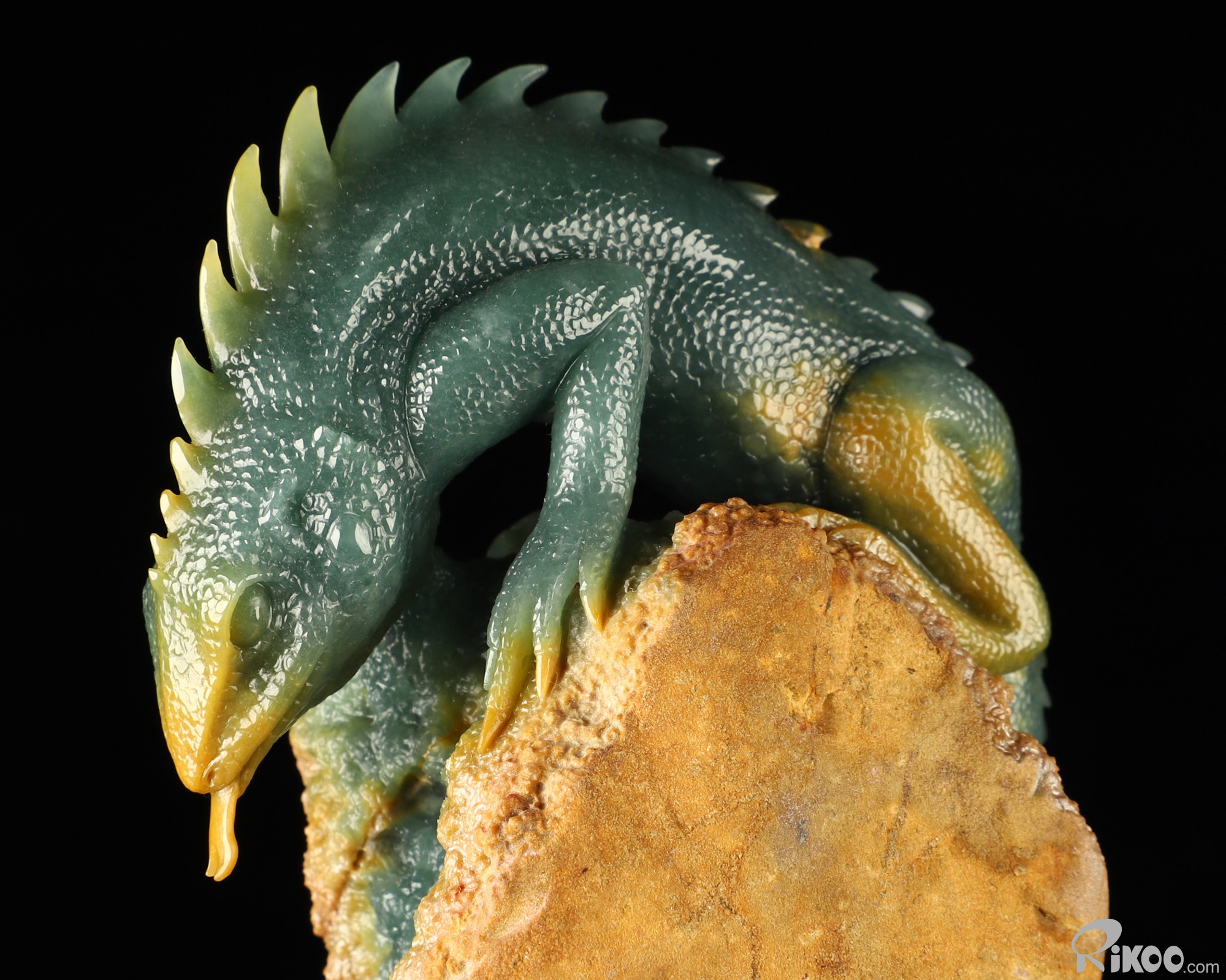 3.9" Guatemala Jadeite Hand Carved Crystal Lizard Sculpture, Crystal Healing