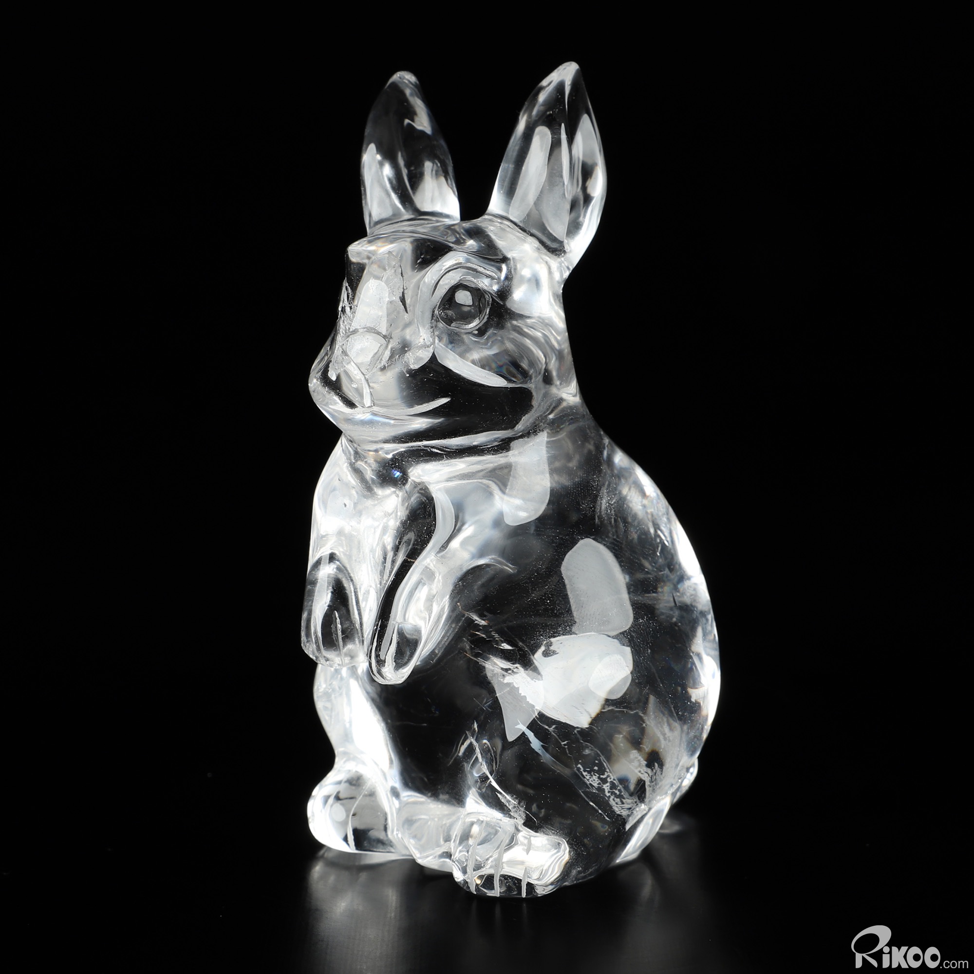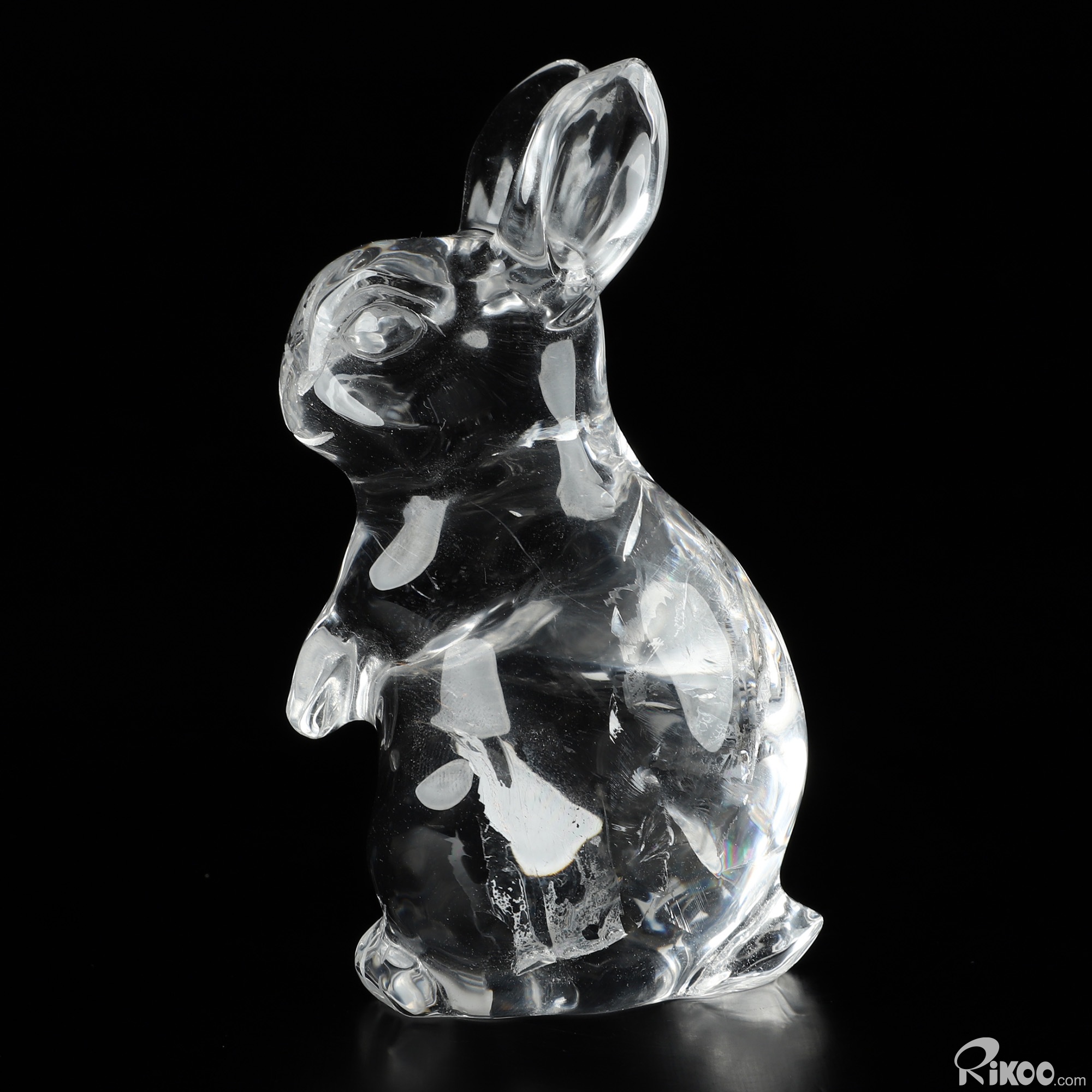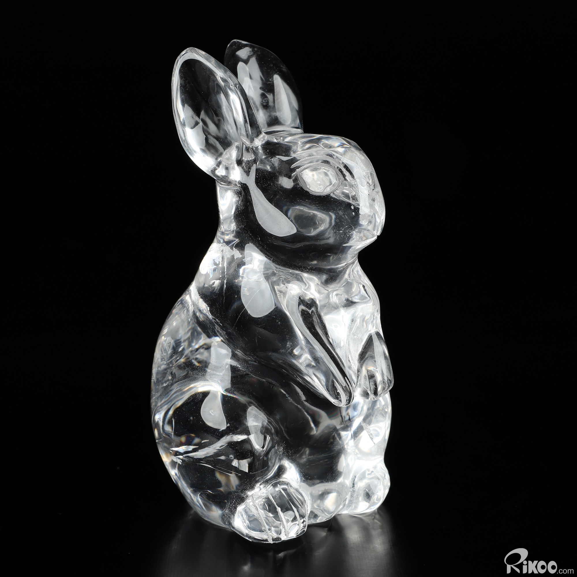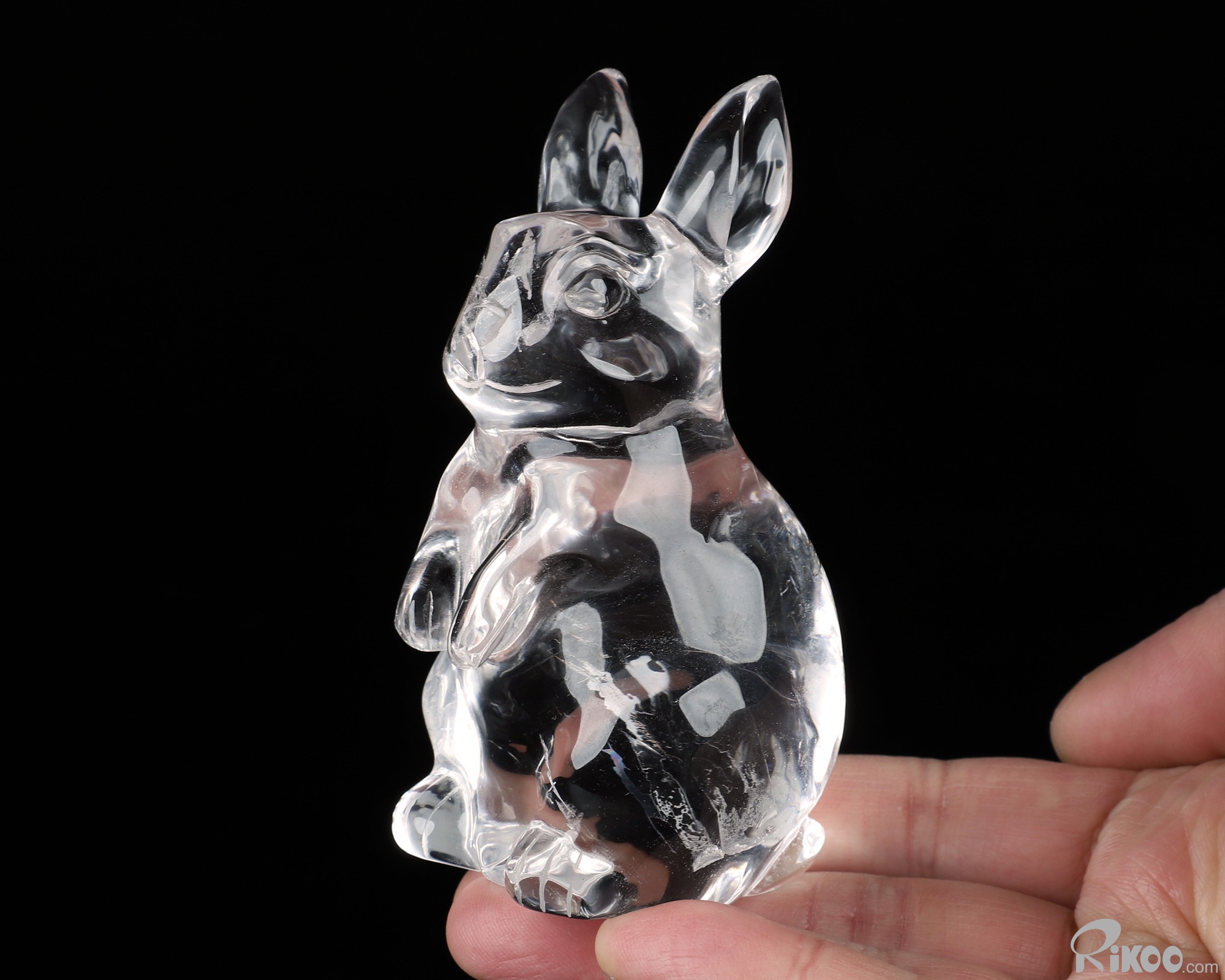 3.9" K9 Crystal Hand Carved Crystal Rabbit Sculpture, Crystal Healing