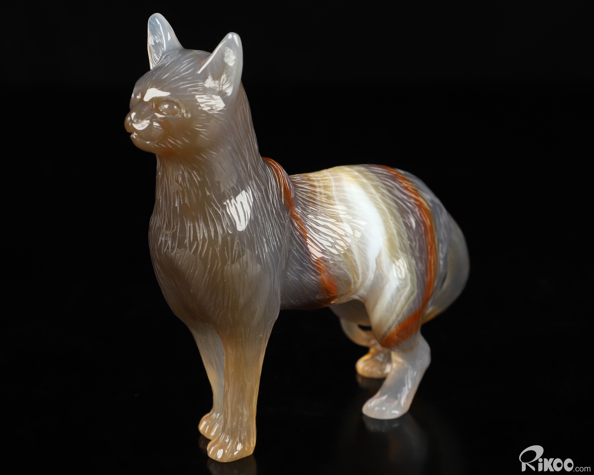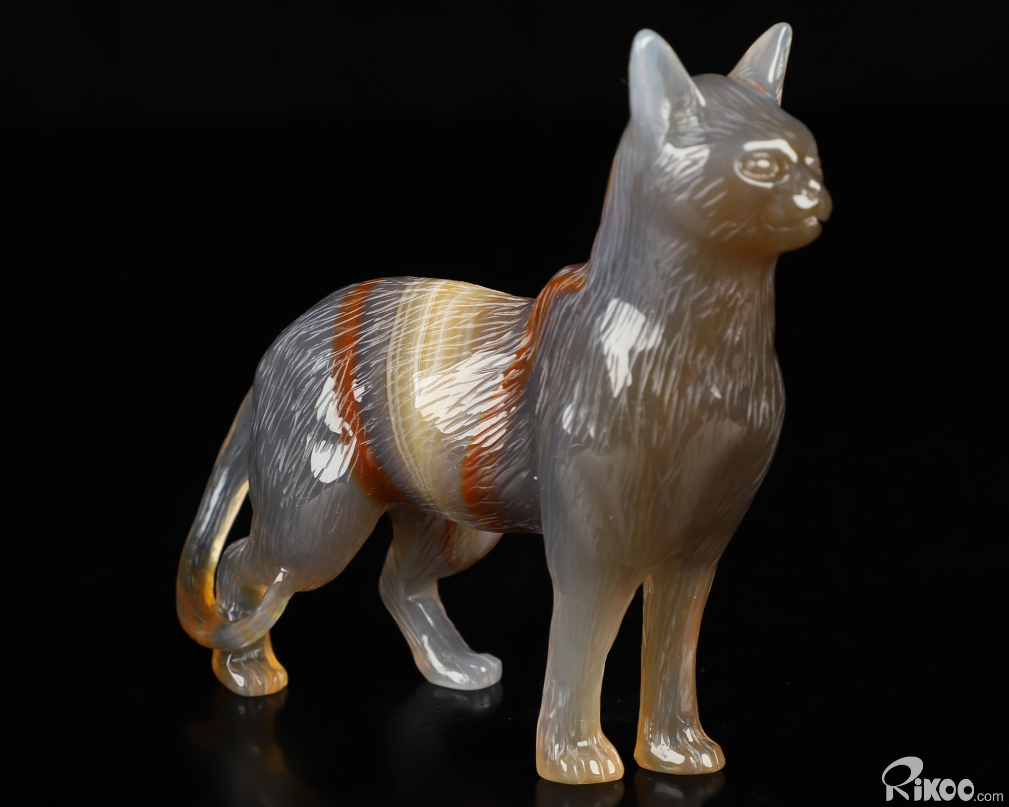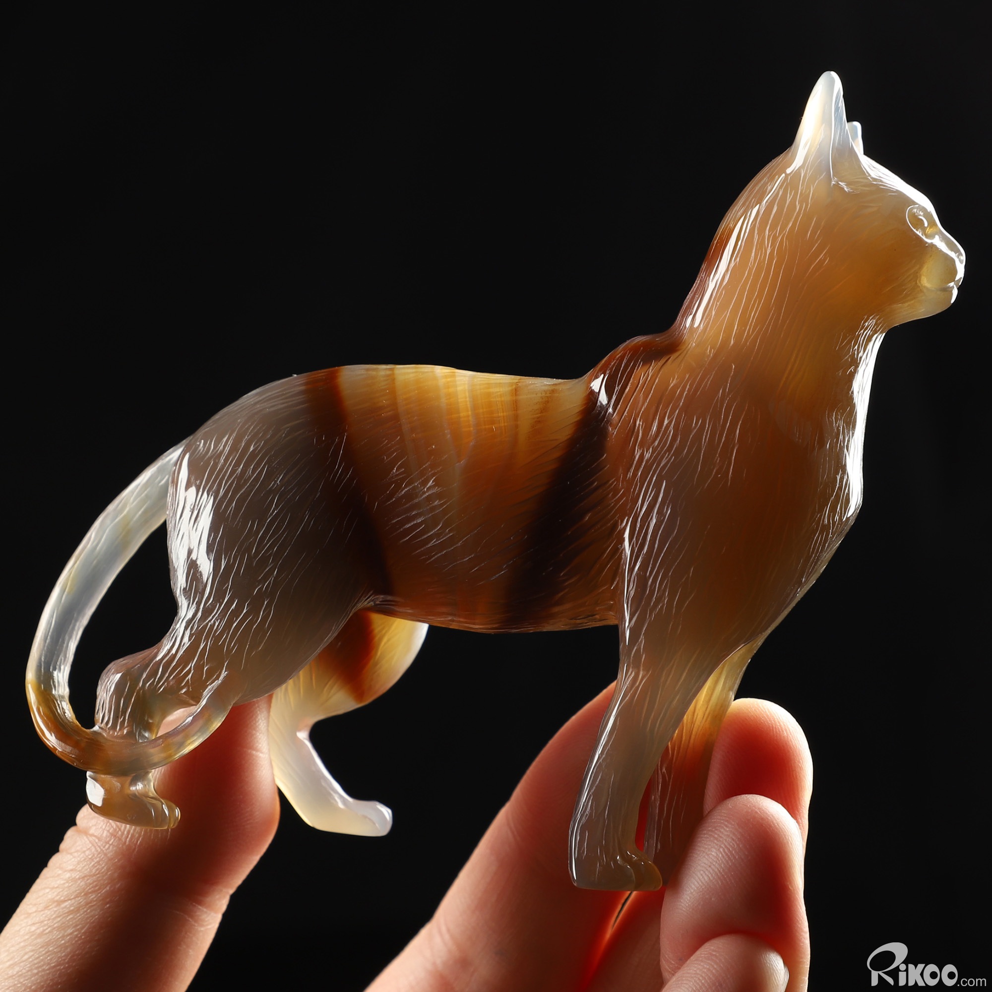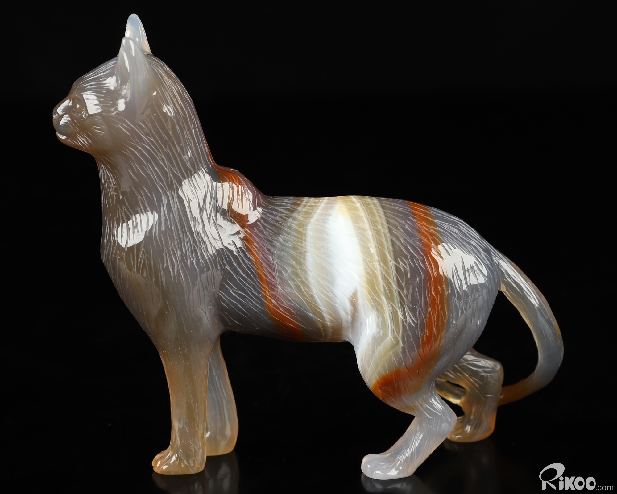 3.9" Premium Brazilian Agate Hand Carved Crystal Cat Sculpture, Crystal Healing