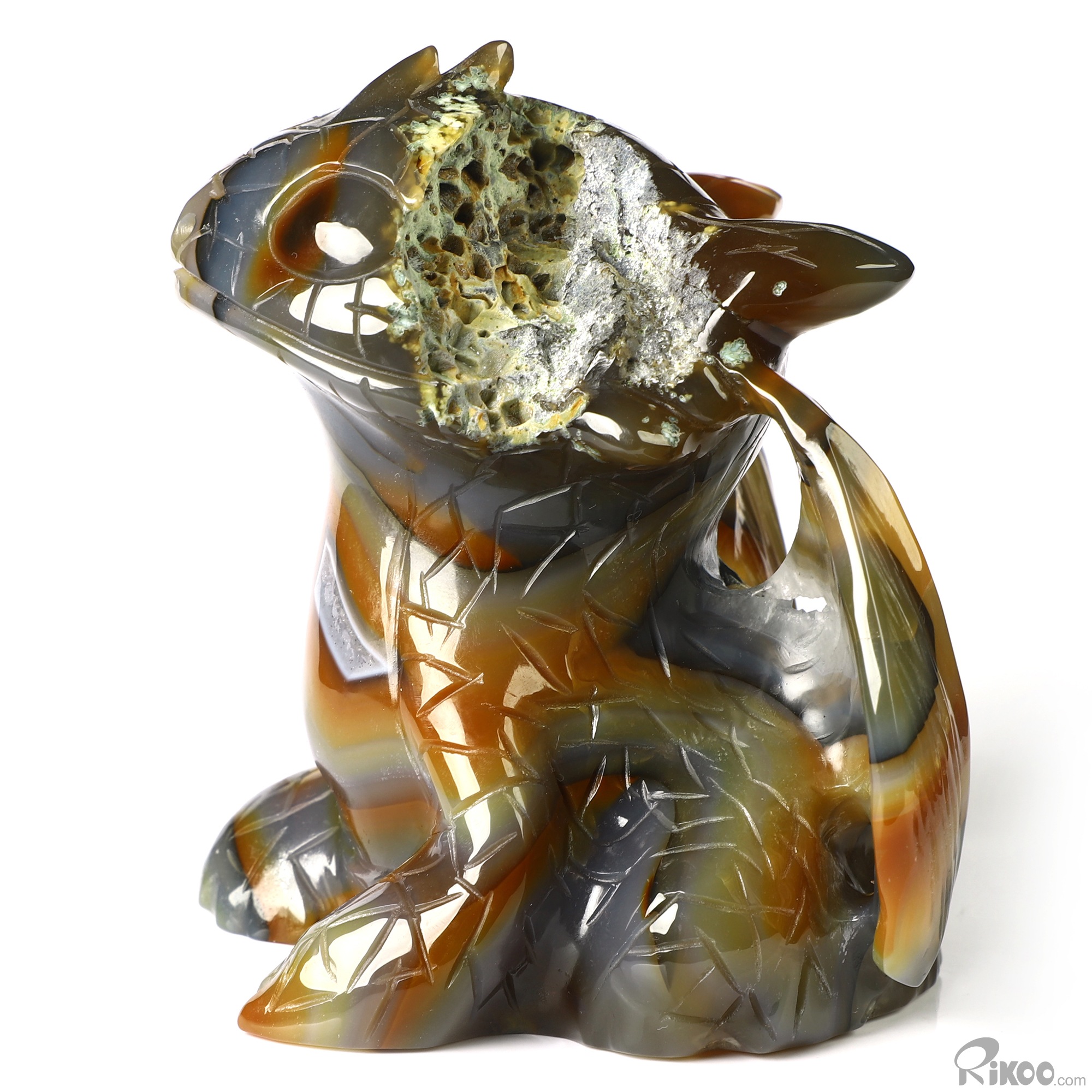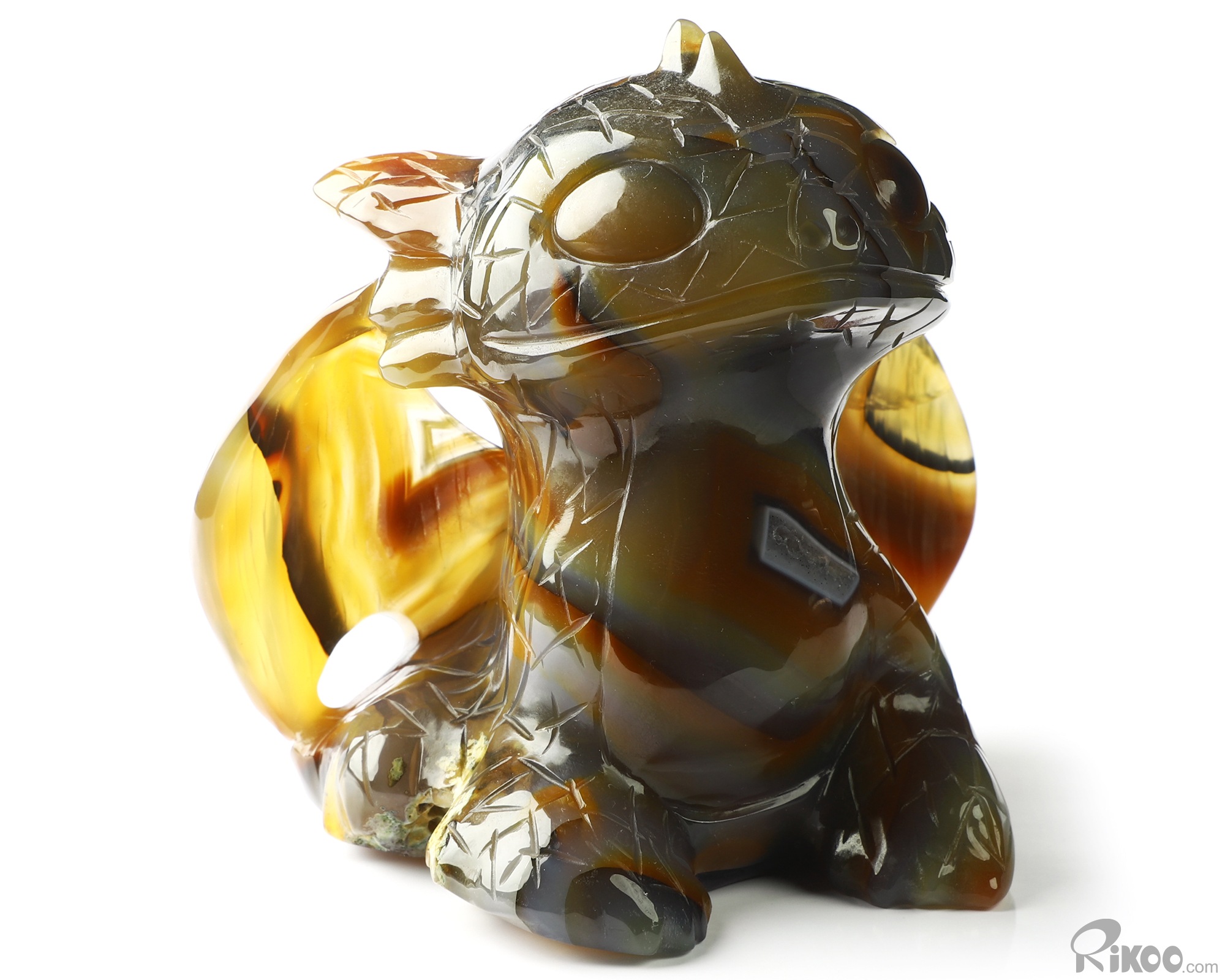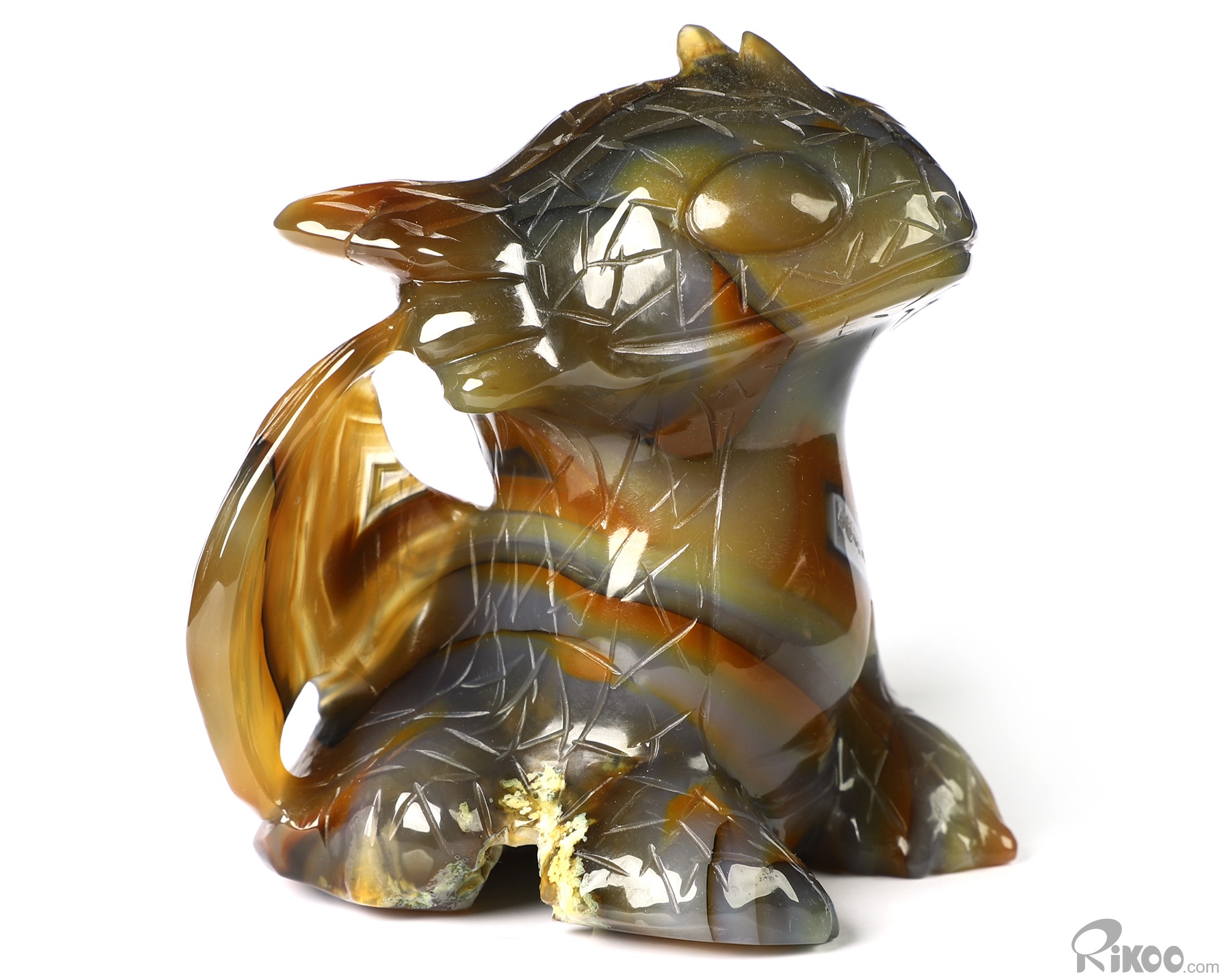 3.9" Premium Brazilian Agate Hand Carved Crystal Dragon Sculpture, Crystal Healing