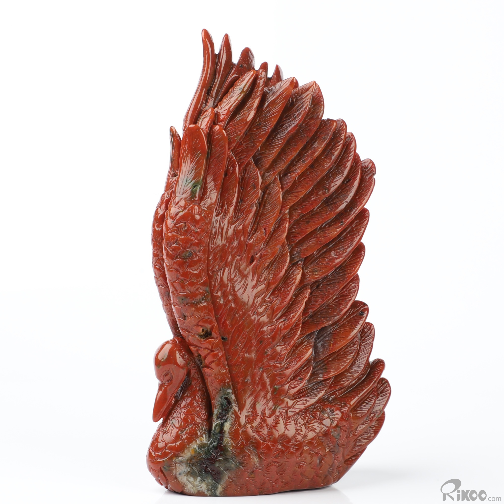 4.0" Bloodstone Hand Carved Crystal Swan Sculpture, Crystal Healing